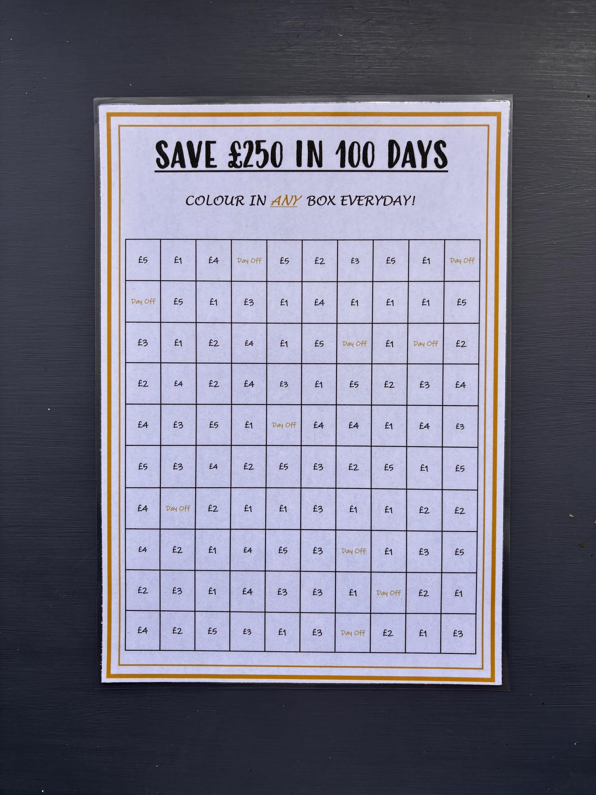 We have created a realistic and achievable saving chart for you to save £250 in 100 days!