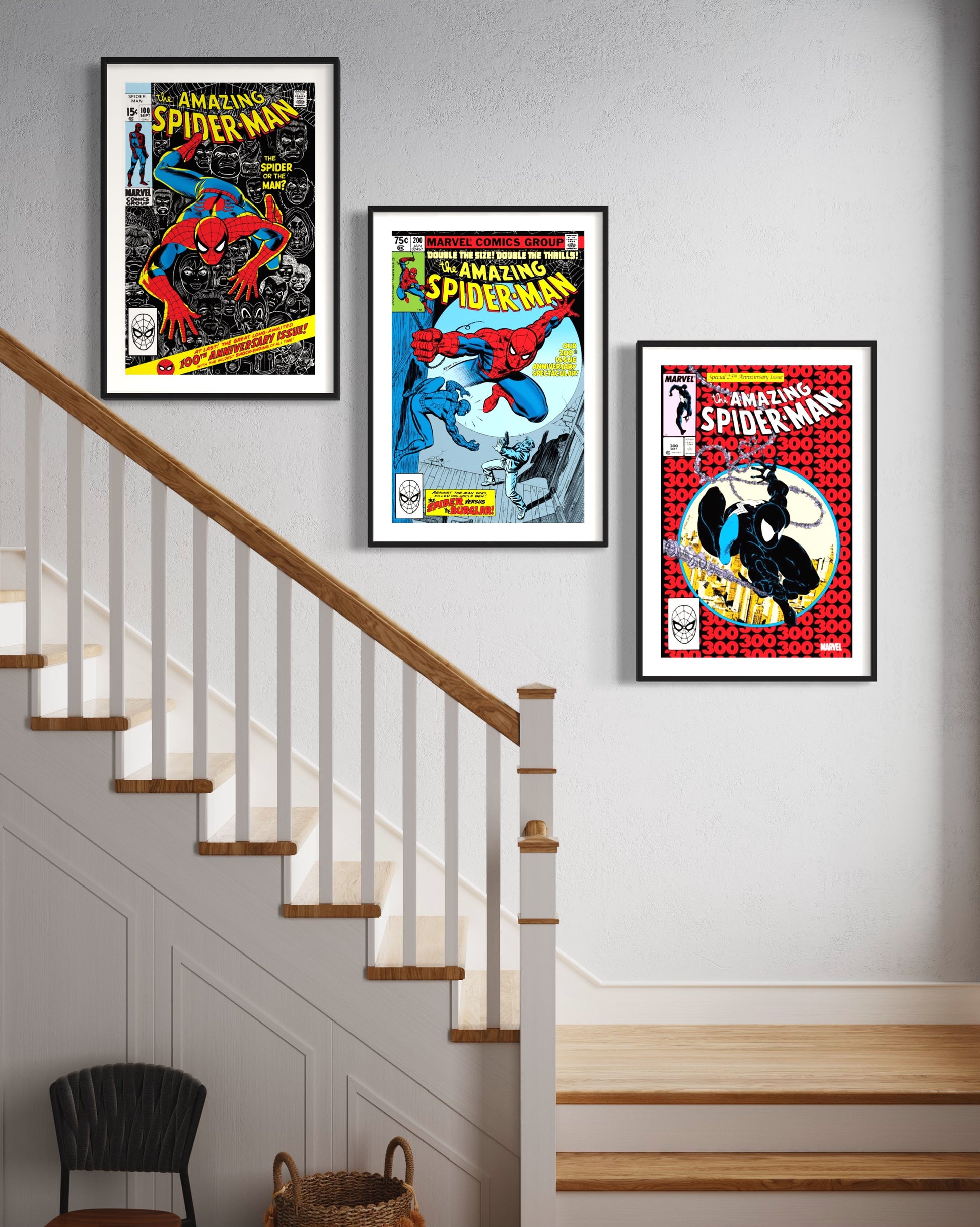 Unleash the wall-crawling, web-slinging, and crime-fighting excitement of Spider-Man with this limited edition set of three iconic comic cover prints. Each of these prints captures a significant milestone in the history of The Amazing Spider-Man, showcasing the 100th, 200th, and 300th issues that have left an indelible mark on the world of comics.