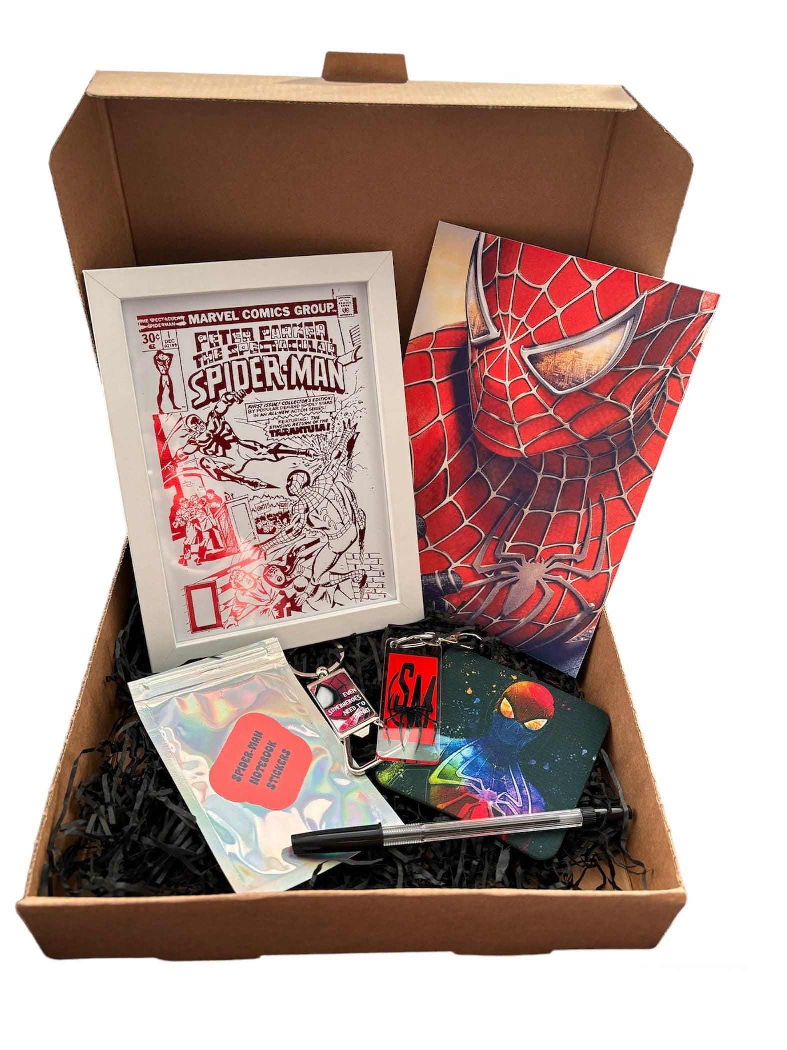 Our Spider-Man Gift Set is a sensational collection celebrating everyone's favorite wall-crawler! Dive into the superhero universe with a framed 5x7 high-gloss foil print of The Amazing Spider-Man comic cover, accompanied by a range of themed accessories.
