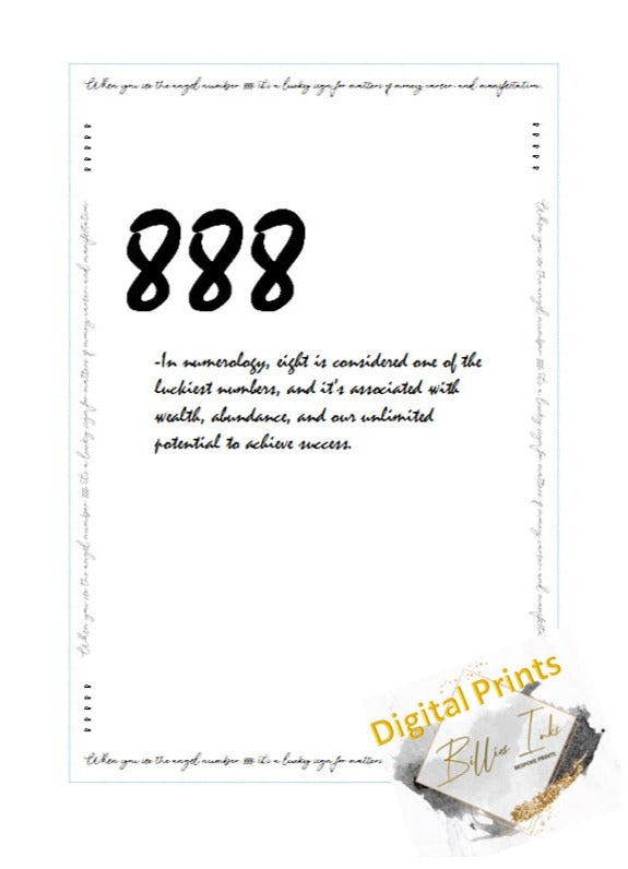 Our 888 Angel Number digital download print is a beautiful reminder of the abundance and prosperity that surrounds us.