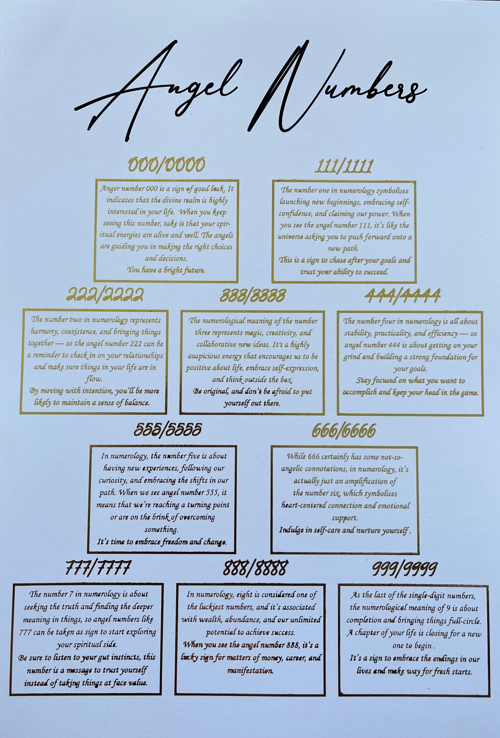 Introducing our exquisite foil printed Angel Numbers print, a celestial work of art that combines beauty and spiritual significance in one captivating piece. This unique print showcases an array of angel numbers delicately adorned with shimmering foil accents, adding a touch of magic and elegance to any space.