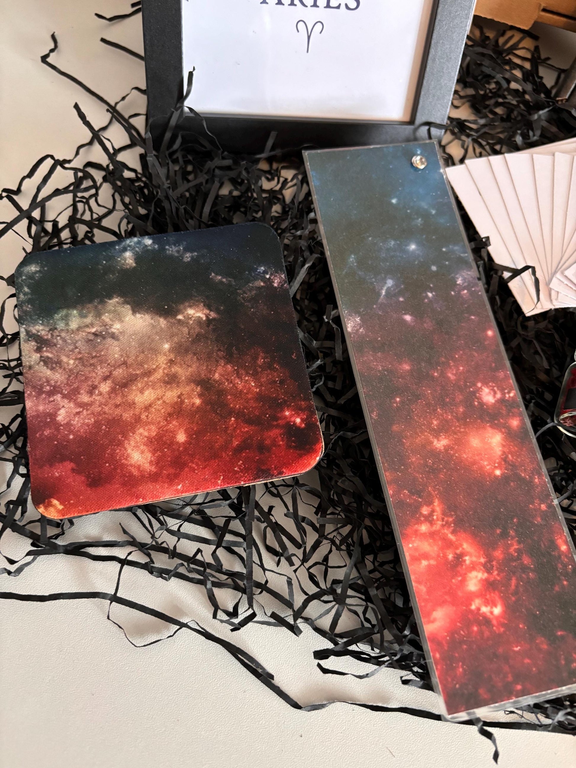 ✨ Aries Bookmark & Matching Coaster – Stylish, zodiac-themed bookmark and coaster set featuring Aries designs. Use the bookmark to keep your place in your favorite book and the matching coaster to enjoy your drink in true Aries style.