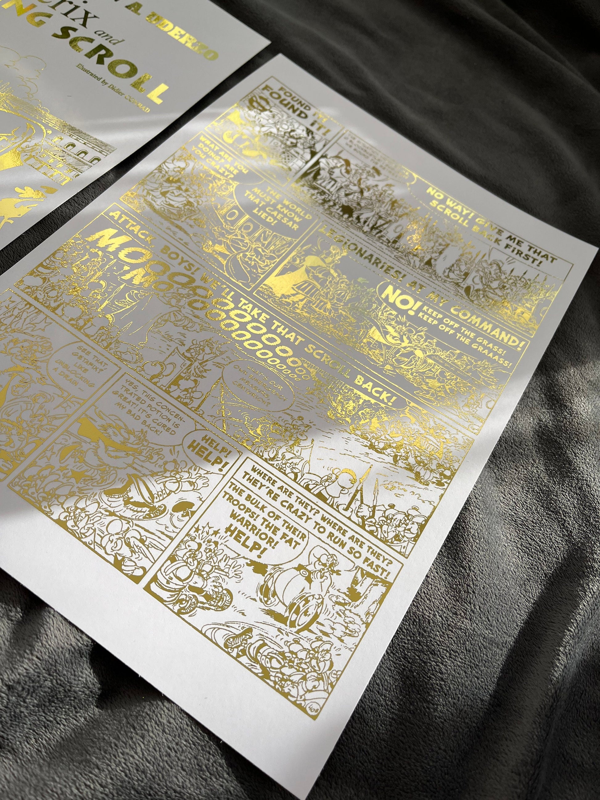 This Asterix gold foil printed comic collection also makes a thoughtful and delightful gift for Asterix fans of all ages. Whether it's a birthday, holiday, or special occasion, these prints are sure to bring smiles and fond memories to anyone who loves the adventures of Asterix and his friends.