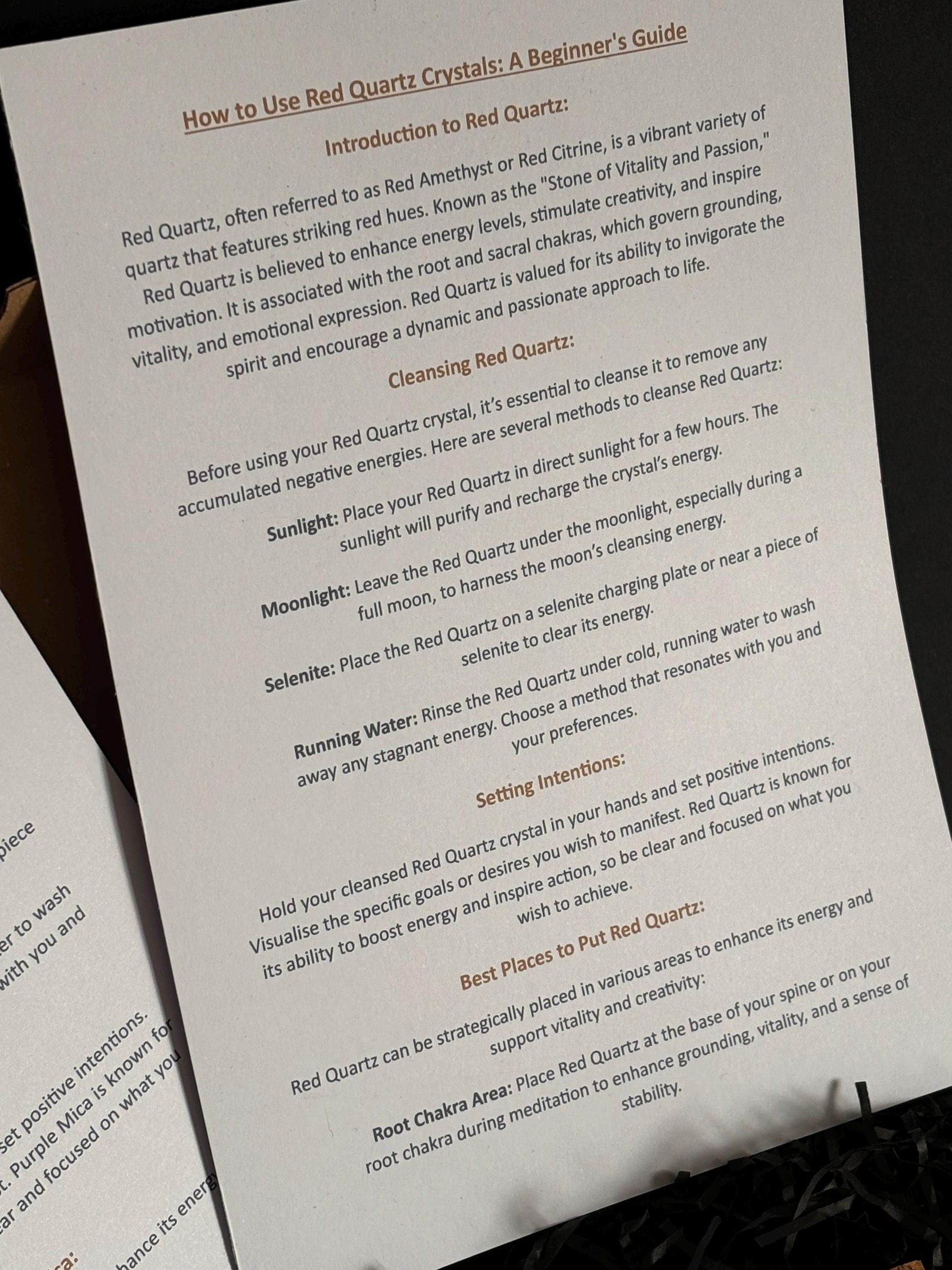 Holistic Healing: Our carefully selected Red Quartz and Purple Mica crystals are known for their ability to promote emotional balance, grounding, and a deeper connection to self.