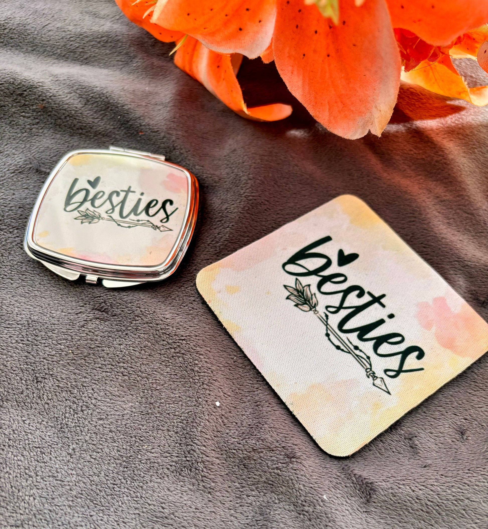 Empower your bestie to shine anytime and anywhere with a compact mirror that's as stylish as it is practical. Perfect for on-the-go touch-ups, this mirror is a symbol of the reflection you provide for each other in times of joy, laughter, and support.