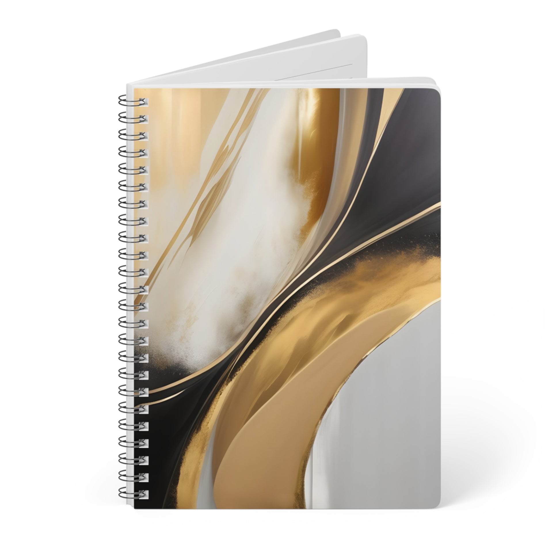 Introducing our gloss, black and gold laminated notebook, where sophistication meets functionality. Crafted with meticulous attention to detail, this notebook is designed to elevate your note-taking experience to new heights.