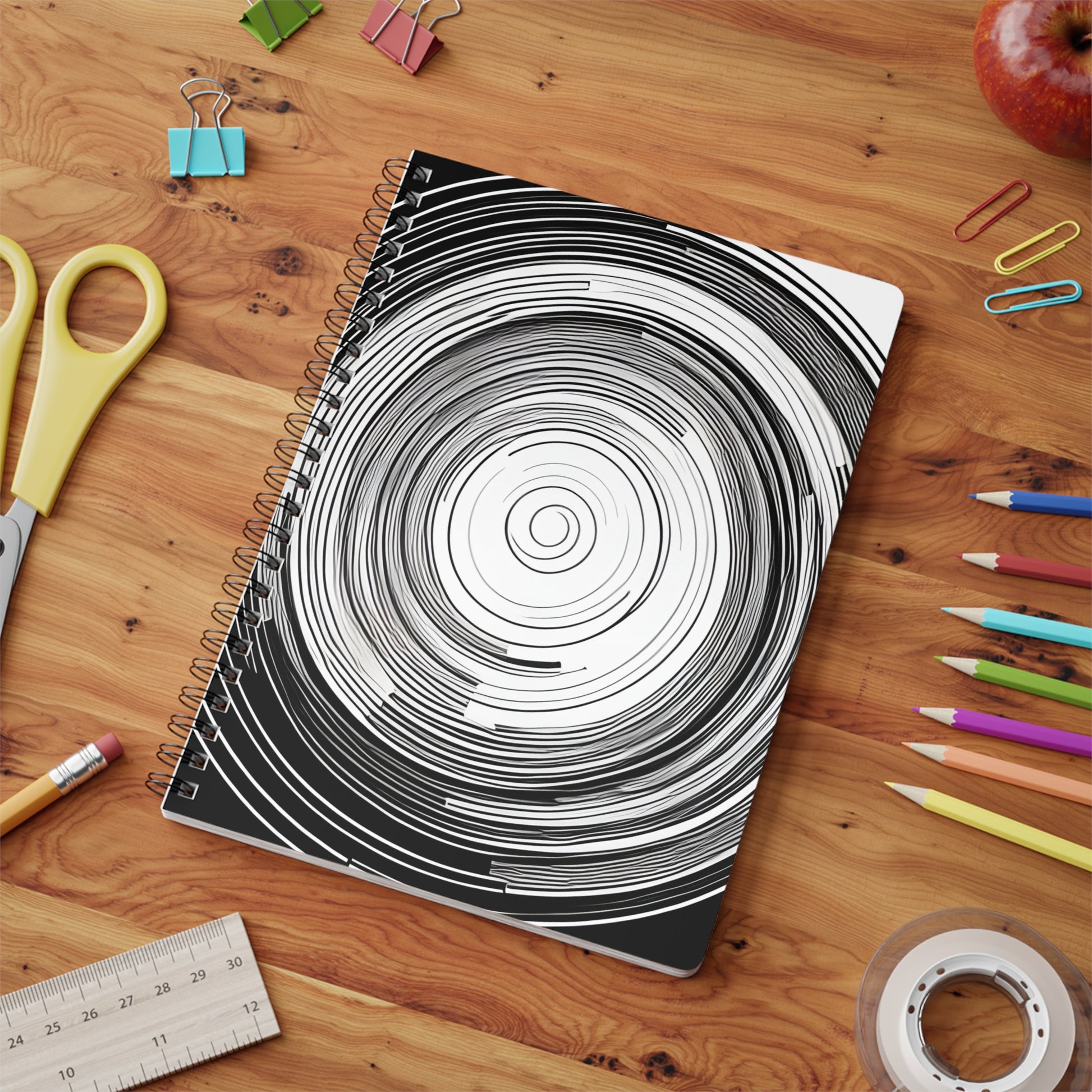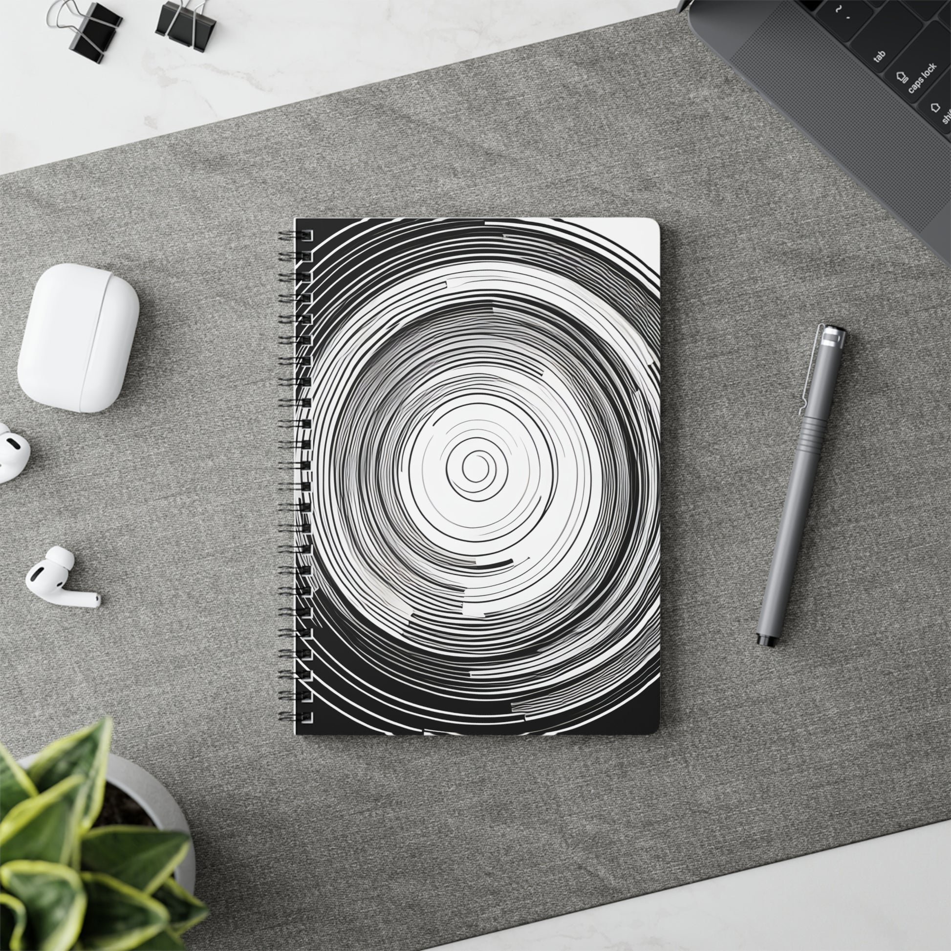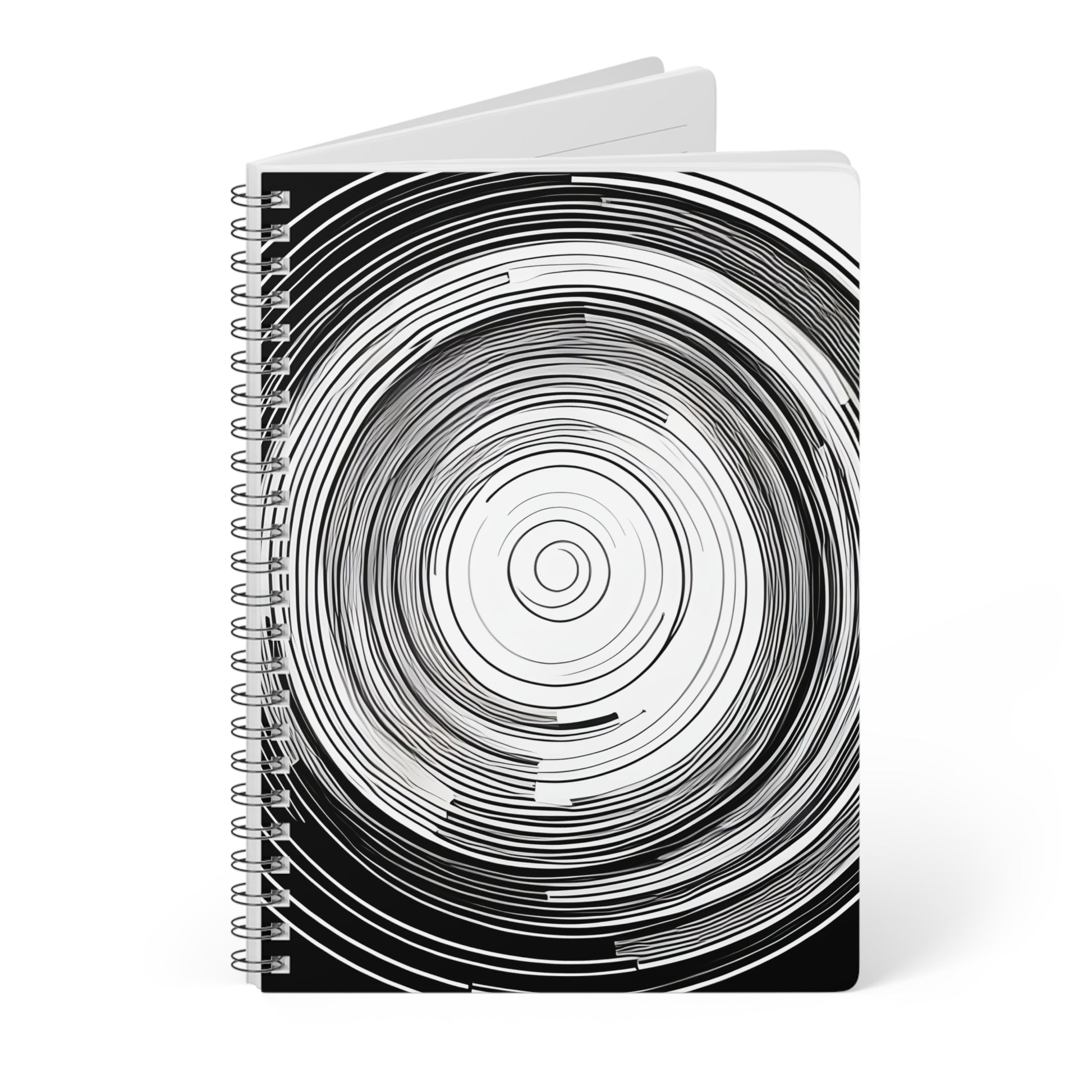 Introducing our gloss, black and white, abstract circle laminated notebook, where sophistication meets functionality. Crafted with meticulous attention to detail, this notebook is designed to elevate your note-taking experience to new heights.