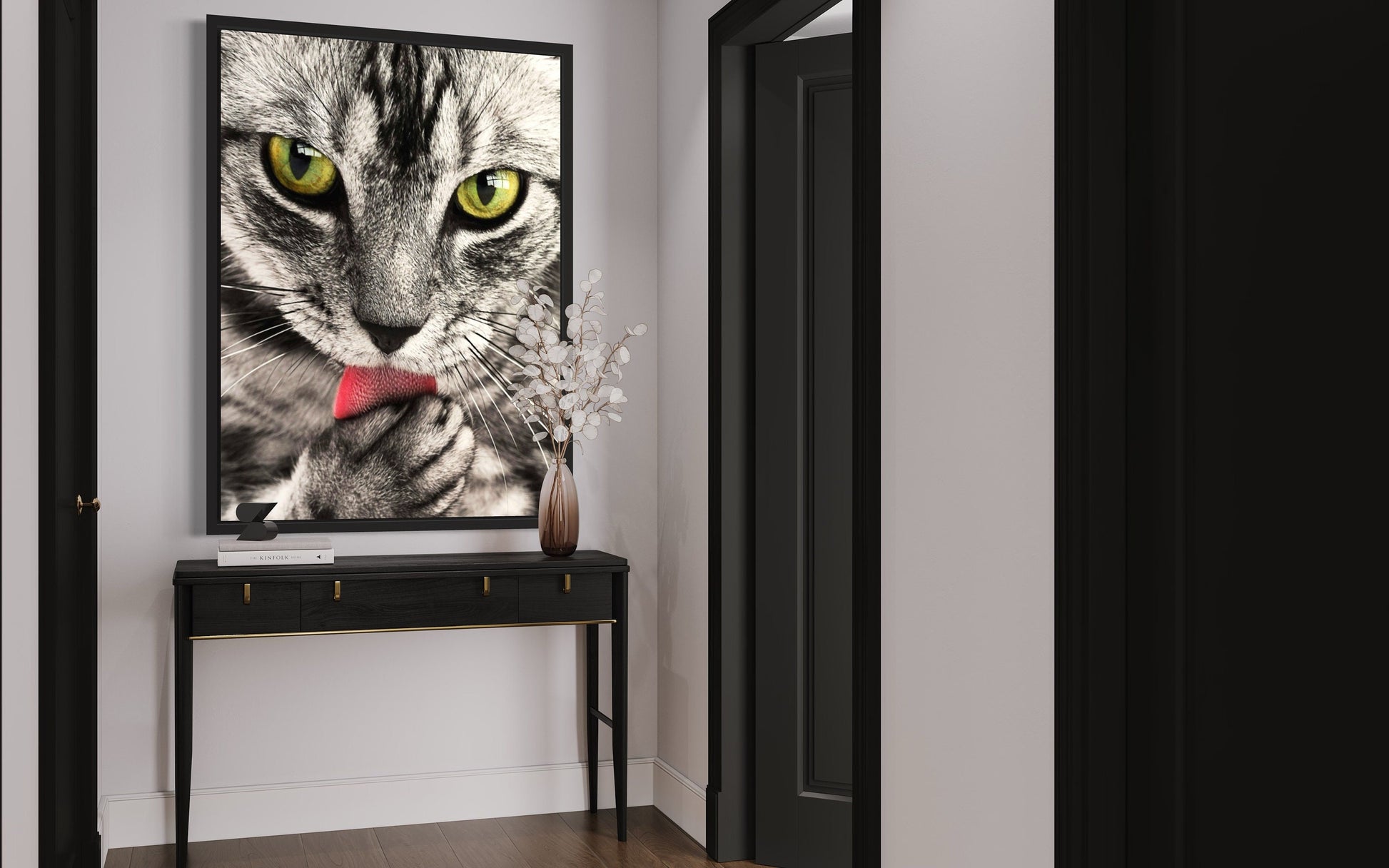 Experience the captivating world of feline grace and elegance with our tabby cat print.