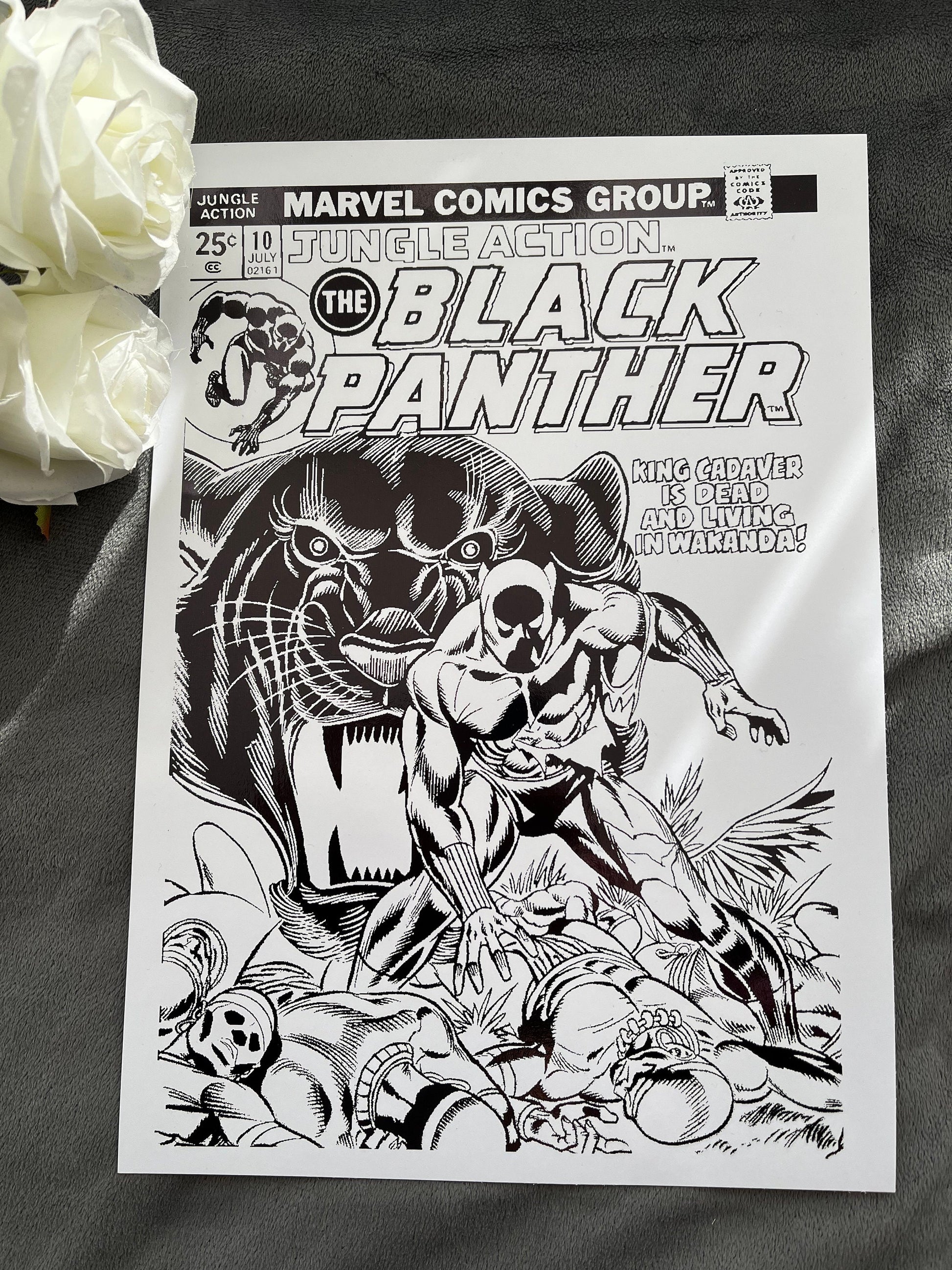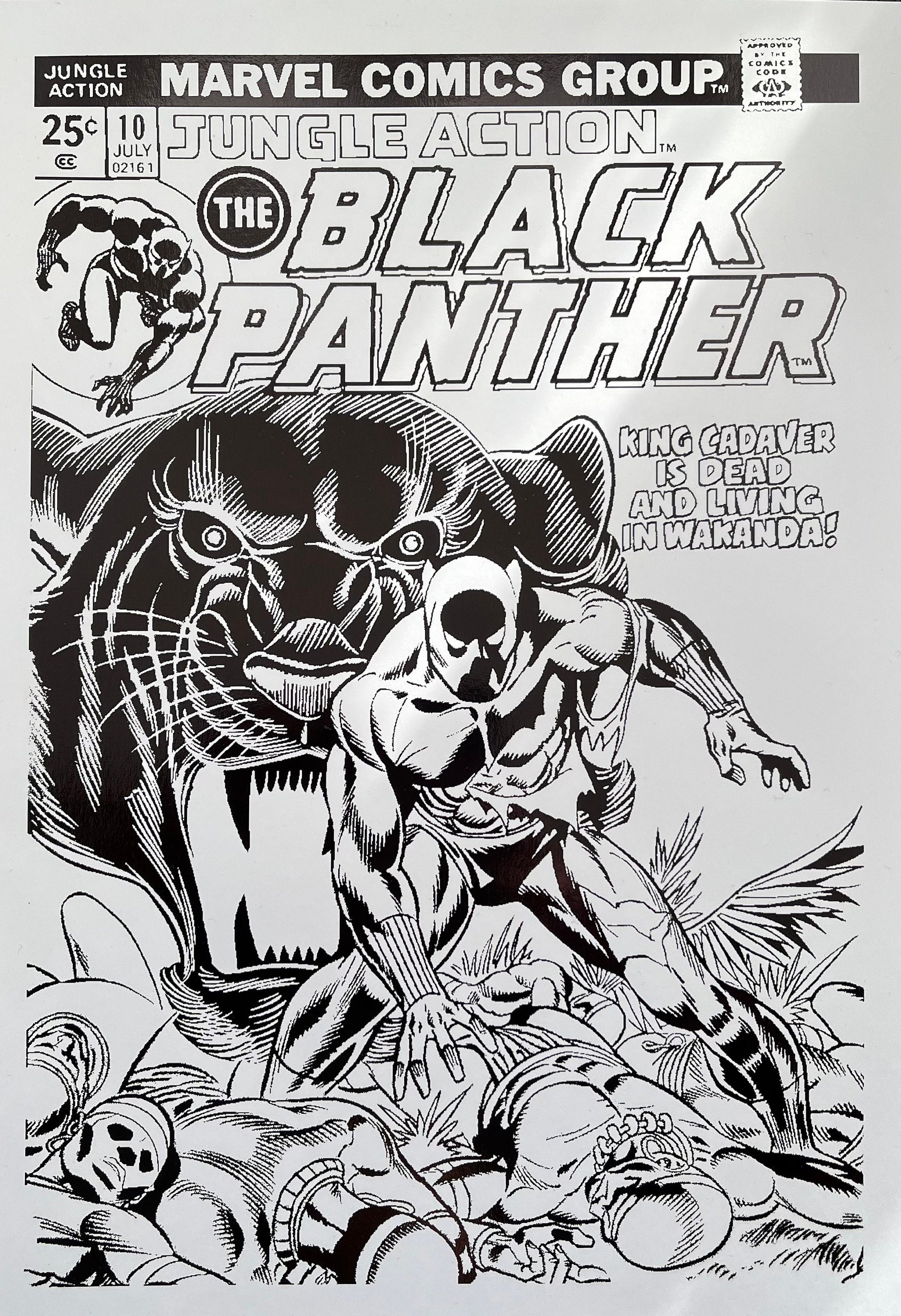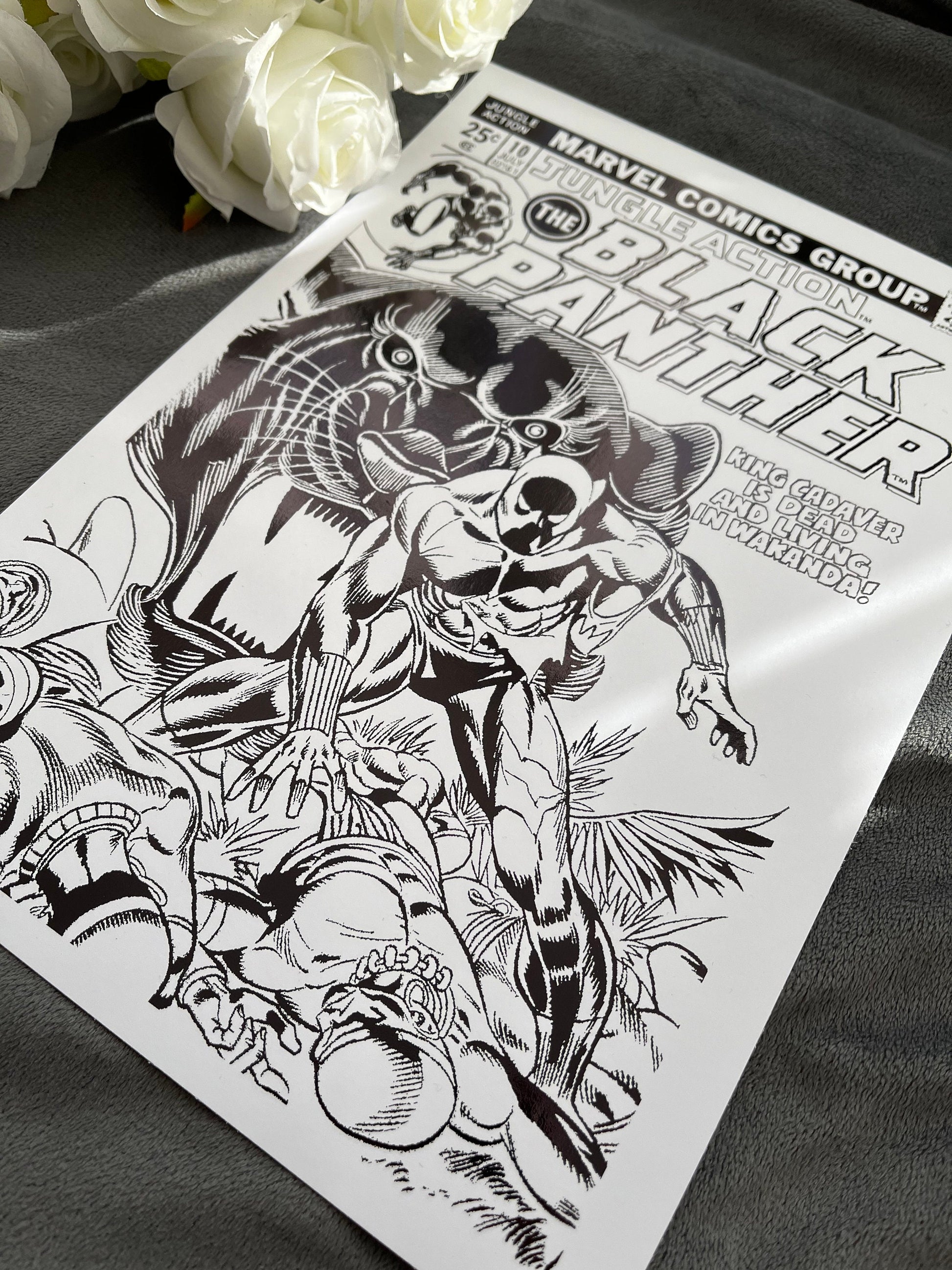 This exclusive artwork features a stunning Black Panther comic cover, beautifully adorned with sleek black foil accents.