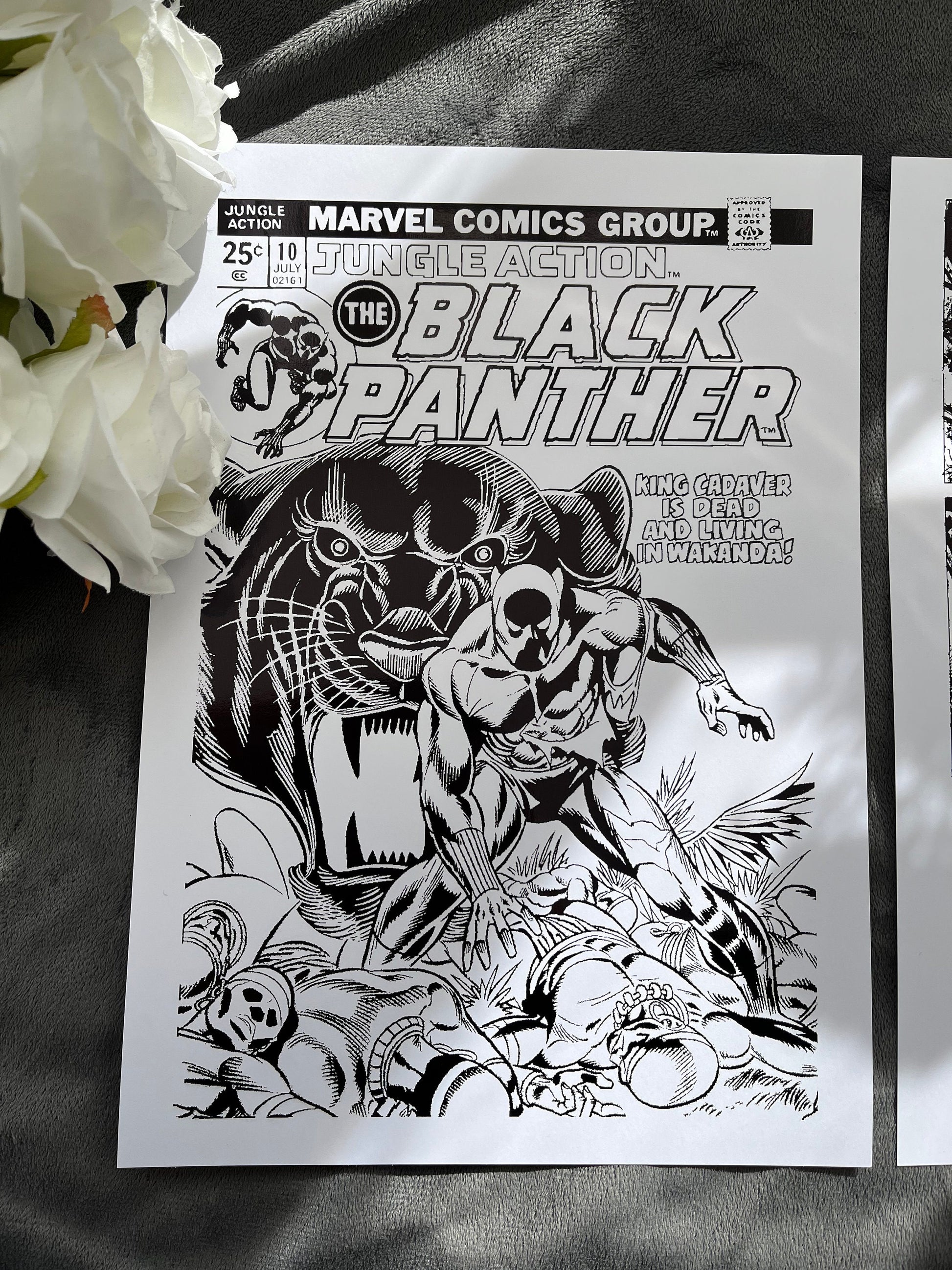 Set of 2 Black Panther Comic Cover & Comic Strip Foil Print
