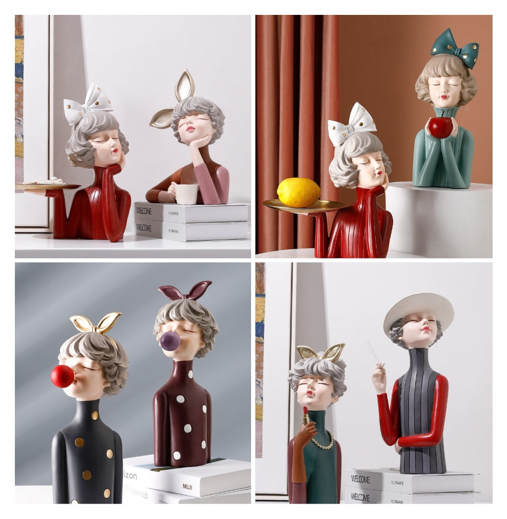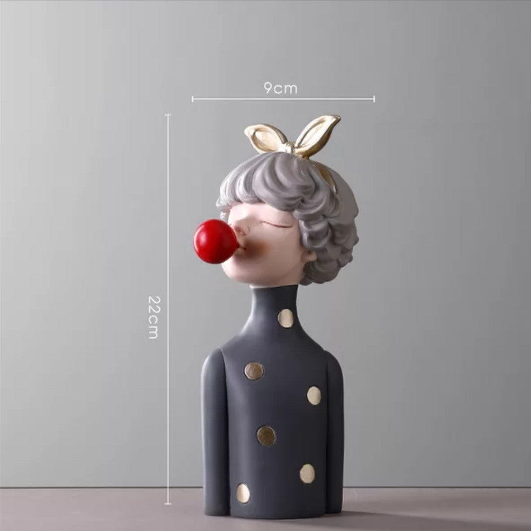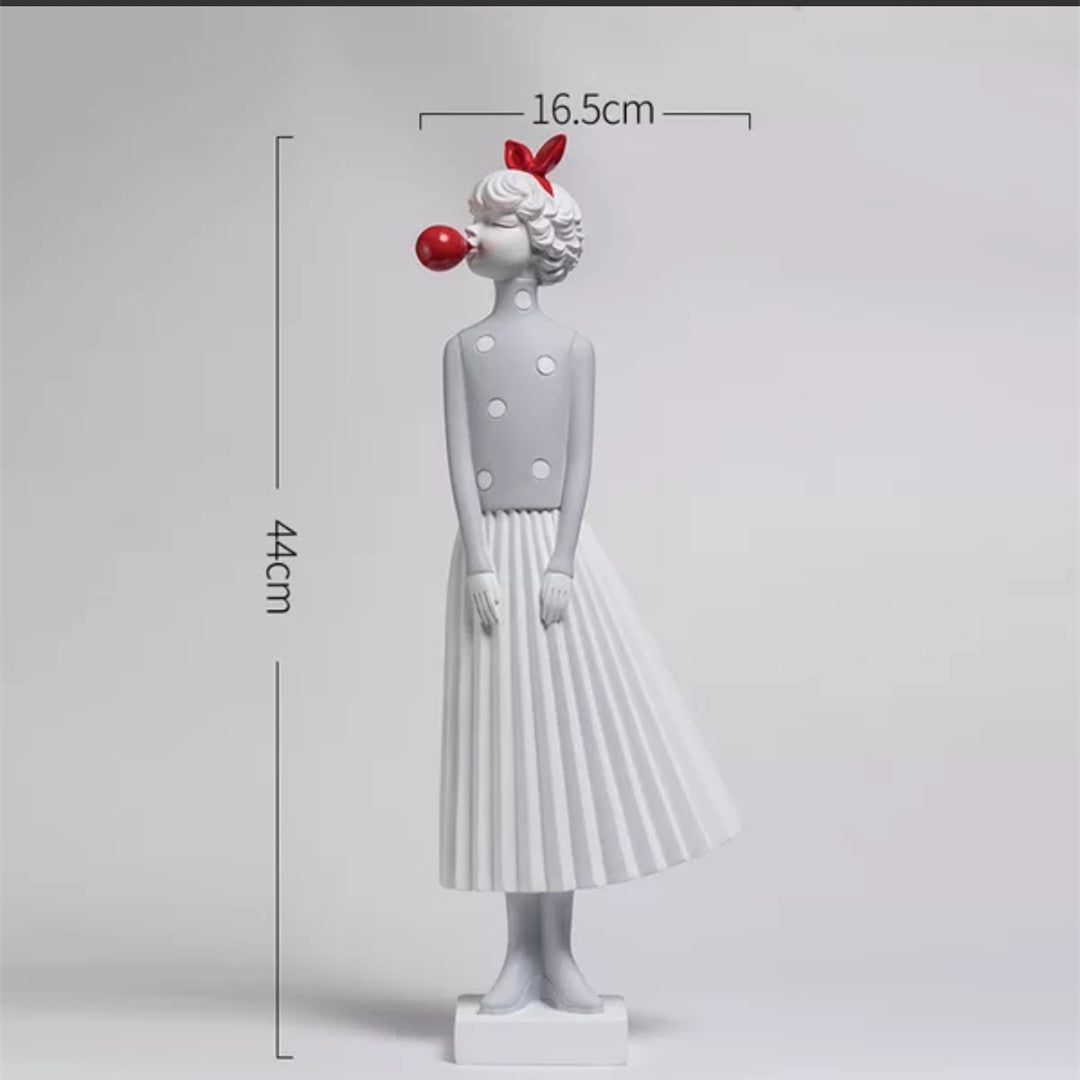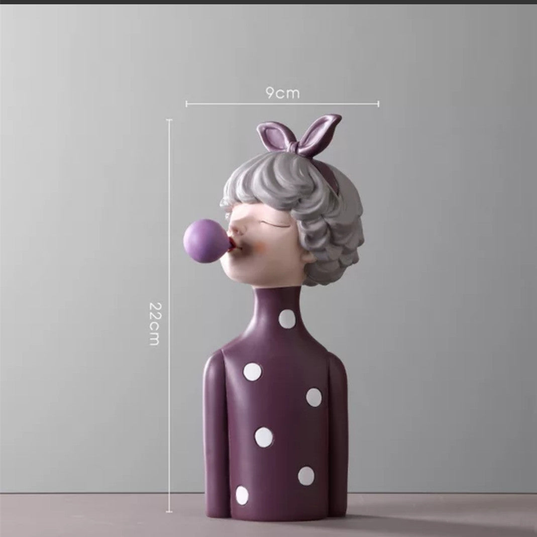 Specifications Bubble Girl Large Gray, Bubble Girl Large Purple, Bubble Girl Small Gray, Bubble Girl Small Purple, Girl-bust, Girl-Sitting, Girl-Standing, Slim-Red Dress, Slim- White skirt, slim-purple skirt, peace girl-white, peace girl-green, thought girl-green, thought girl-red, modern girl-free self, modern girl-yue self, modern girl-grey, modern girl-purple
