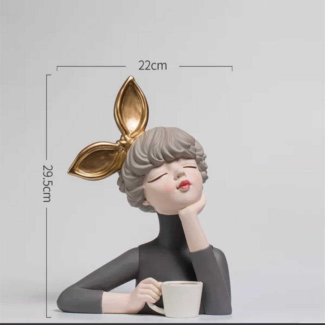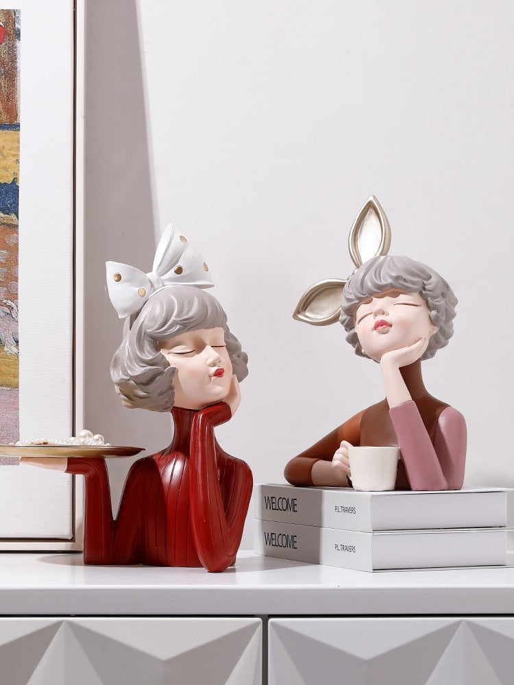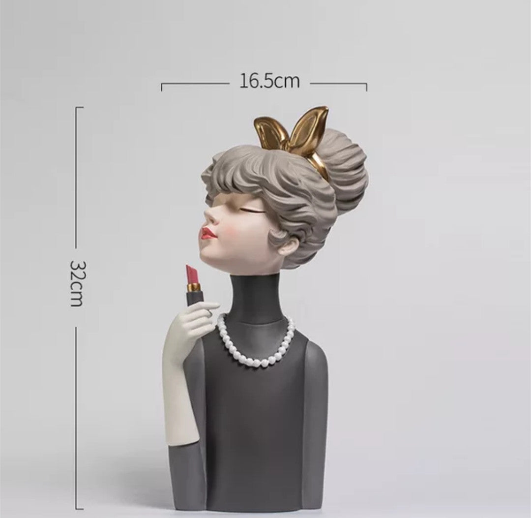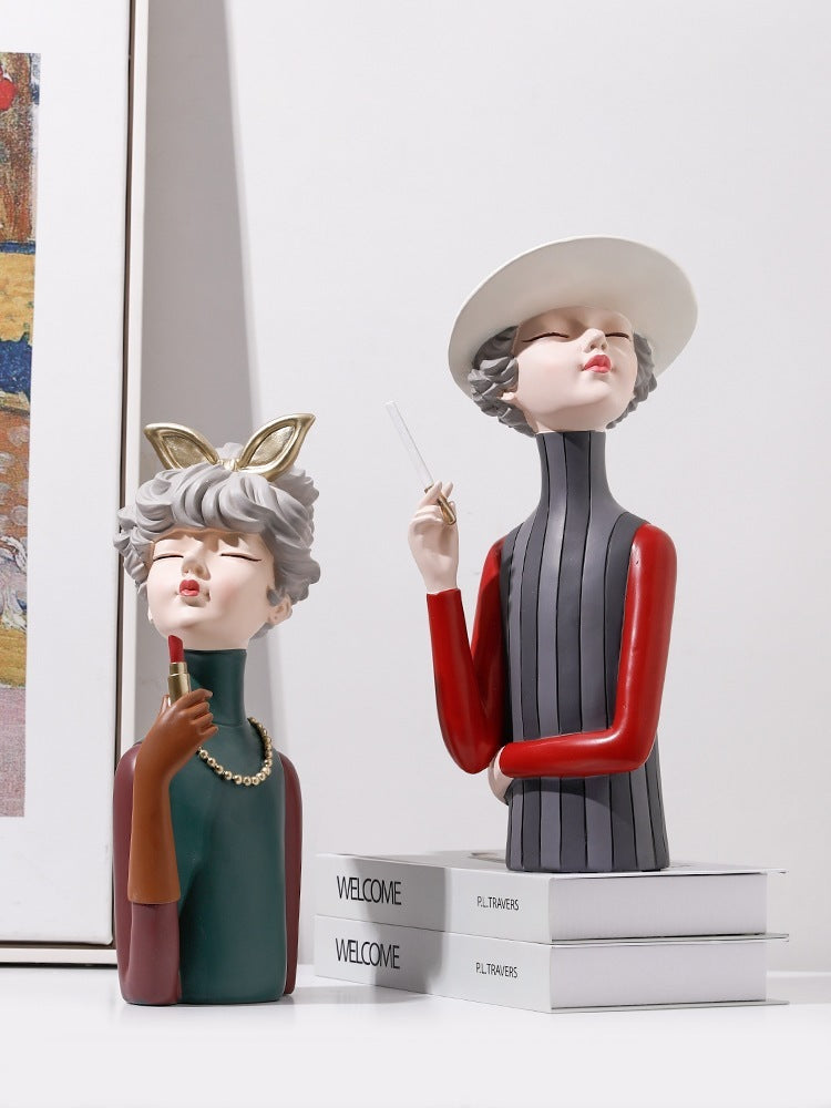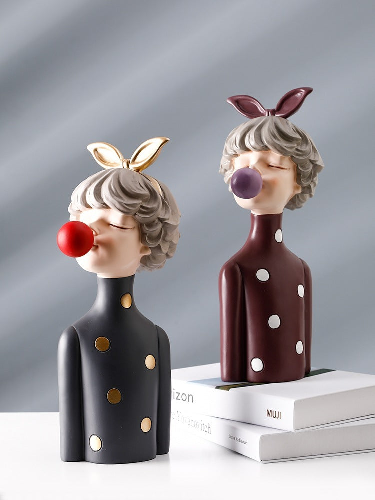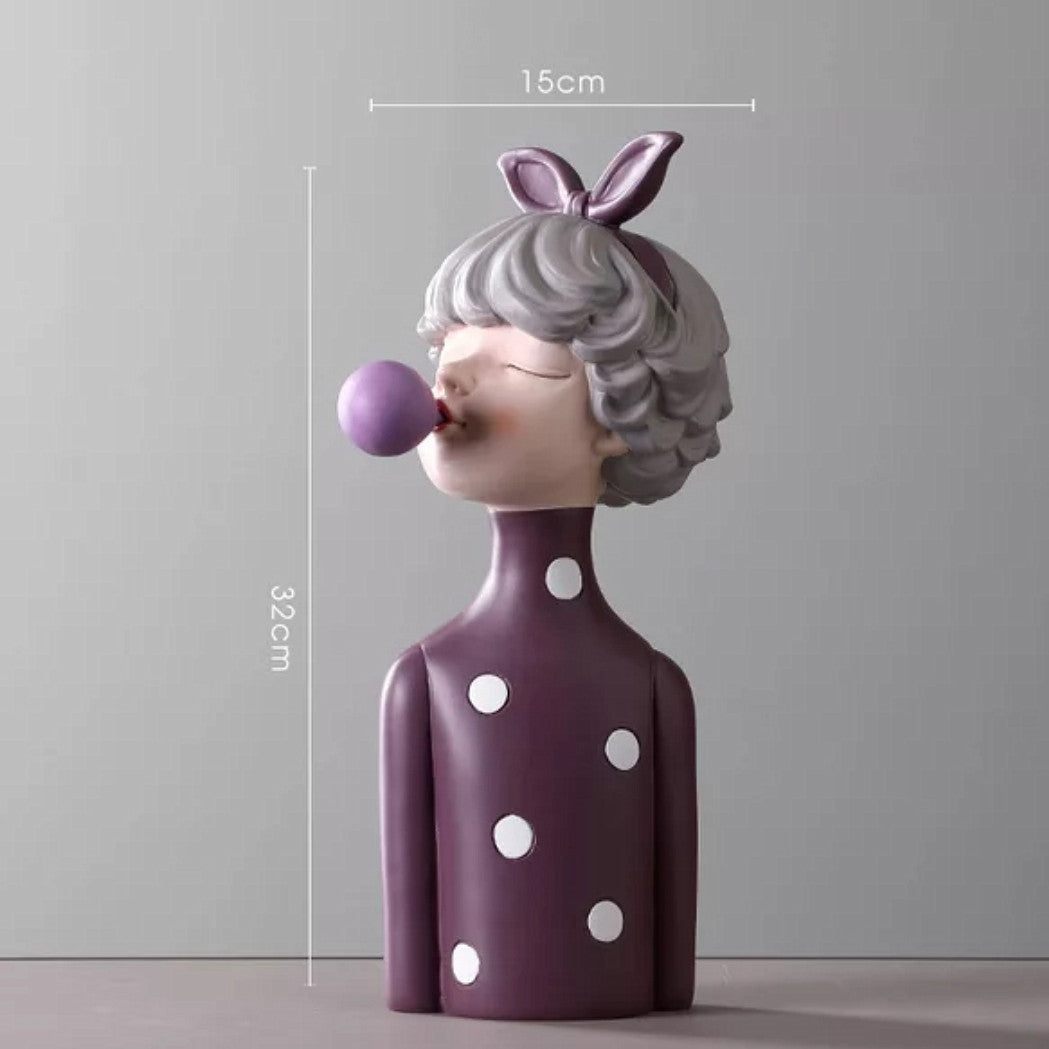 Specifications Bubble Girl Large Gray, Bubble Girl Large Purple, Bubble Girl Small Gray, Bubble Girl Small Purple, Girl-bust, Girl-Sitting, Girl-Standing, Slim-Red Dress, Slim- White skirt, slim-purple skirt, peace girl-white, peace girl-green, thought girl-green, thought girl-red, modern girl-free self, modern girl-yue self, modern girl-grey, modern girl-purple