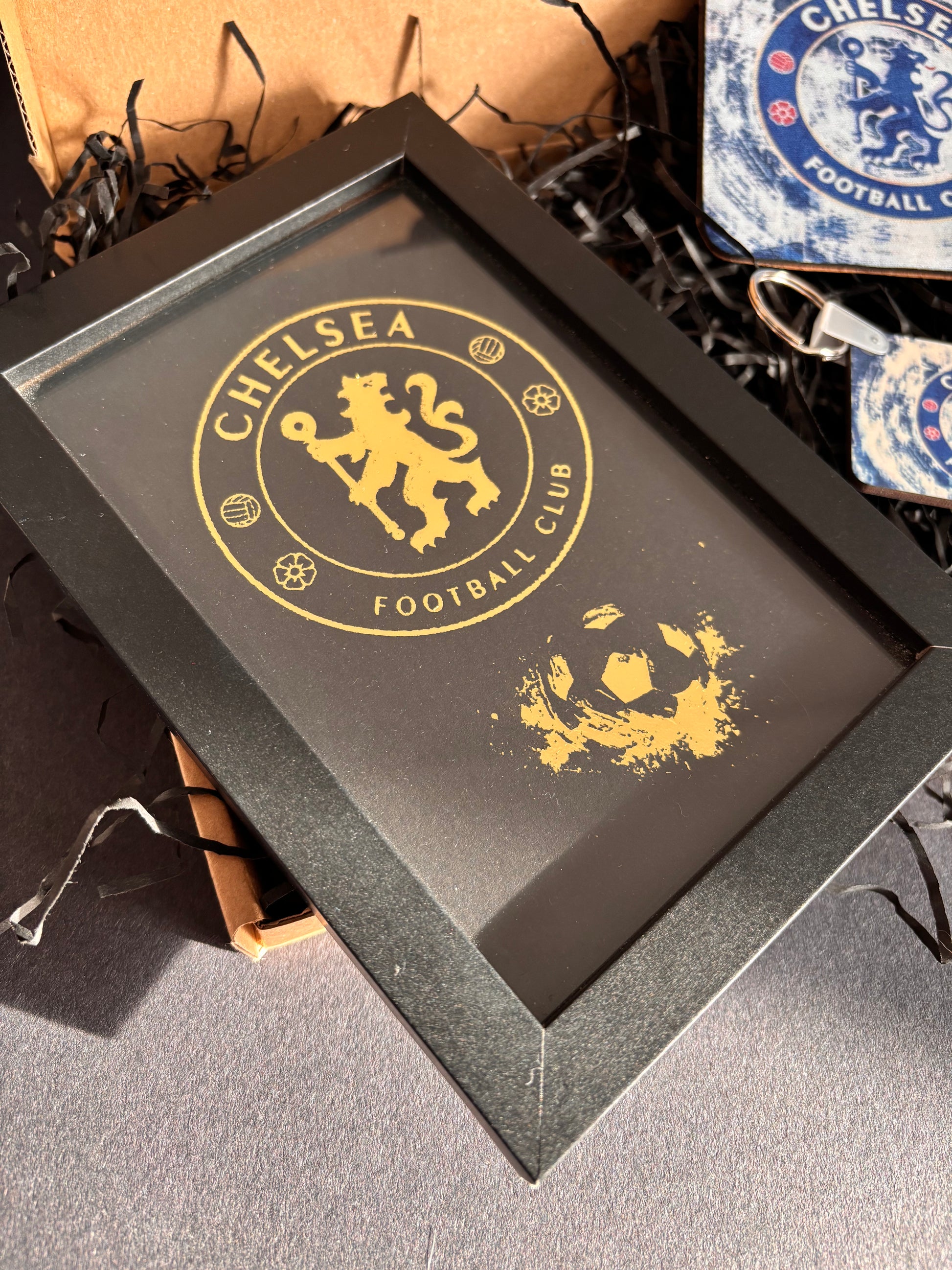 Framed Black and Gold Foil Chelsea Logo Print (4x6): A sleek and stylish tribute to Chelsea FC, this framed print features the iconic club logo in black and gold foil for a luxurious finish. Perfect for displaying in your home or office.