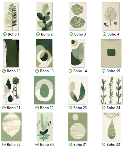 With our mix and match option, you have the freedom to curate your own collection of prints from a stunning array of 30 boho-inspired images. From lush green foliage to delicate cream-toned patterns, each print is a work of art designed to bring warmth and tranquility to your home.
