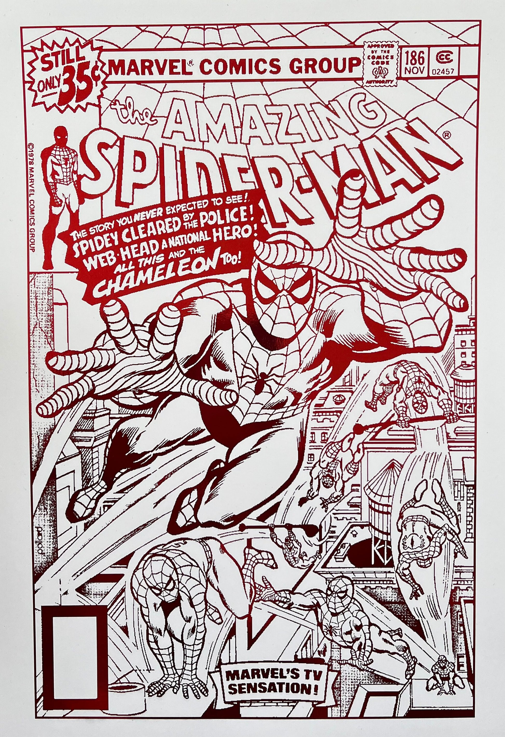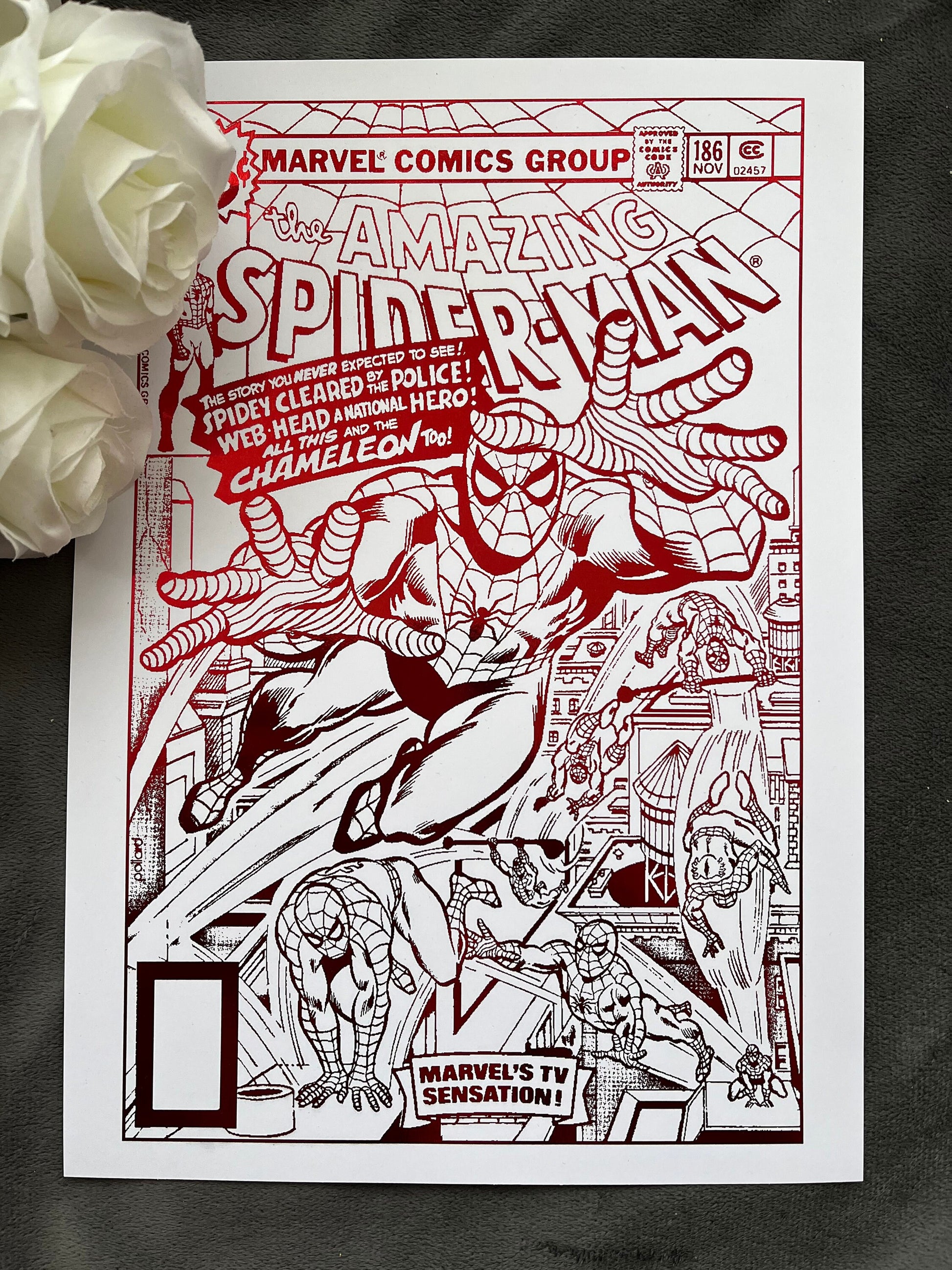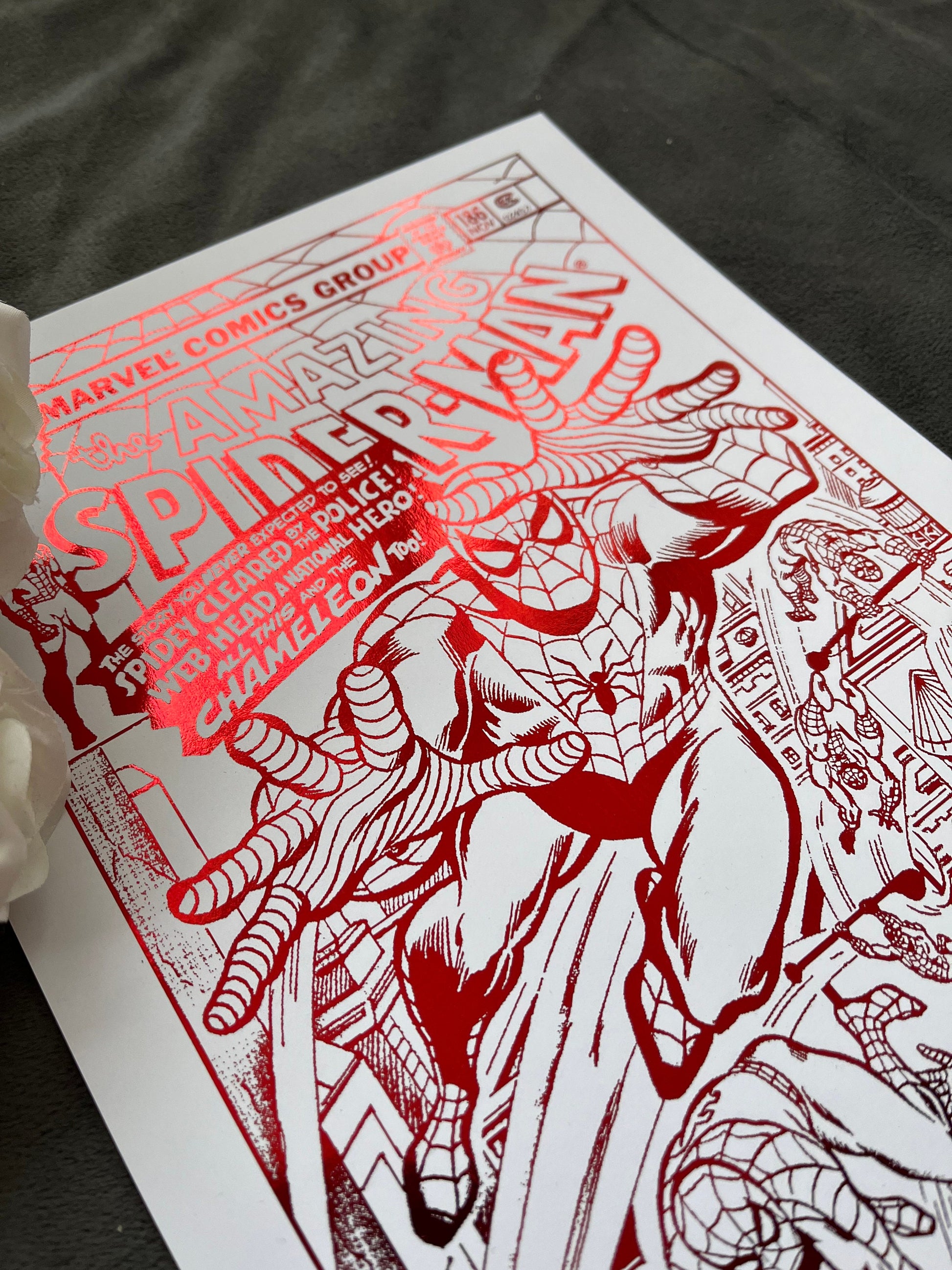 Bring some superhero style to your wall decor with this Spider-Man 186 foil print. Featuring a bold and bright depiction of Spider-Man in action, this print is sure to be a hit with fans of the iconic Marvel Comics character. The foil print adds a metallic finish that catches the light, making it stand out on your wall. This print is made on high-quality cardstock and comes in A5 and A4 sizes, making it easy to frame and display in any room. Whether you’re a die-hard Spider-Man fan or just looking to add some pop culture flair to your home, this foil print is a must-have.