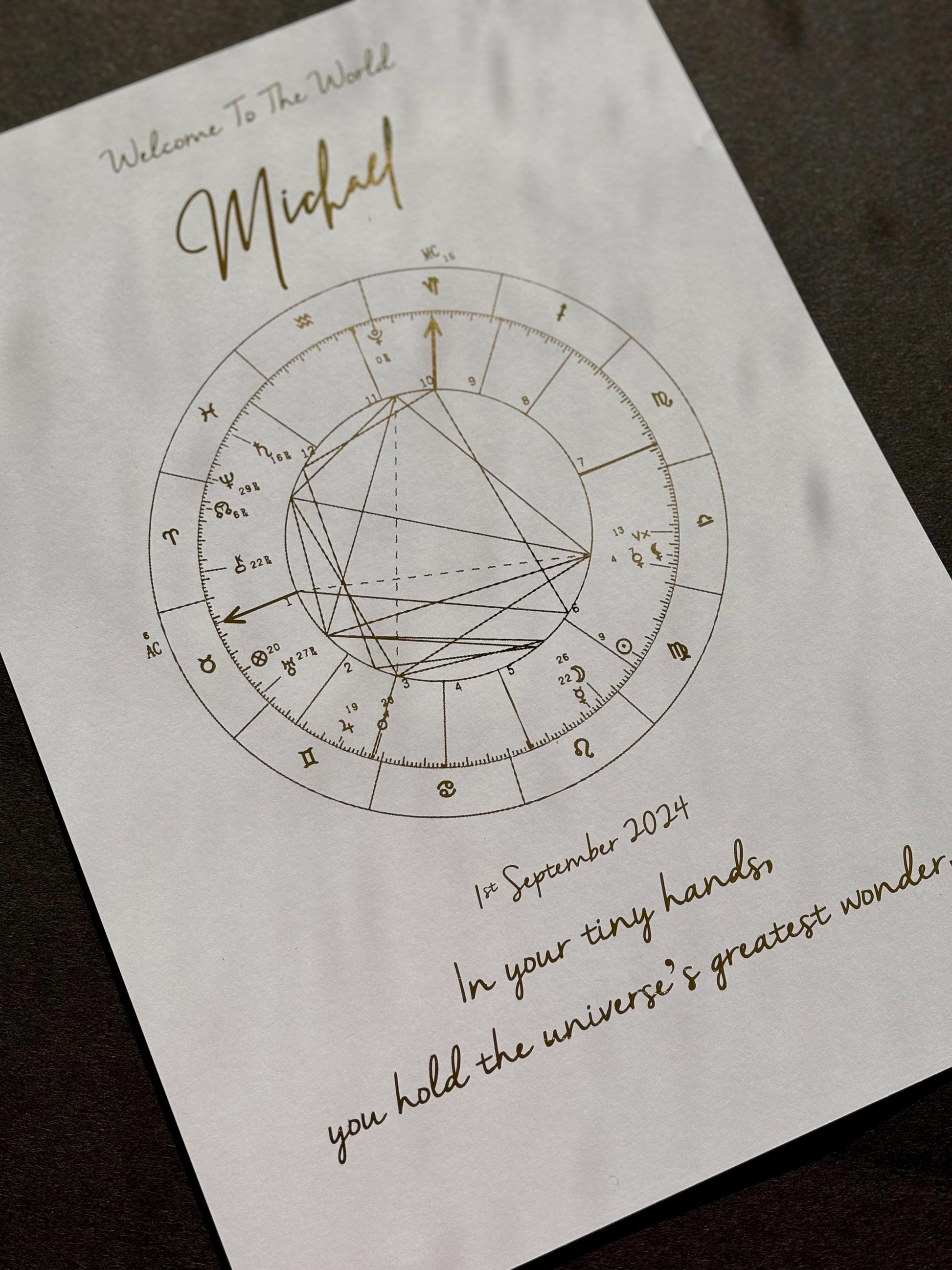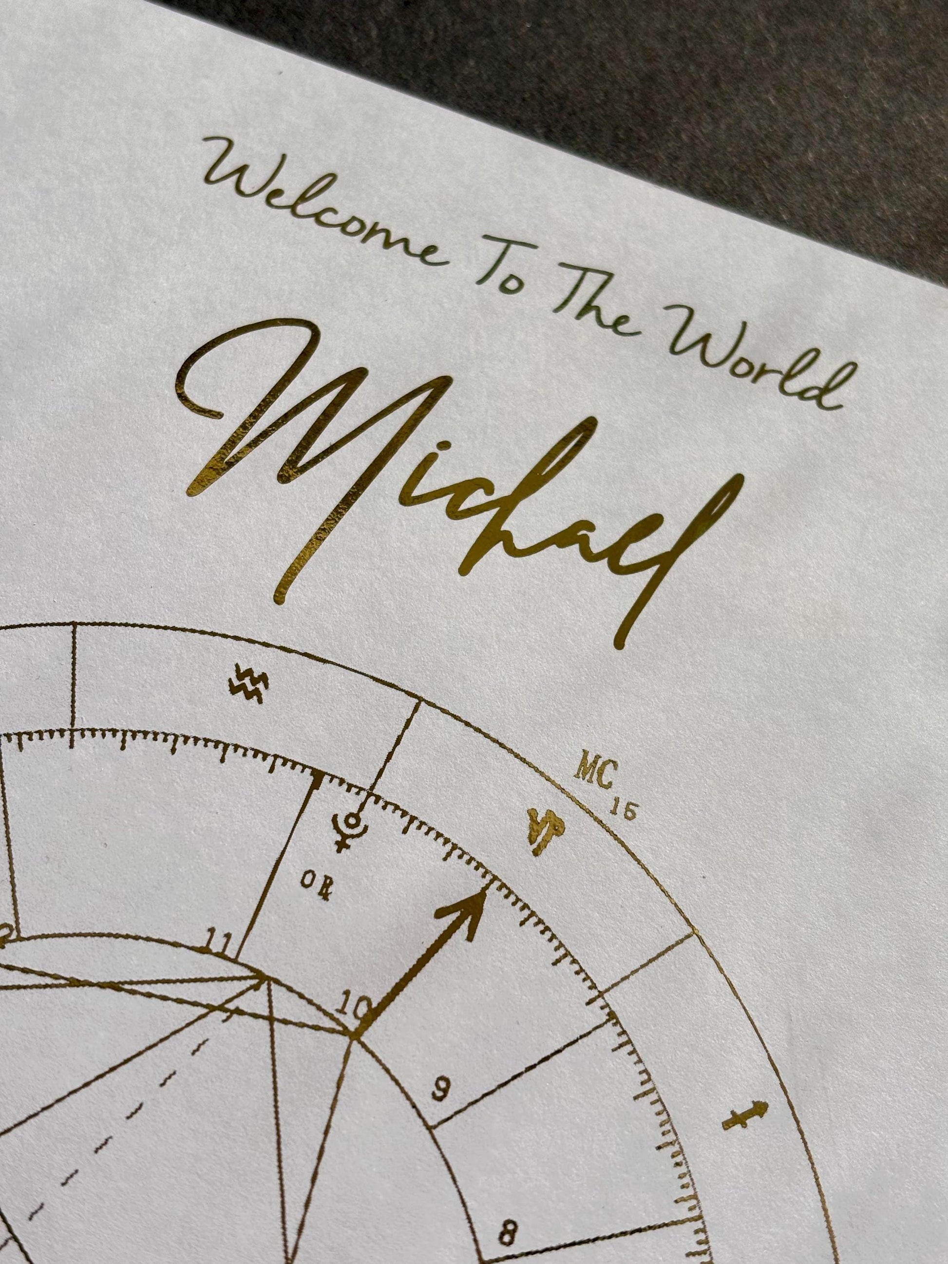 Custom Gold Foil Printed Astrology Birth Chart for Newborns