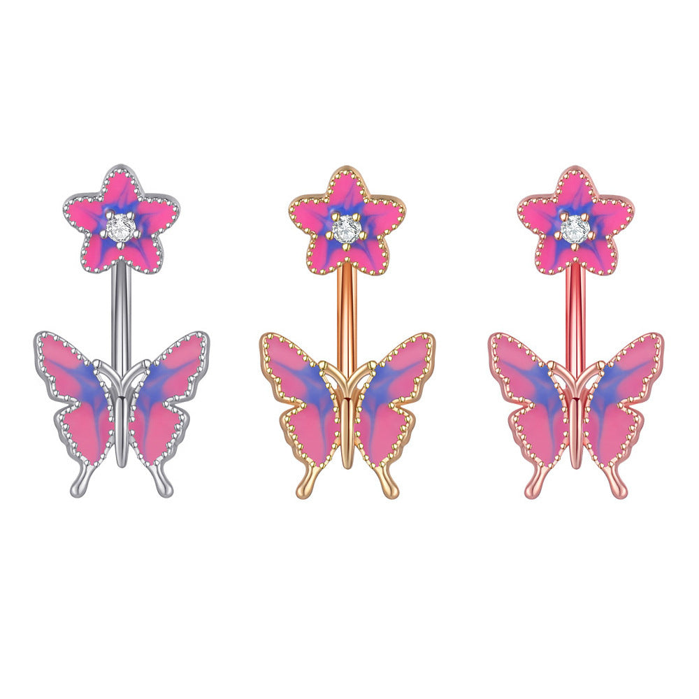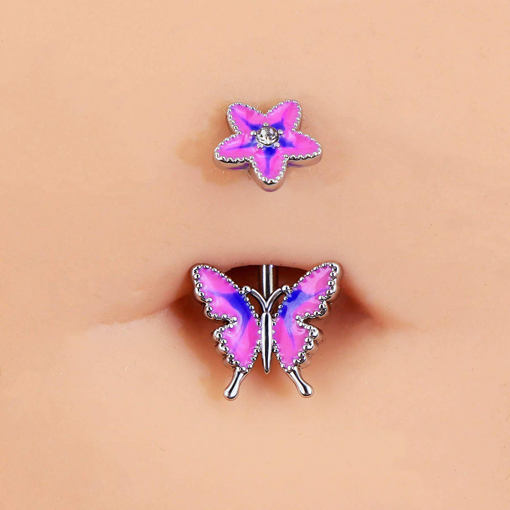 Dripping Butterfly Belly Ring Navel Stud Piercing Jewelry