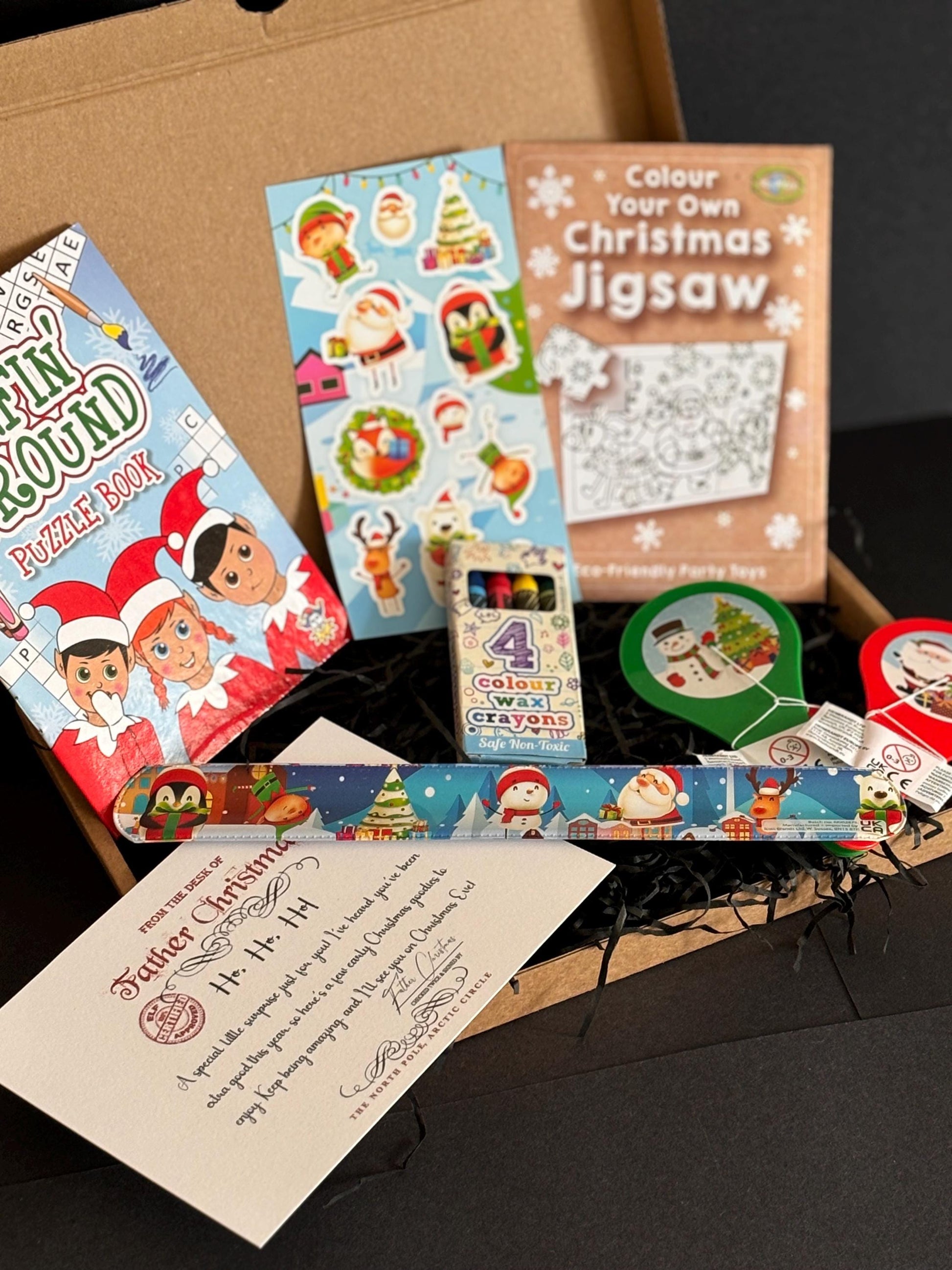 Bring extra magic to your child’s Christmas Eve (or earlier of course) with our delightful Father Christmas, Christmas Eve Gift Box! Packed with exciting toys and activities, this box is perfect for keeping little ones entertained while they eagerly wait for Santa’s arrival.