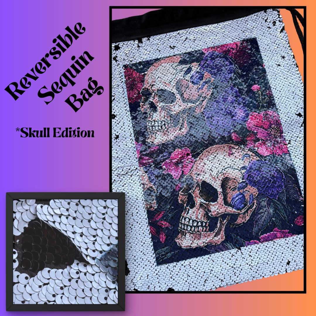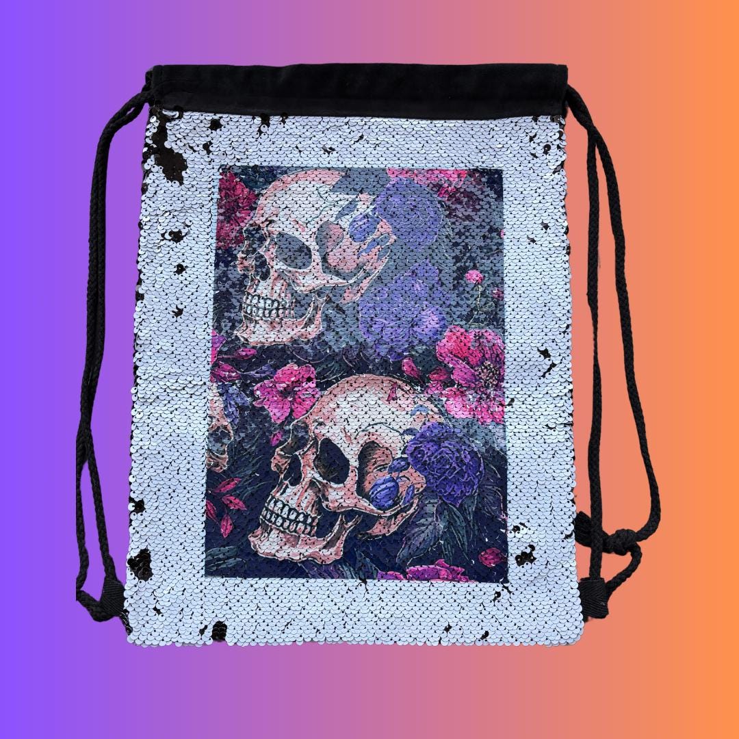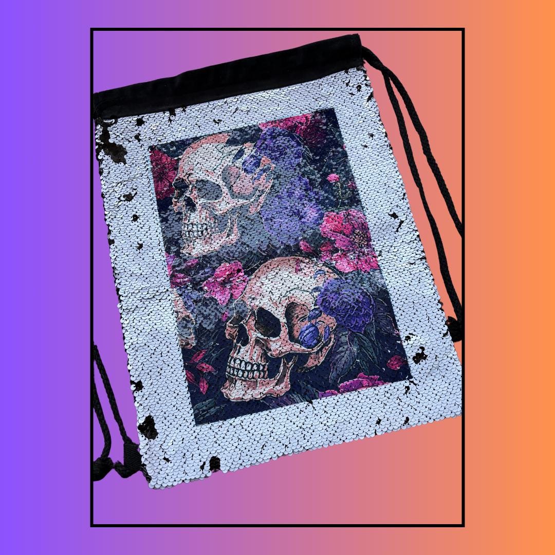 Floral Skull Sequin Drawstring Bag – Unique, Bold & Beautiful