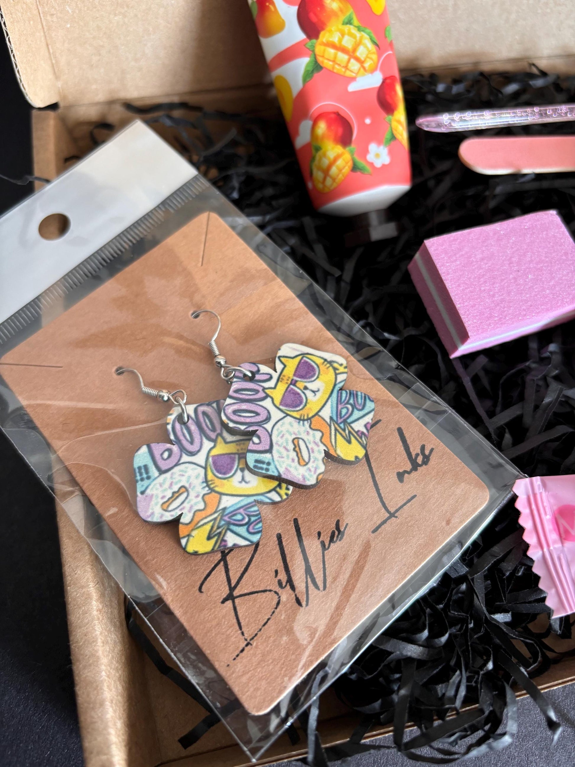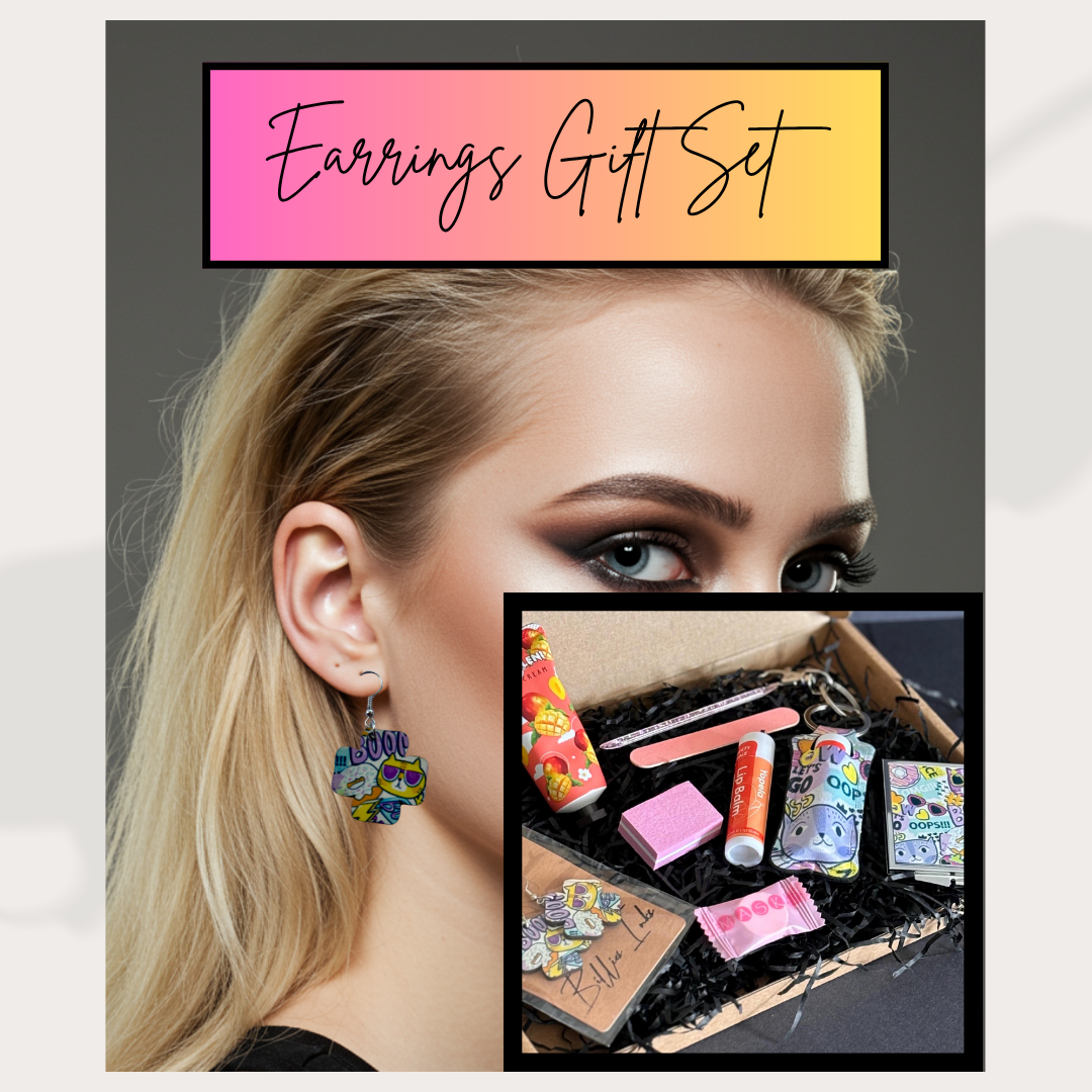 Funky Cats Handbag Essentials and Earrings Gift Set – Earrings, Lipstick Holder, Nail and Skincare Treats