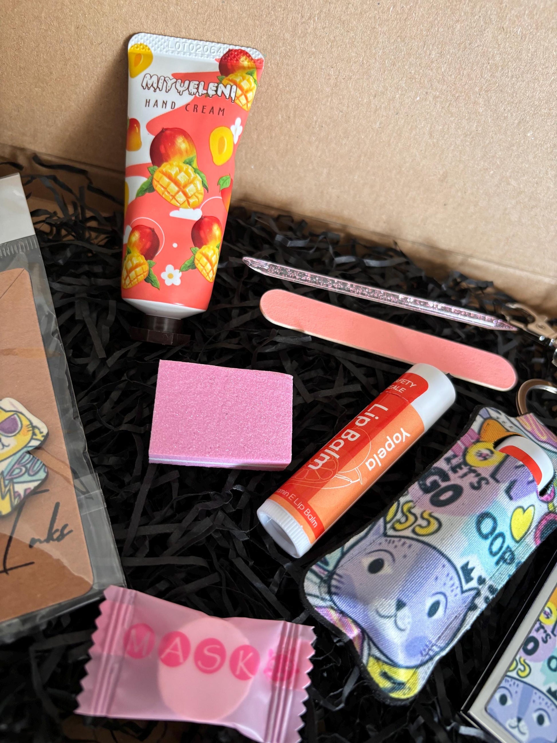 Hand Cream & Lip Balm – Stay moisturised on the go with a luxurious hand cream and nourishing lip balm, each in a surprise selection of delightful flavours and fragrances.