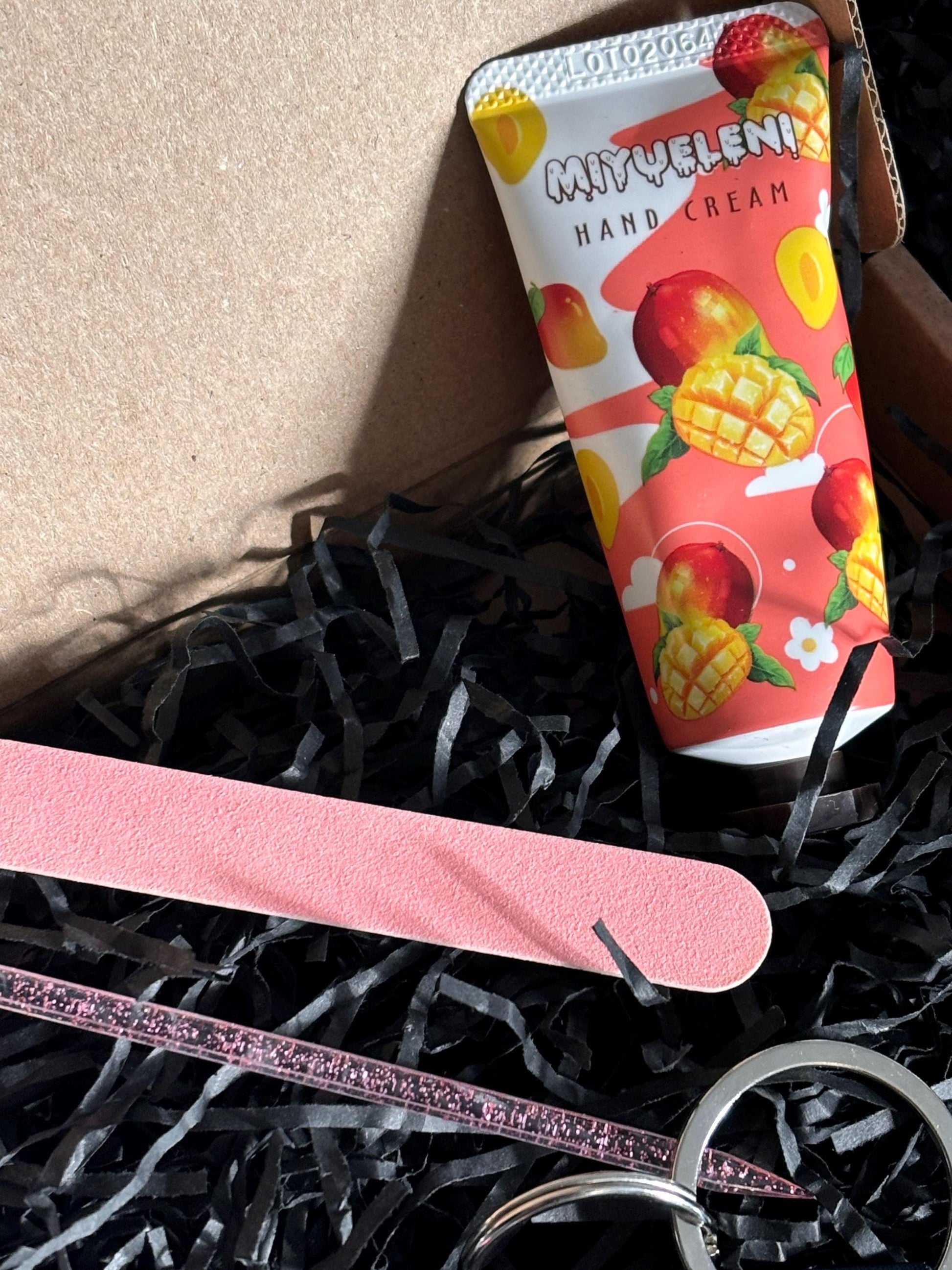 ✨ Hand Cream & Lip Balm – Stay moisturised on the go with a luxurious hand cream and nourishing lip balm, each in a surprise selection of delightful flavours and fragrances.