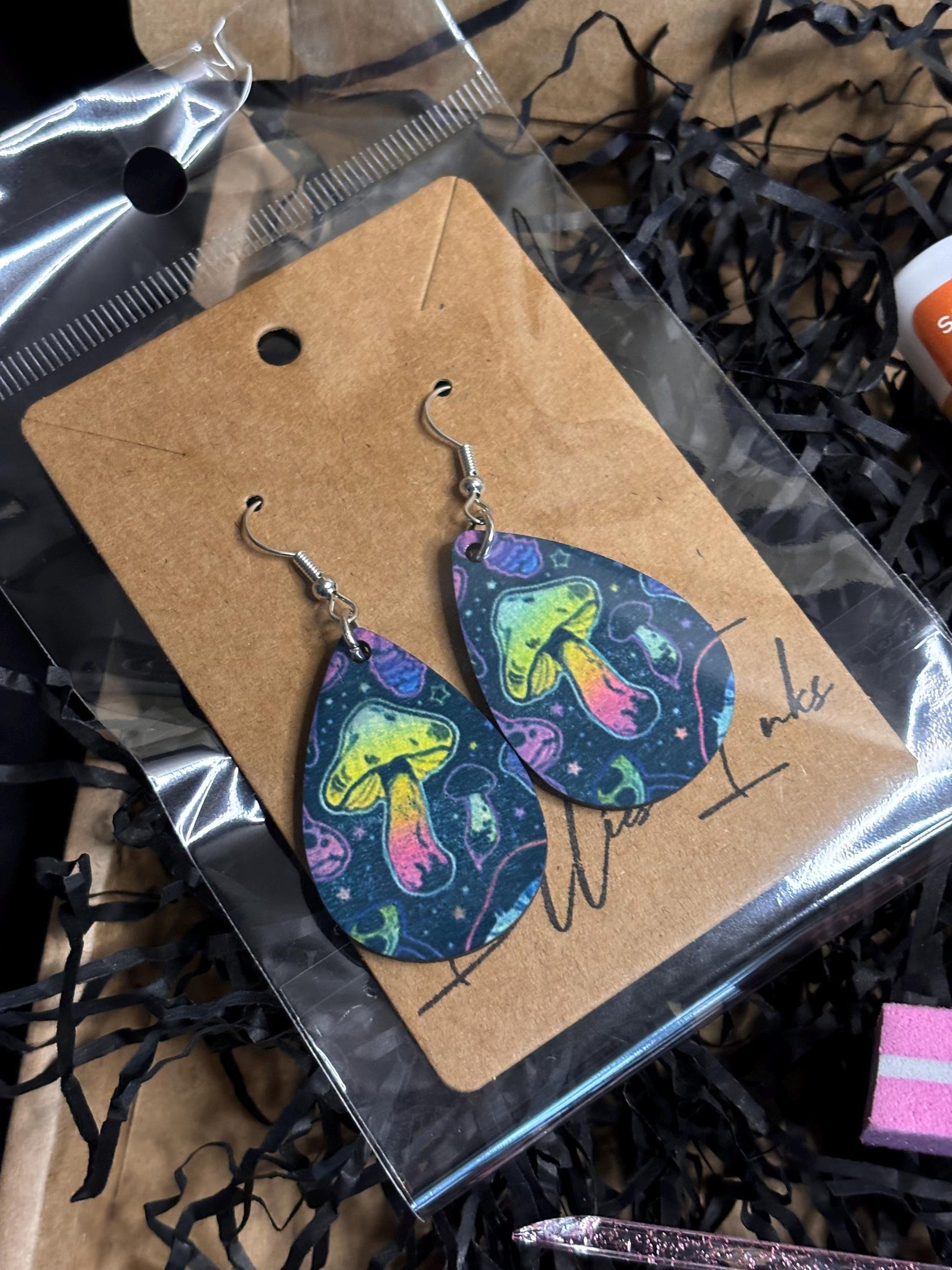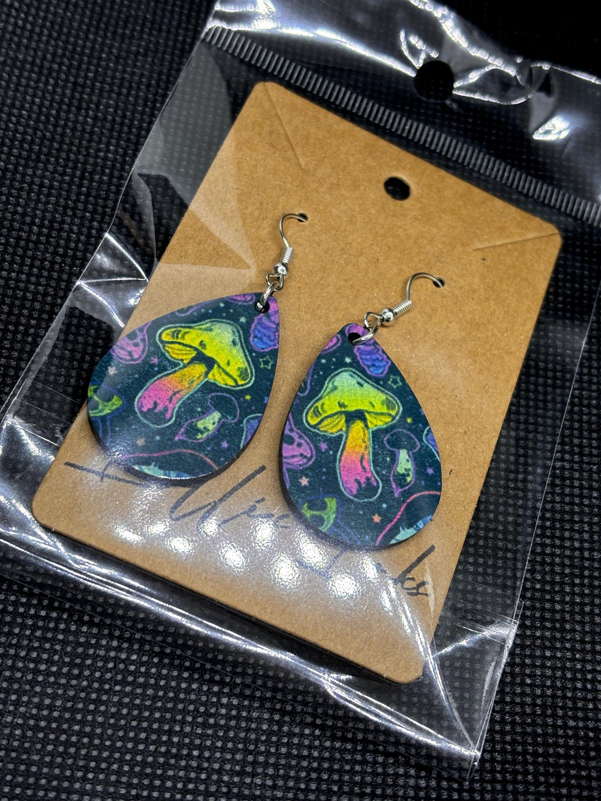 🍄 Raving Mushrooms Oval Earrings – Add a pop of colour and whimsy to your look with these vibrant, one-of-a-kind earrings featuring a cool mushroom design.