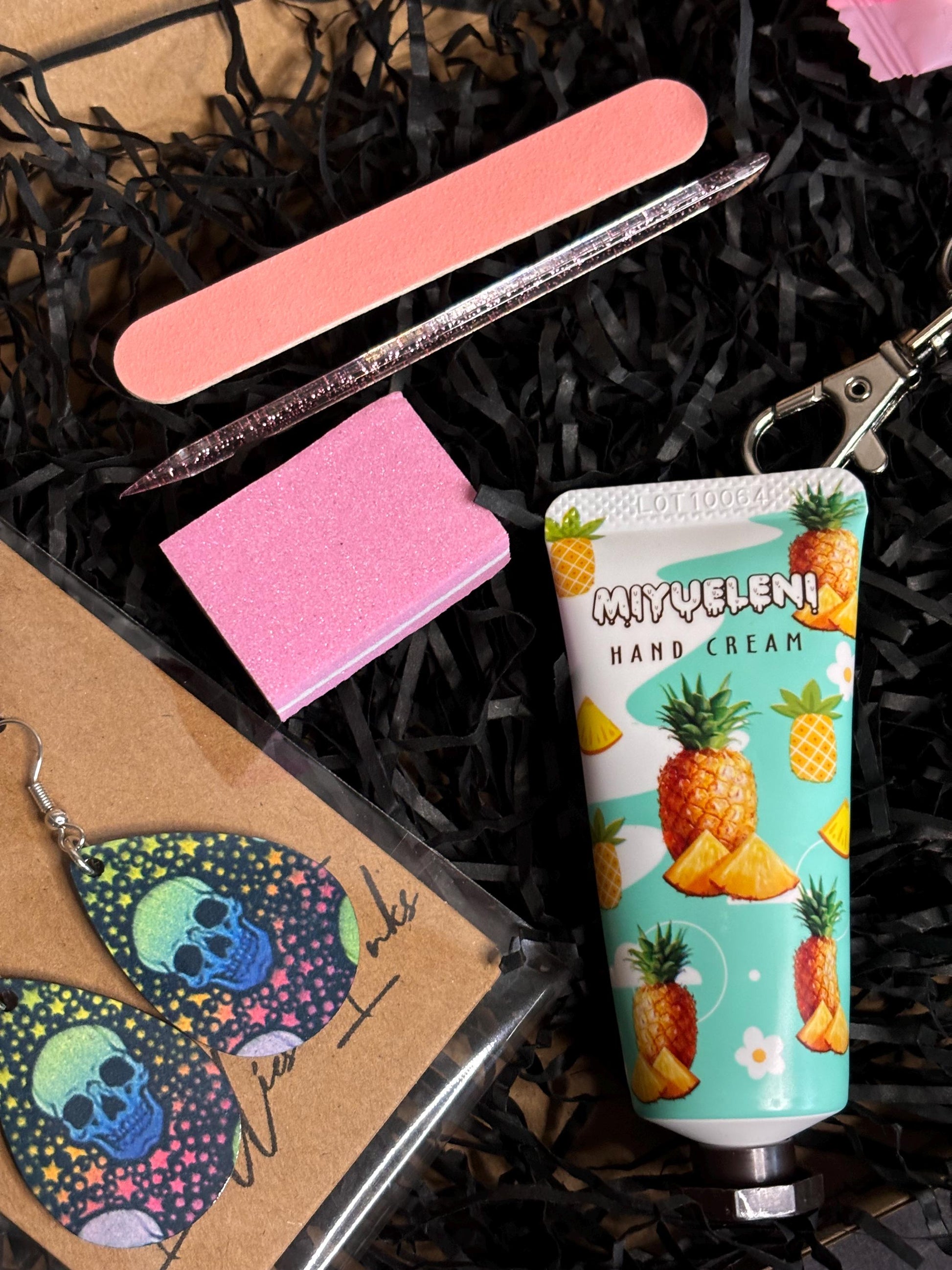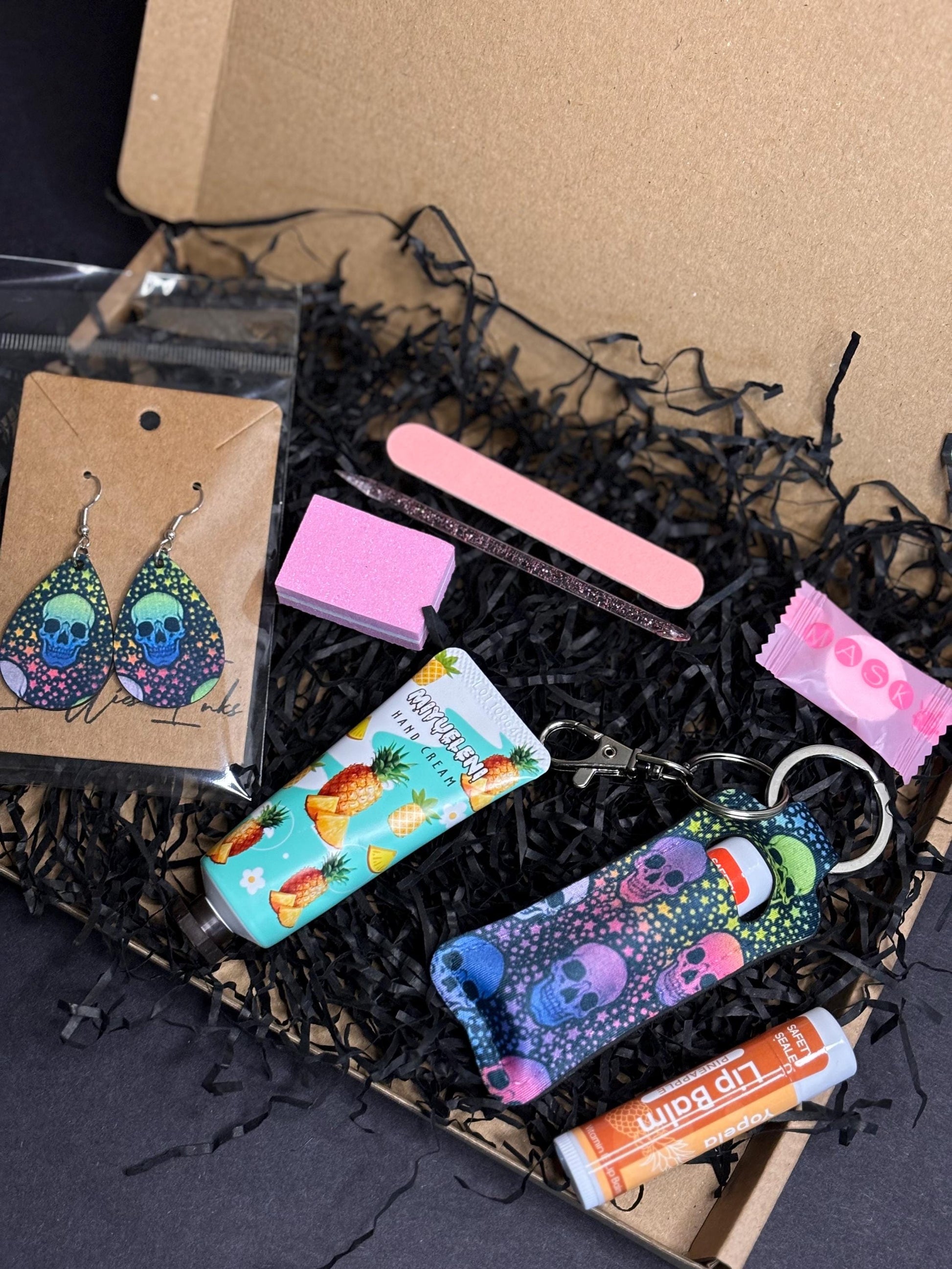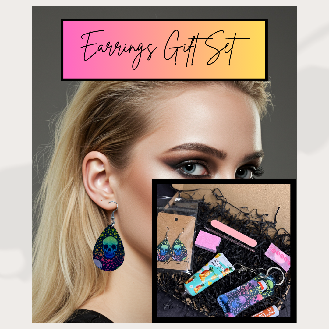 Raving Skulls Handbag Essentials Gift Set – Oval Earrings, Lipstick Holder, Nail and Skincare Treats