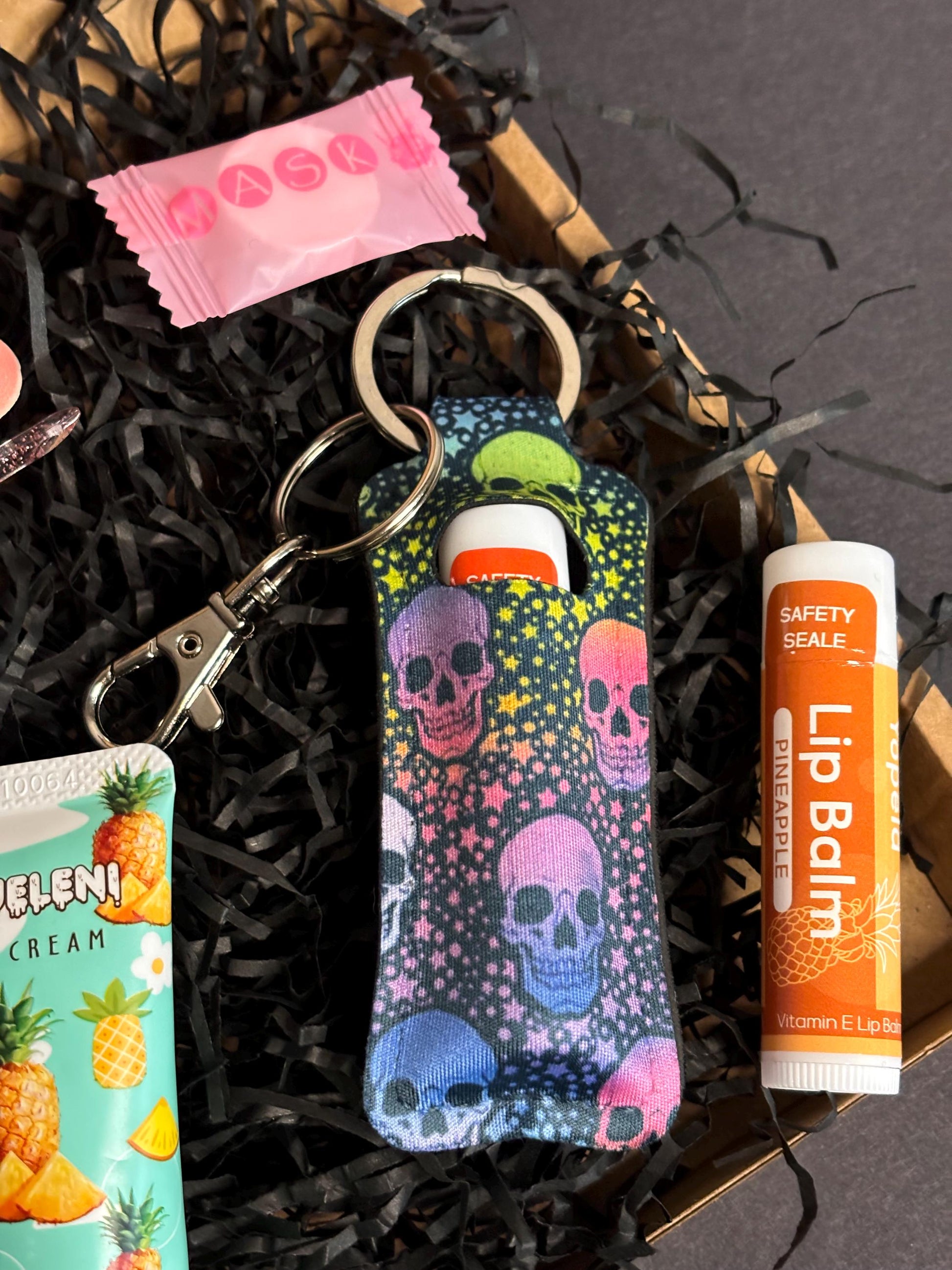 Looking for a gift that’s as functional as it is fun? This Handbag Essentials Gift Set with a quirky raving skulls print is the perfect blend of style and self-care. Inside, you’ll find everything you need for on-the-go beauty: