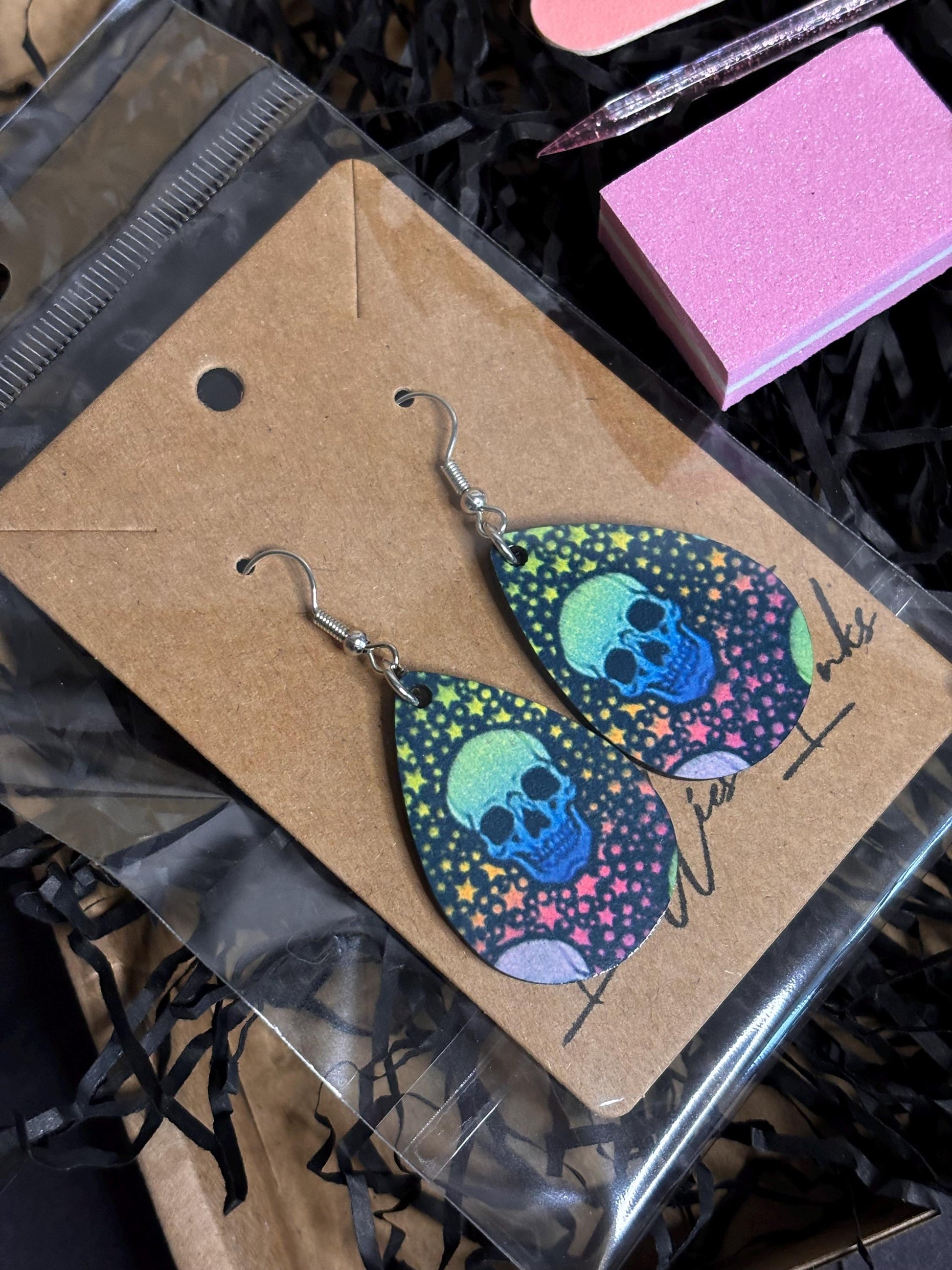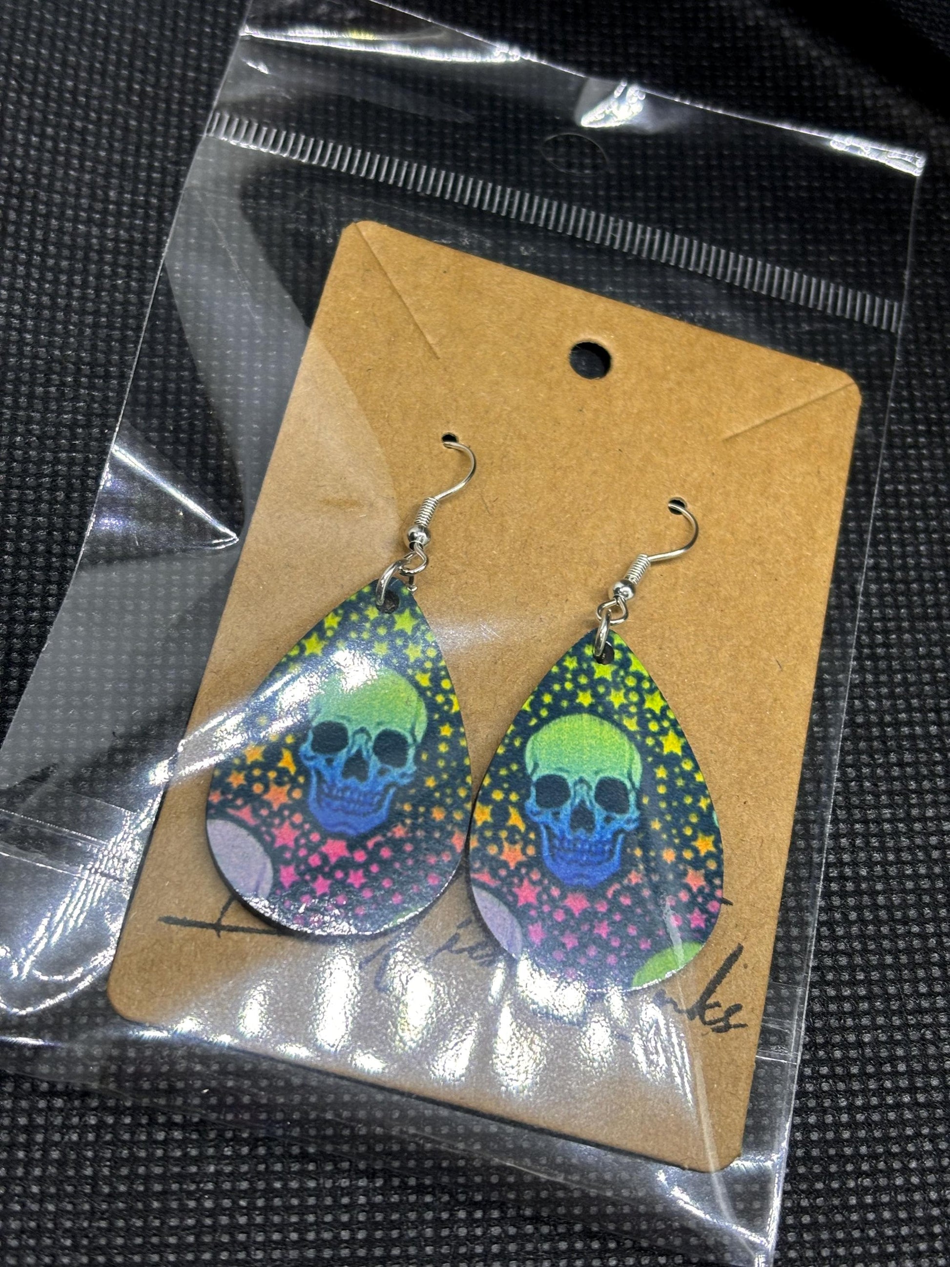 🍄 Raving Skulls Oval Earrings – Add a pop of colour and whimsy to your look with these vibrant, one-of-a-kind earrings featuring a cool skull design.