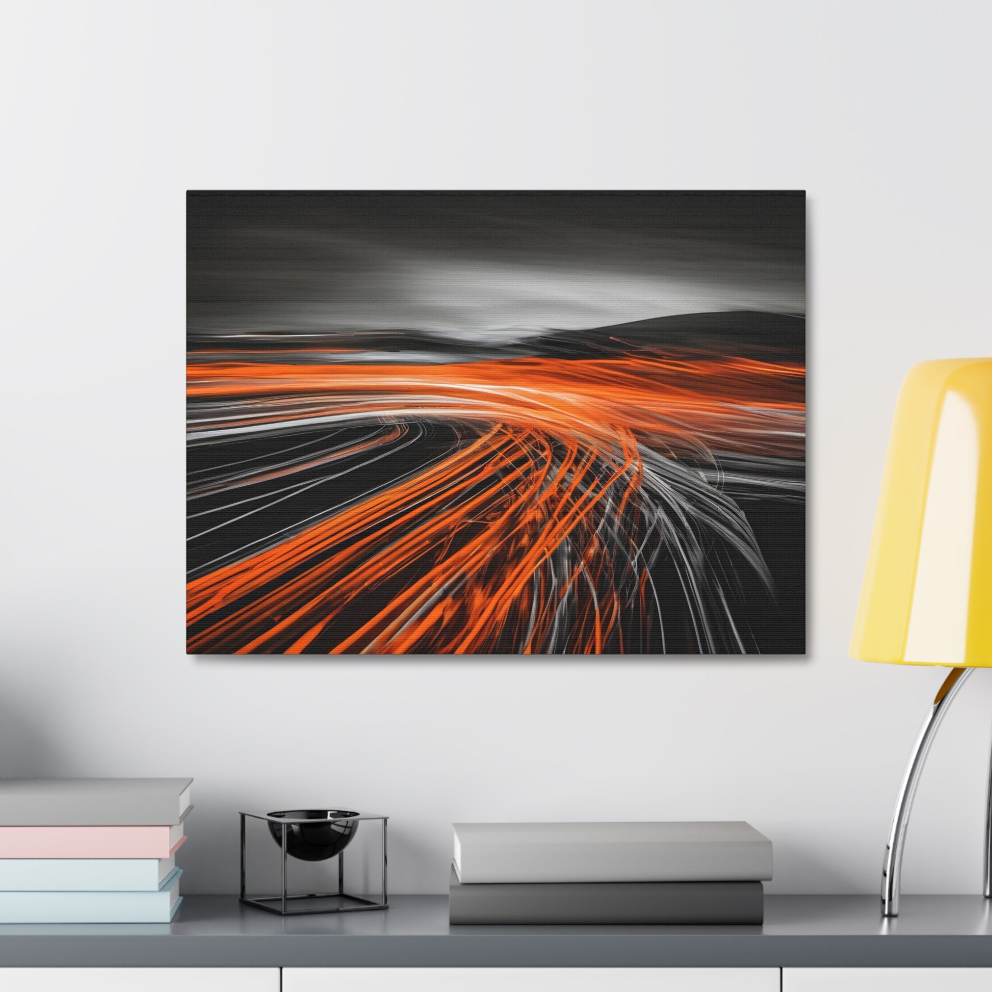 Immerse yourself in the mesmerising beauty of our long exposure orange and black canvas print, a captivating piece that exudes elegance and intrigue. This stunning artwork captures the essence of motion and stillness, blending rich shades of purple and black in a dynamic long exposure composition.