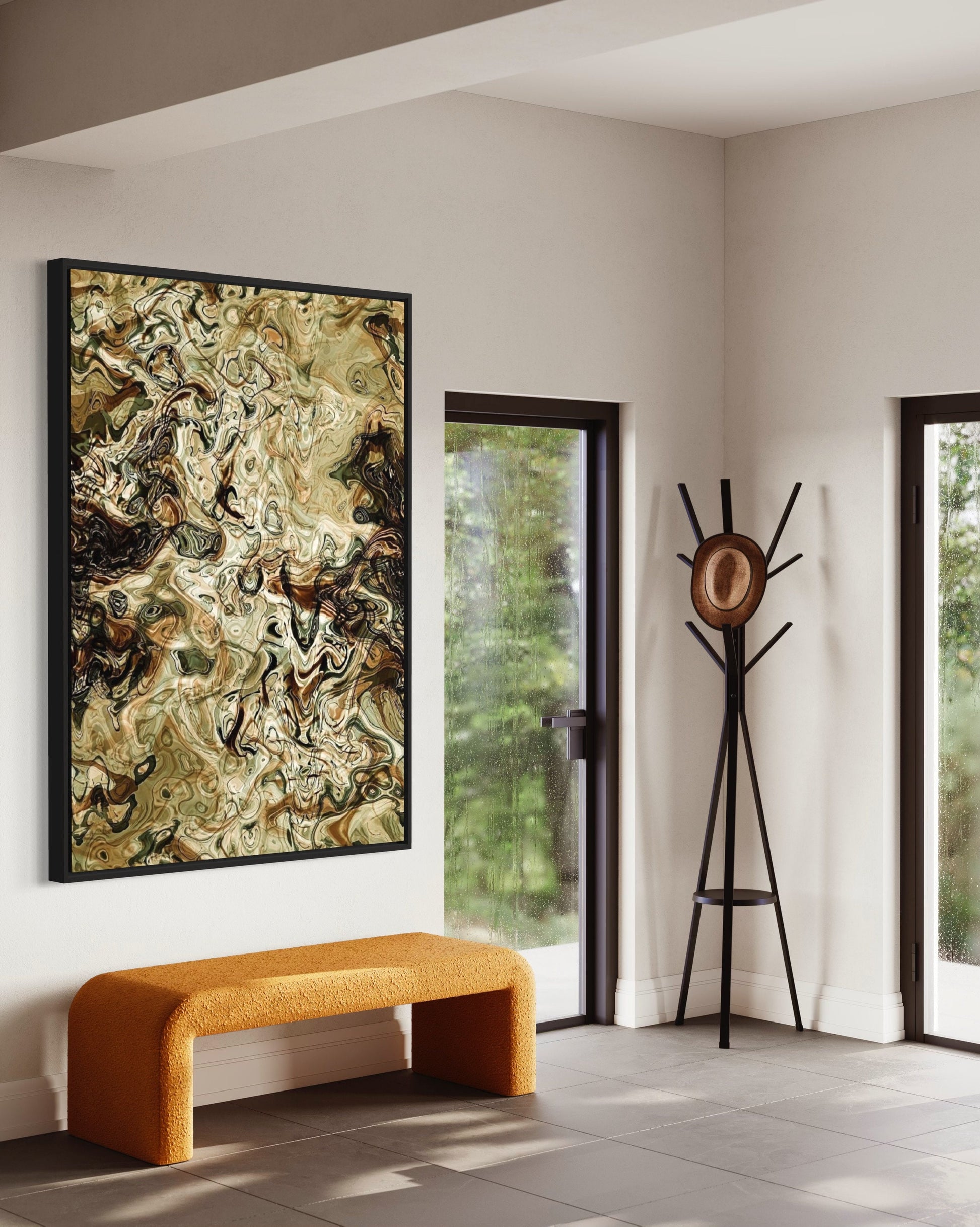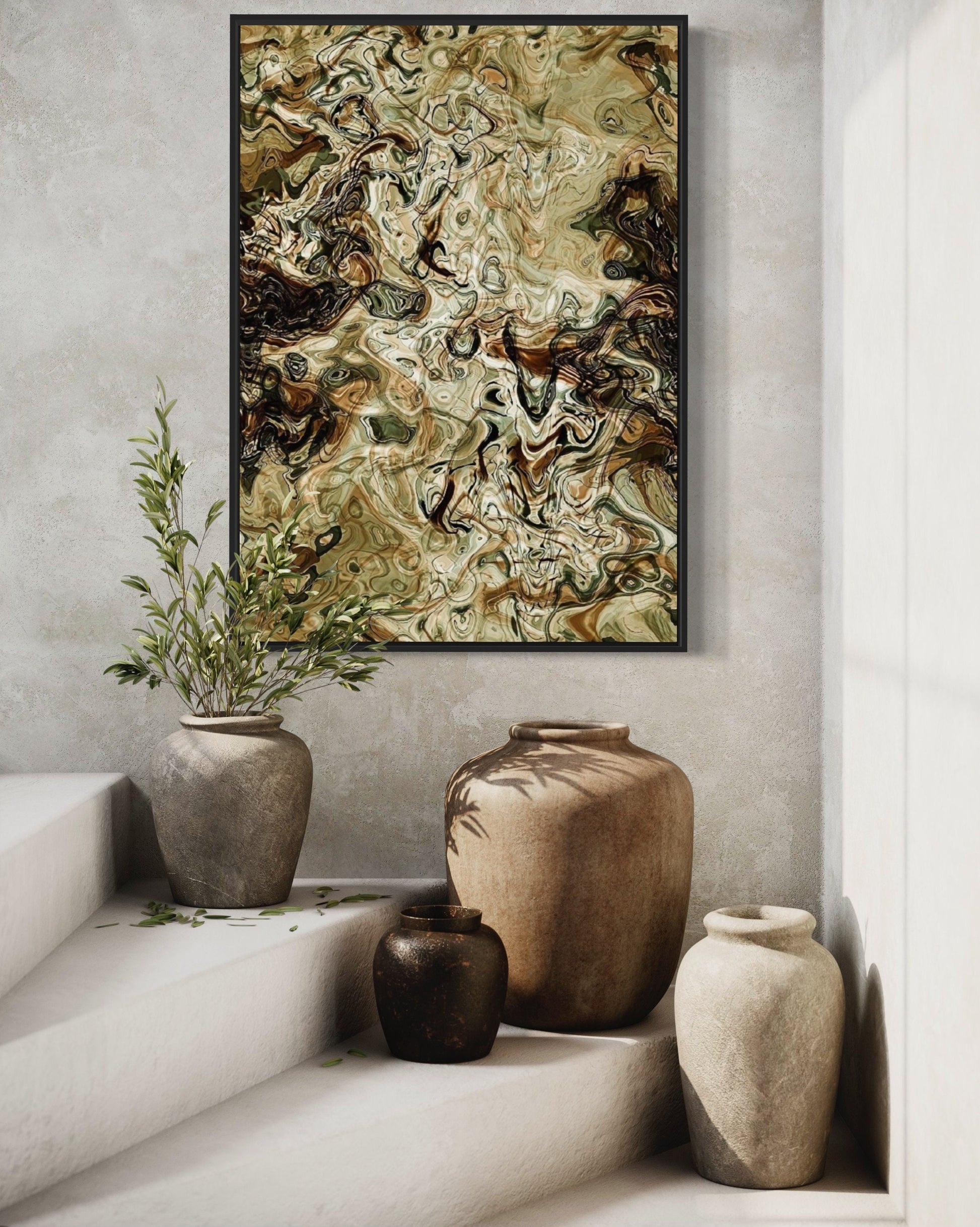 Introducing our exquisite marble style abstract print, a captivating piece of art that seamlessly blends elegance and intrigue. This stunning print features a mesmerising composition inspired by the natural beauty of marble, showcasing a harmonious interplay of blacks, browns, and greys.