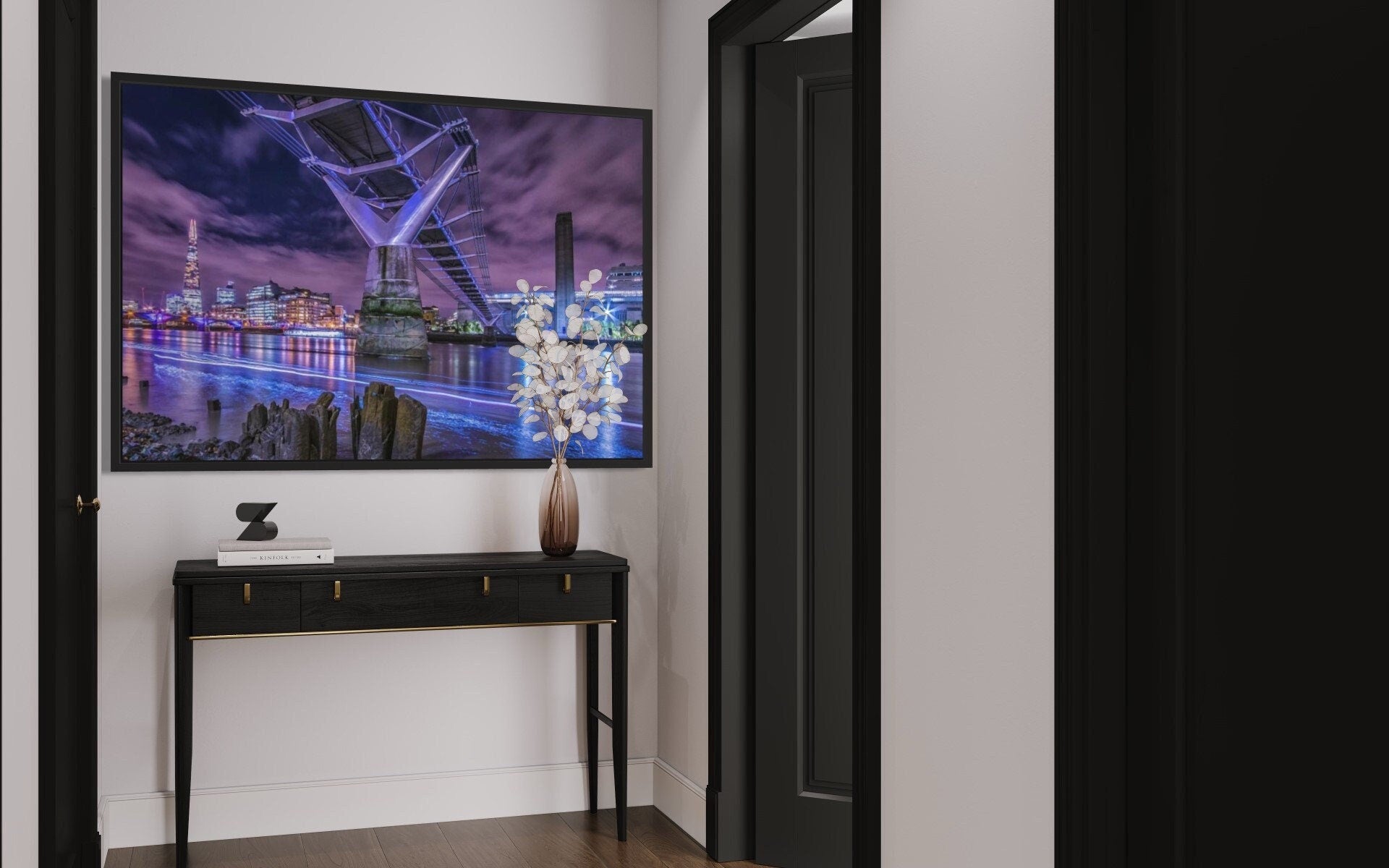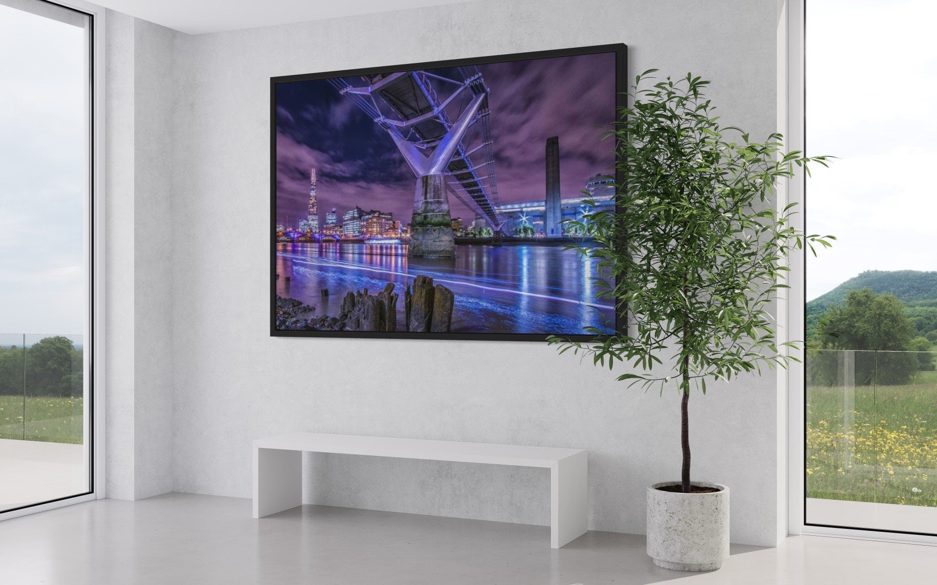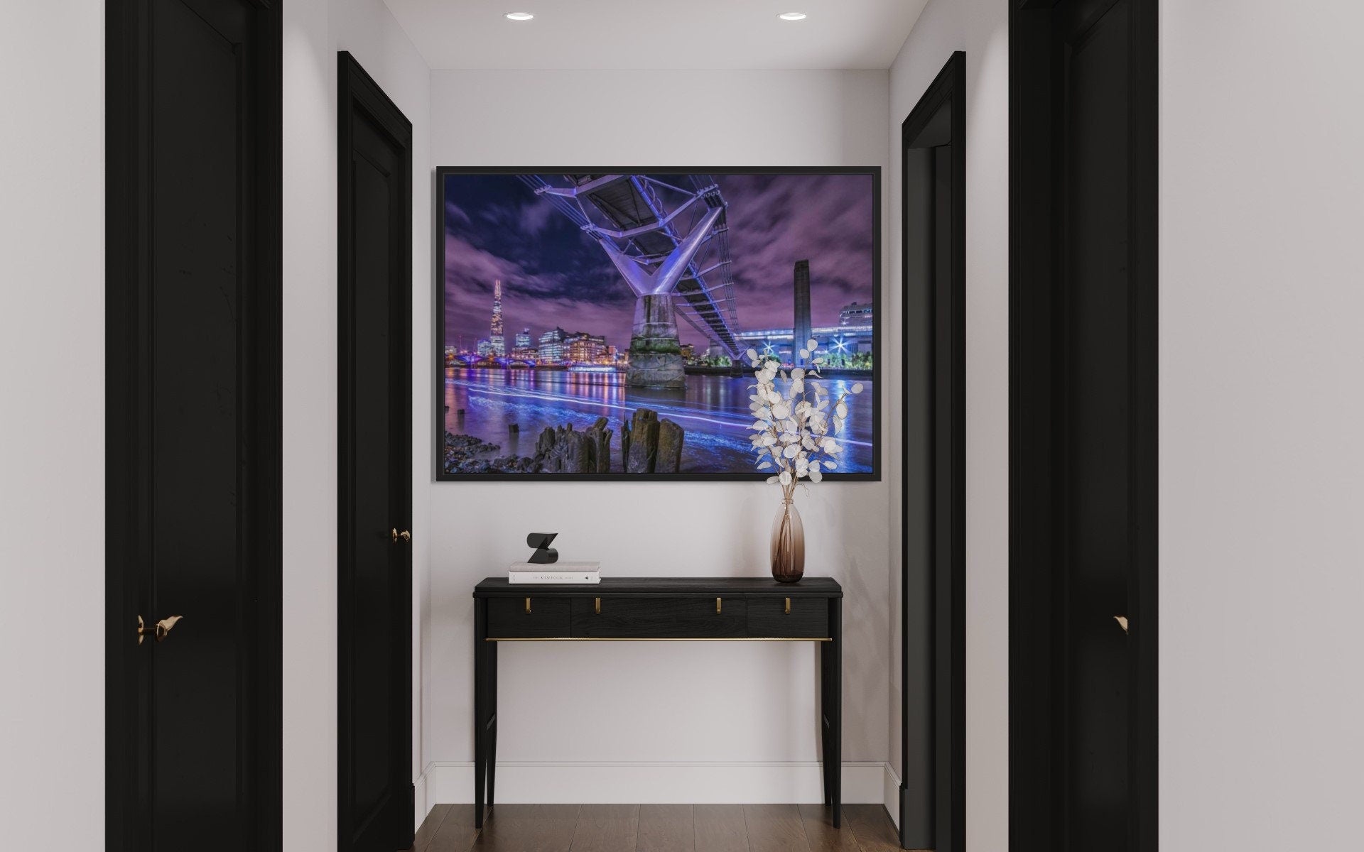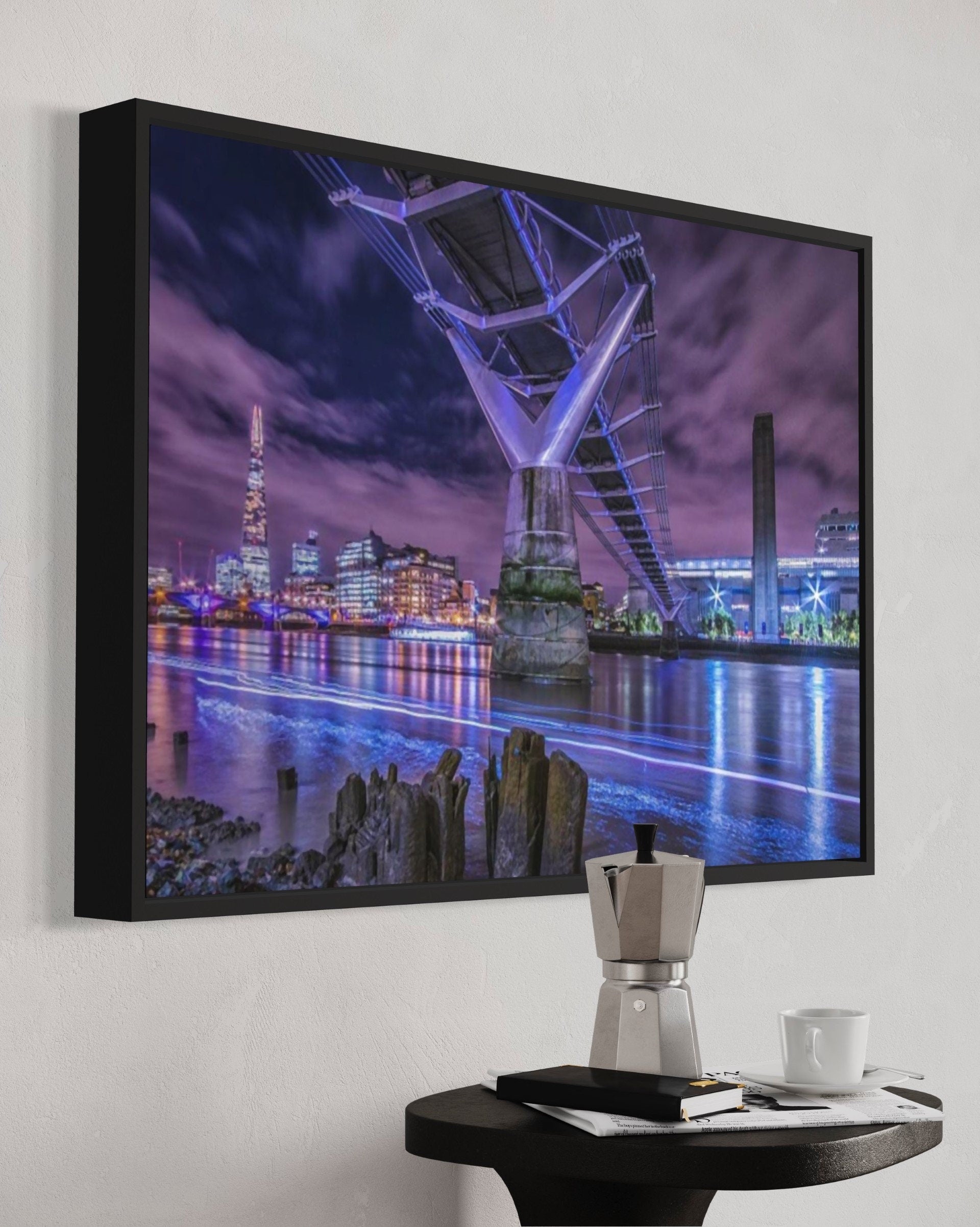 Experience the breath taking beauty of the Millennium Bridge at night with our stunning print. This mesmerising piece, transports you to the enchanting night time scene of one of London's most iconic bridges.
