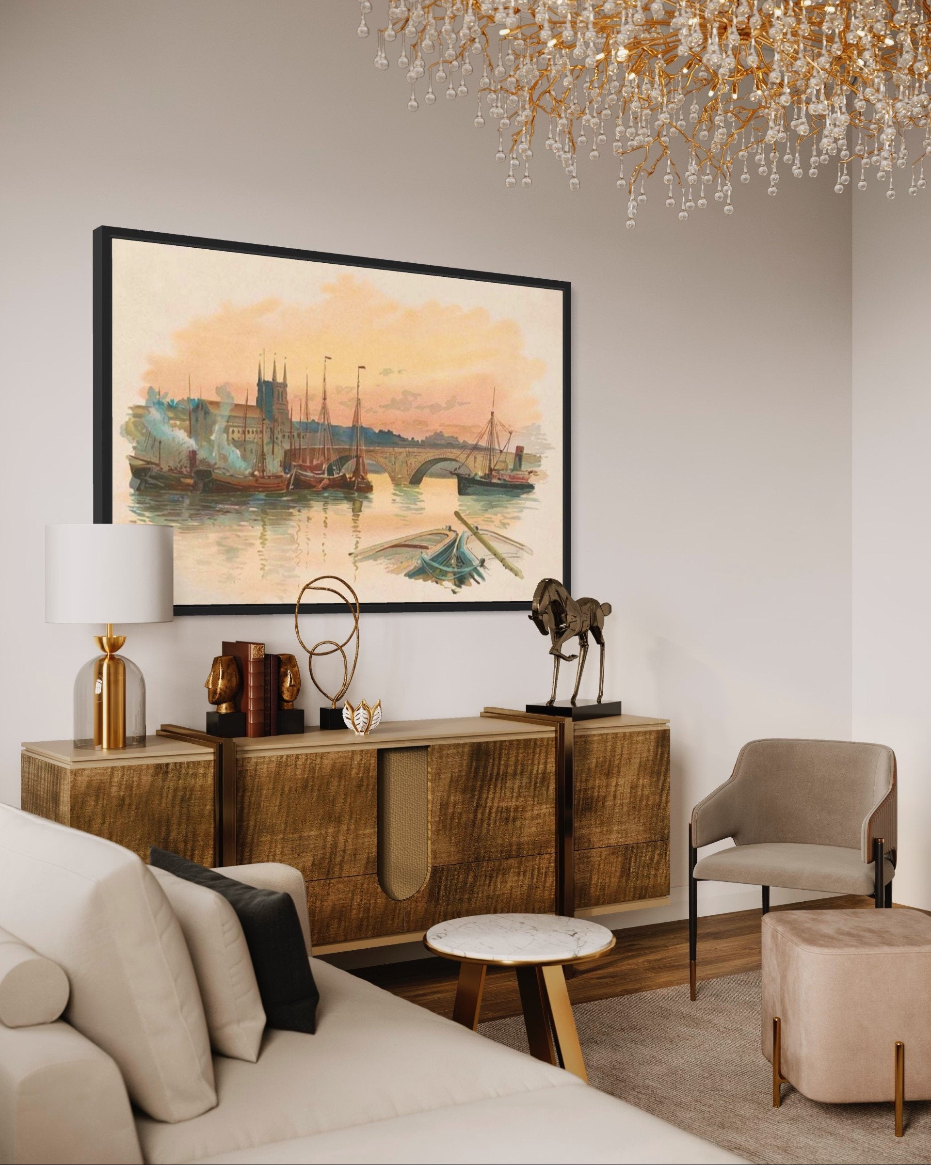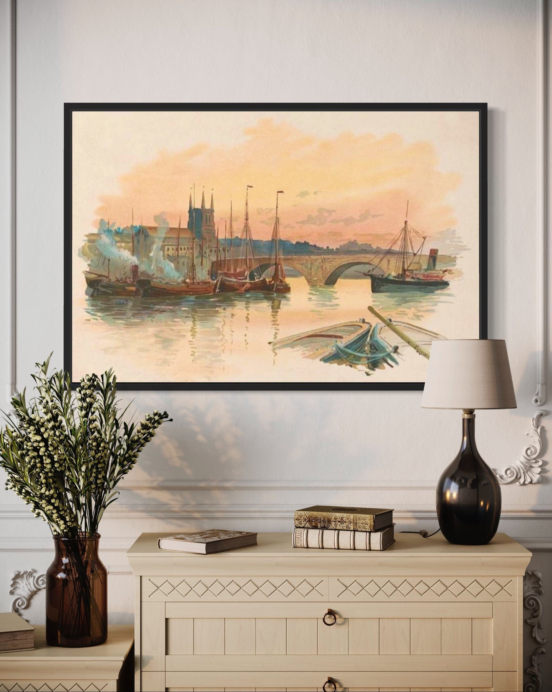 Transport yourself back to the early days of London with our exquisite vintage artwork depicting the iconic London Bridge. With its timeless charm and neutral colour palette, this piece captures the essence of a bygone era while effortlessly complementing any interior decor.