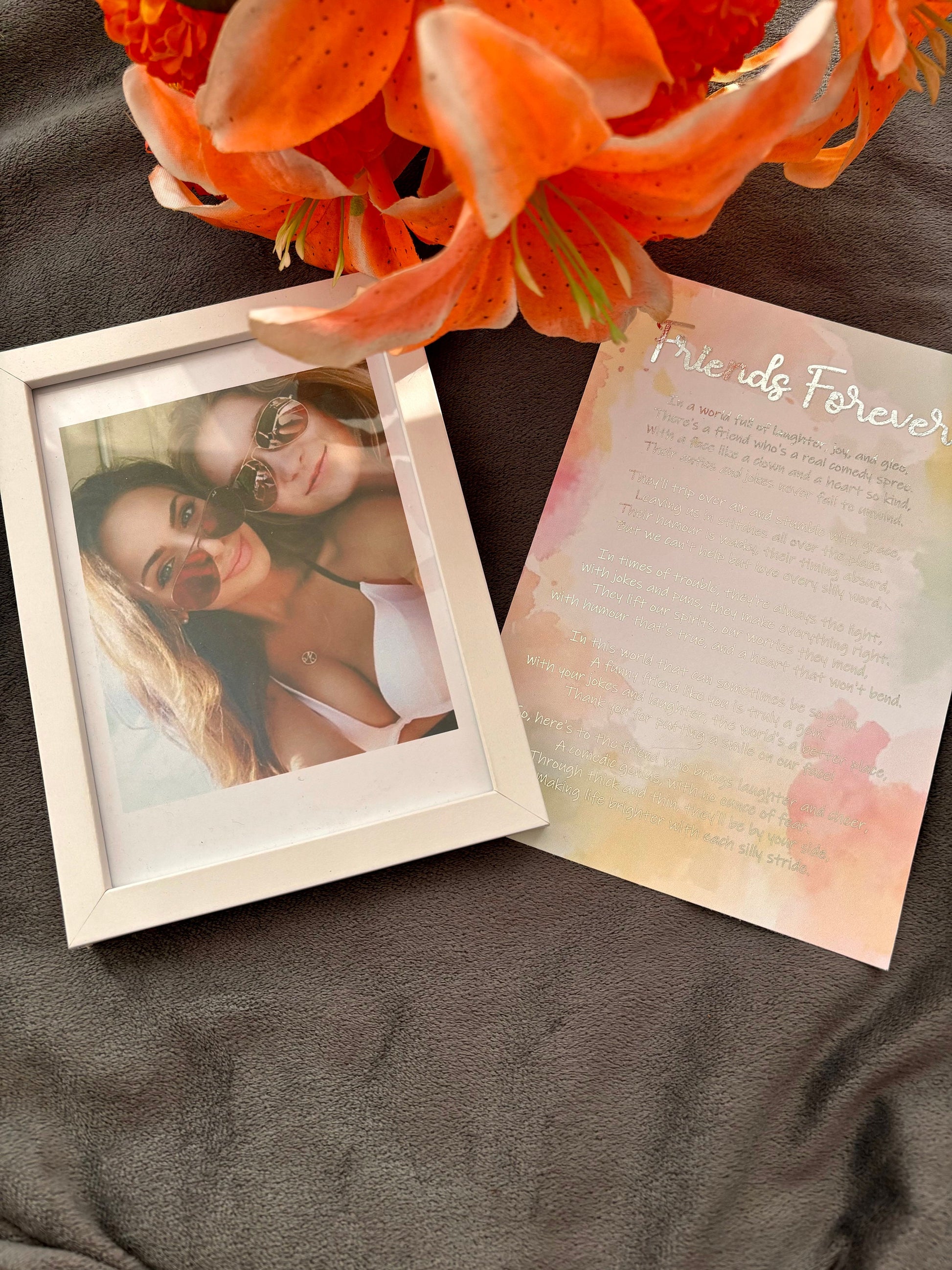 Capture your favourite moments together with a personalised 5x7 framed picture. Choose a cherished image that encapsulates the essence of your friendship, and let it serve as a heartwarming reminder of the countless memories you've shared.