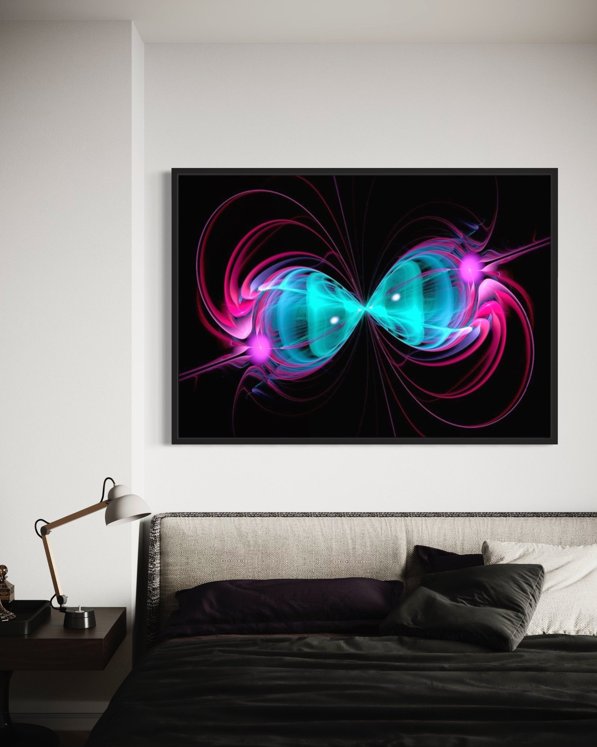Whether displayed in a living room, bedroom, office, or even a creative studio, this print becomes an instant focal point that adds a sense of intrigue and visual interest to any space. Its symmetrical nature brings a sense of balance and harmony, creating a soothing and visually pleasing atmosphere.