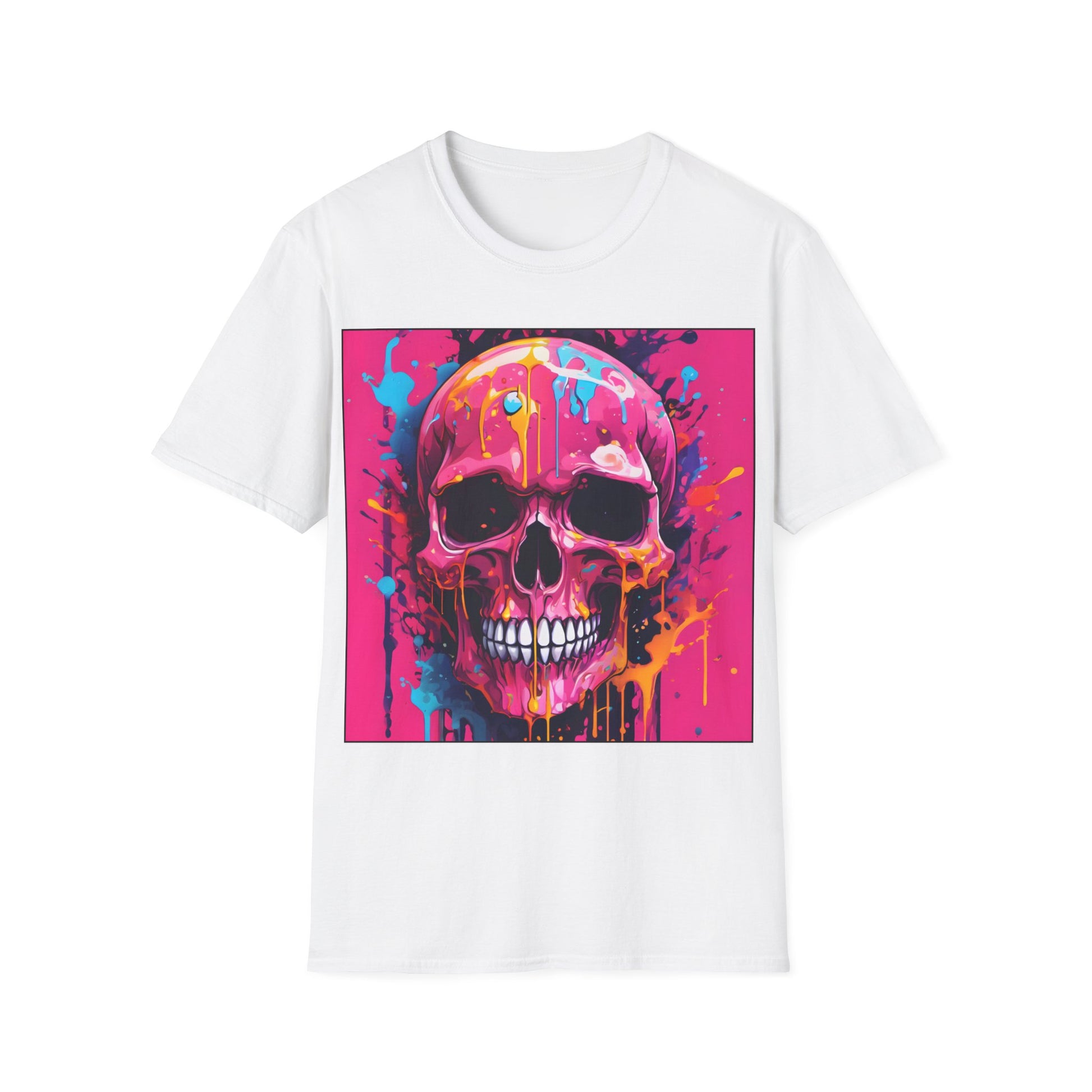 Presenting our pink dripping skull design t-shirt: a perfect fusion of urban flair and unparalleled comfort.
