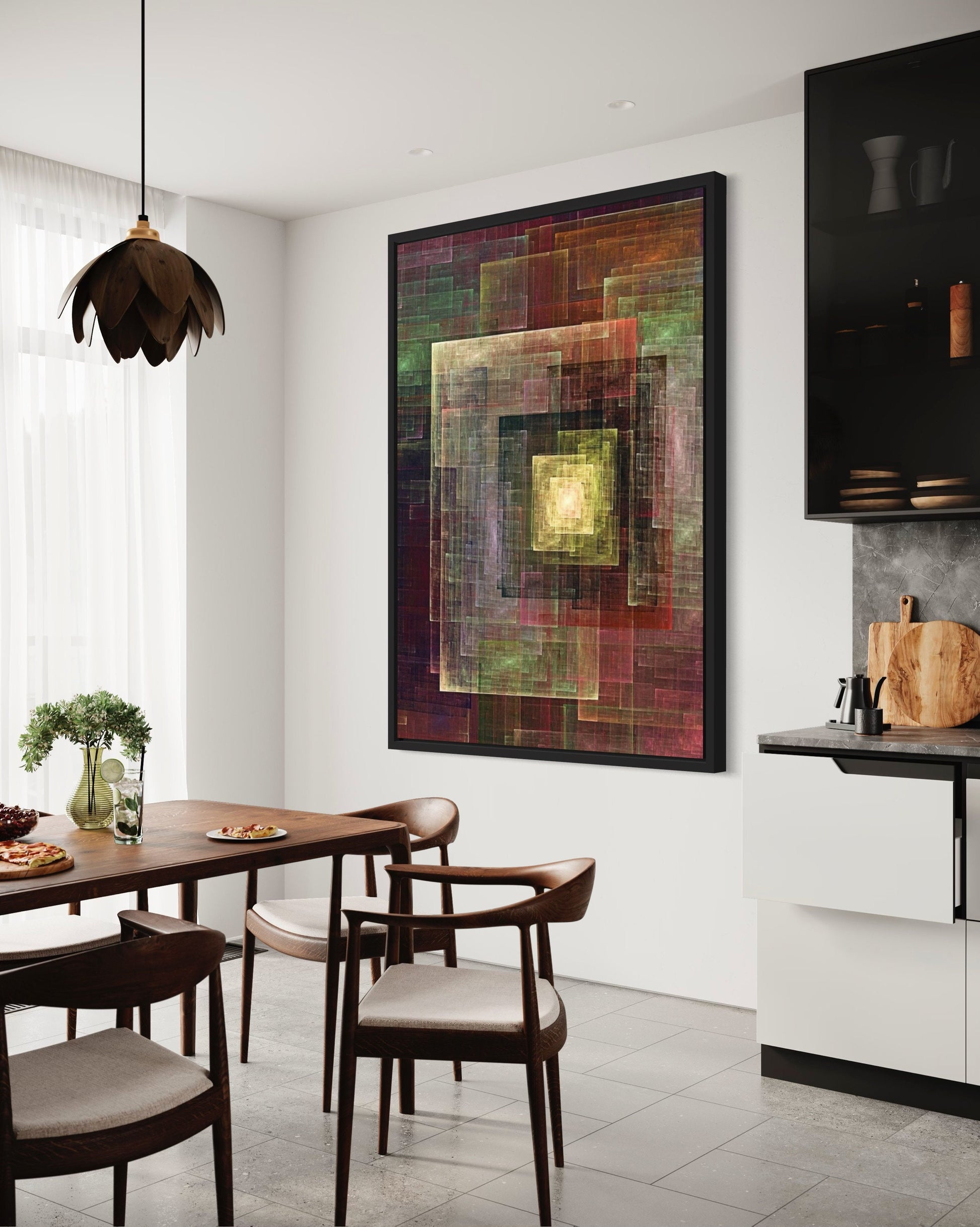 Frame it to enhance its sophistication and make it the centrepiece of your decor. The colours complement a variety of interior styles, including modern, contemporary, or even eclectic aesthetics. Alternatively, choose to hang it unframed for a more minimalist and contemporary look, allowing the artwork to speak for itself.