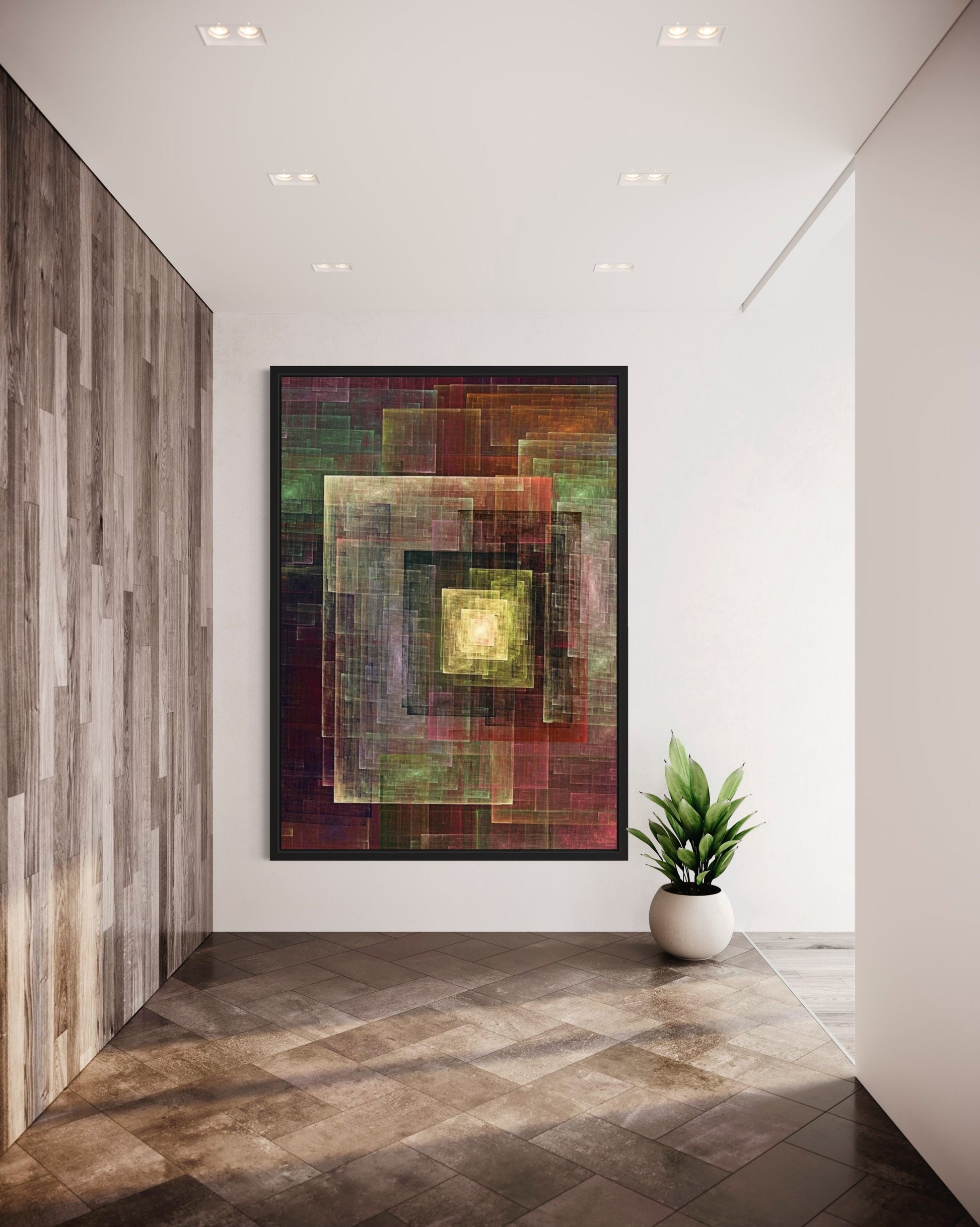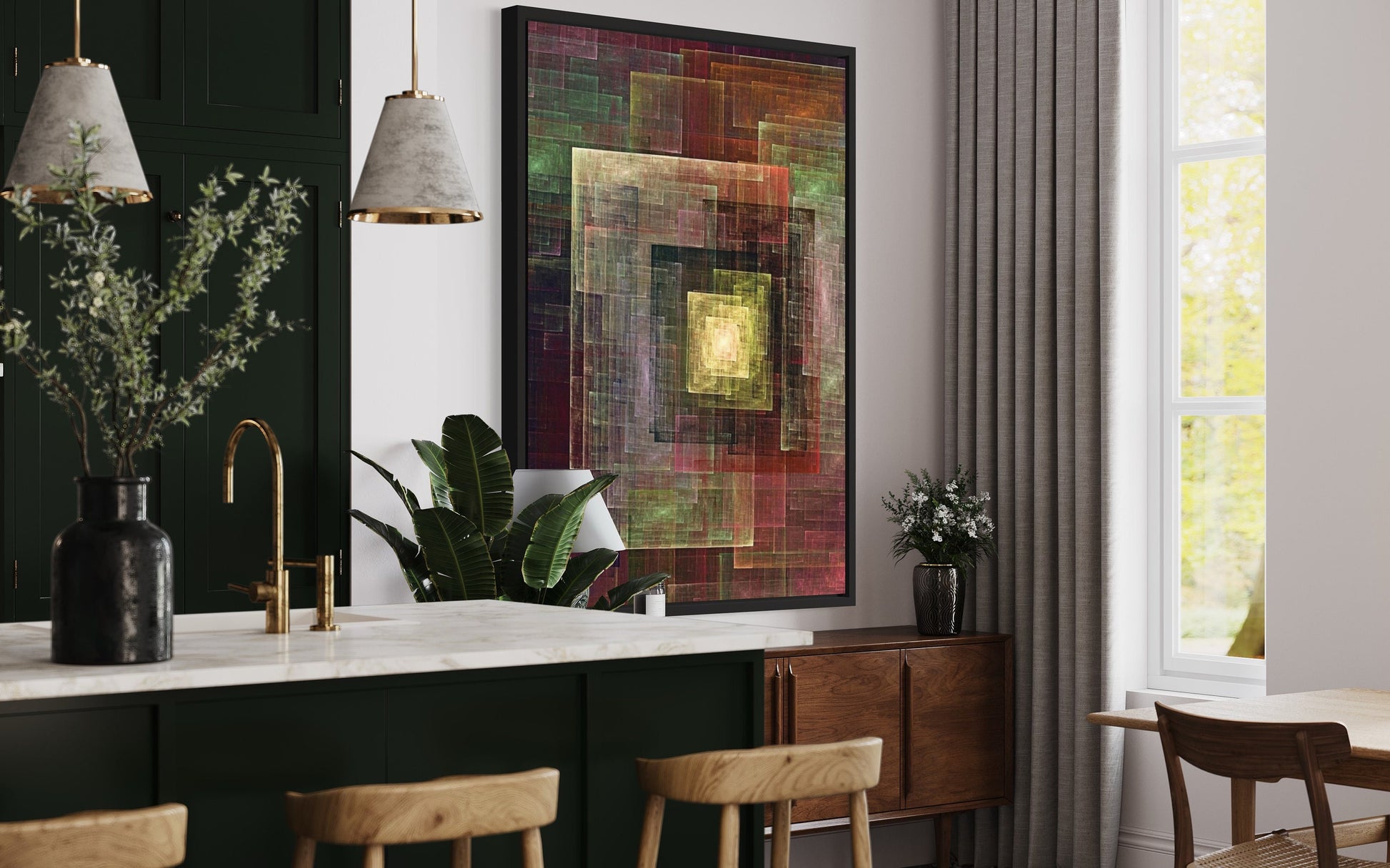 Frame it to enhance its sophistication and make it the centrepiece of your decor. The colours complement a variety of interior styles, including modern, contemporary, or even eclectic aesthetics. Alternatively, choose to hang it unframed for a more minimalist and contemporary look, allowing the artwork to speak for itself.