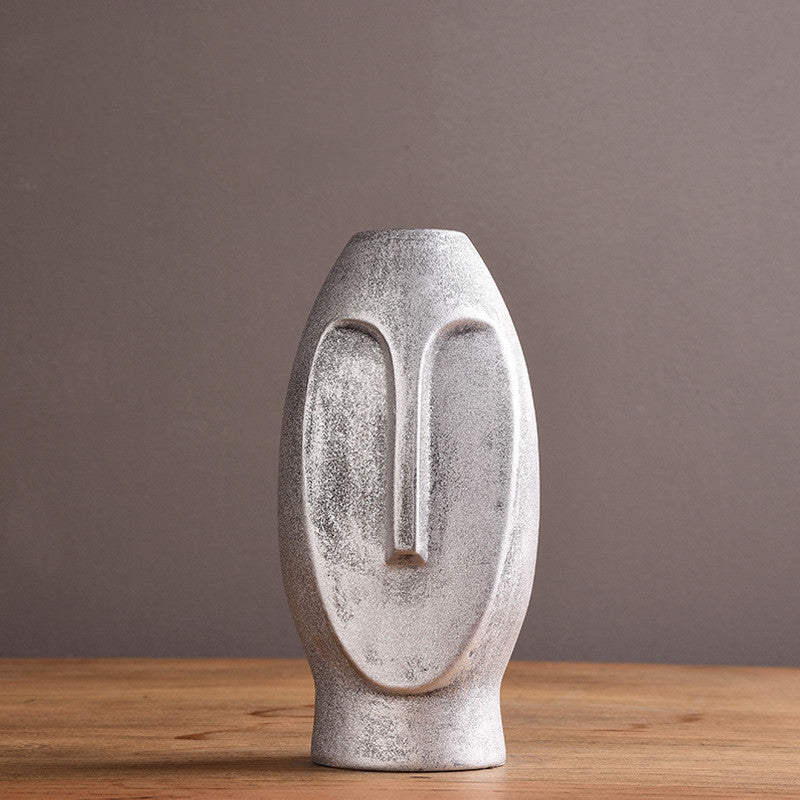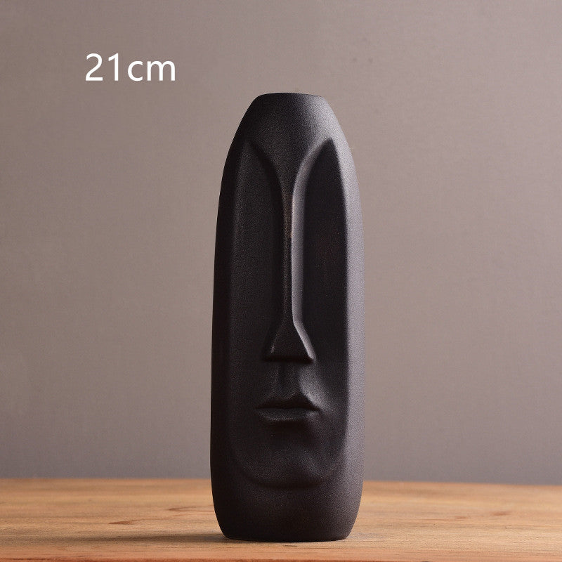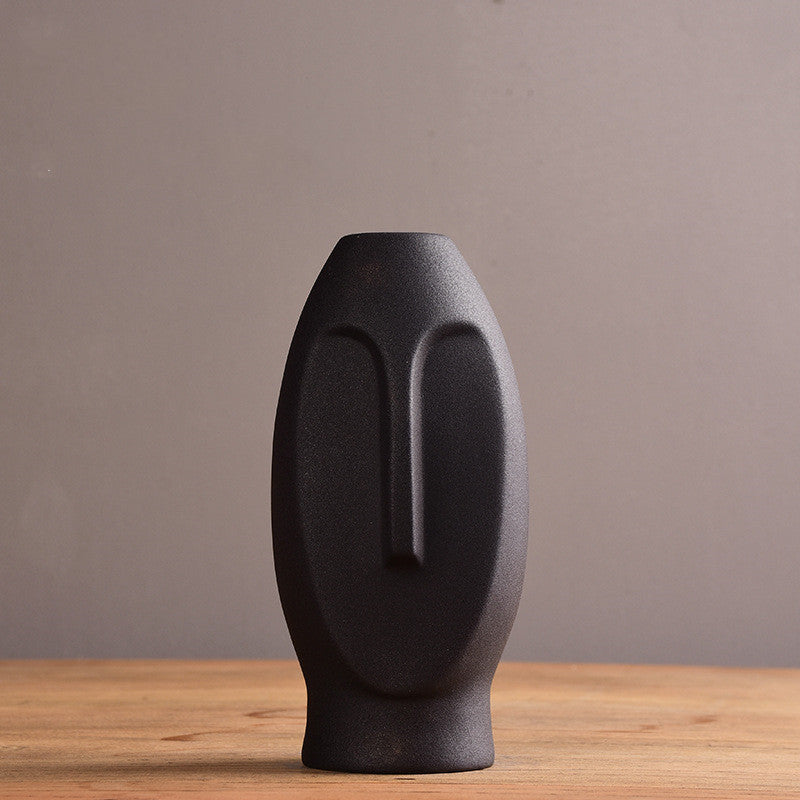 Modern minimalist ceramic vase creative black and white face sample room living room decoration handicraft ornaments flower arrangement