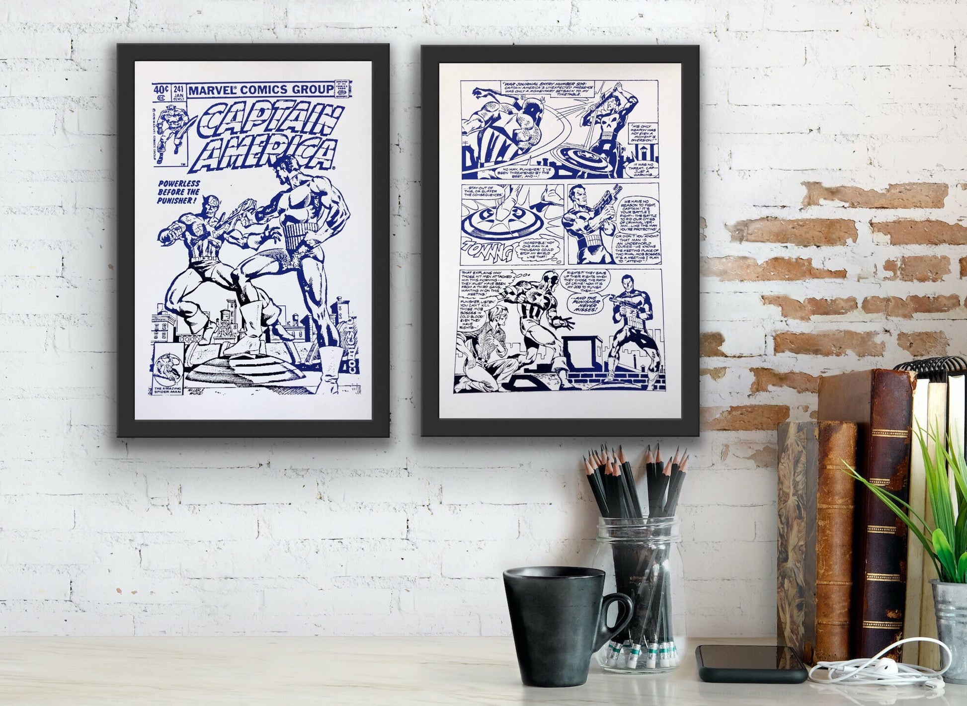 Set of 2 Captain America Comic Cover & Comic Strip Foil Prints