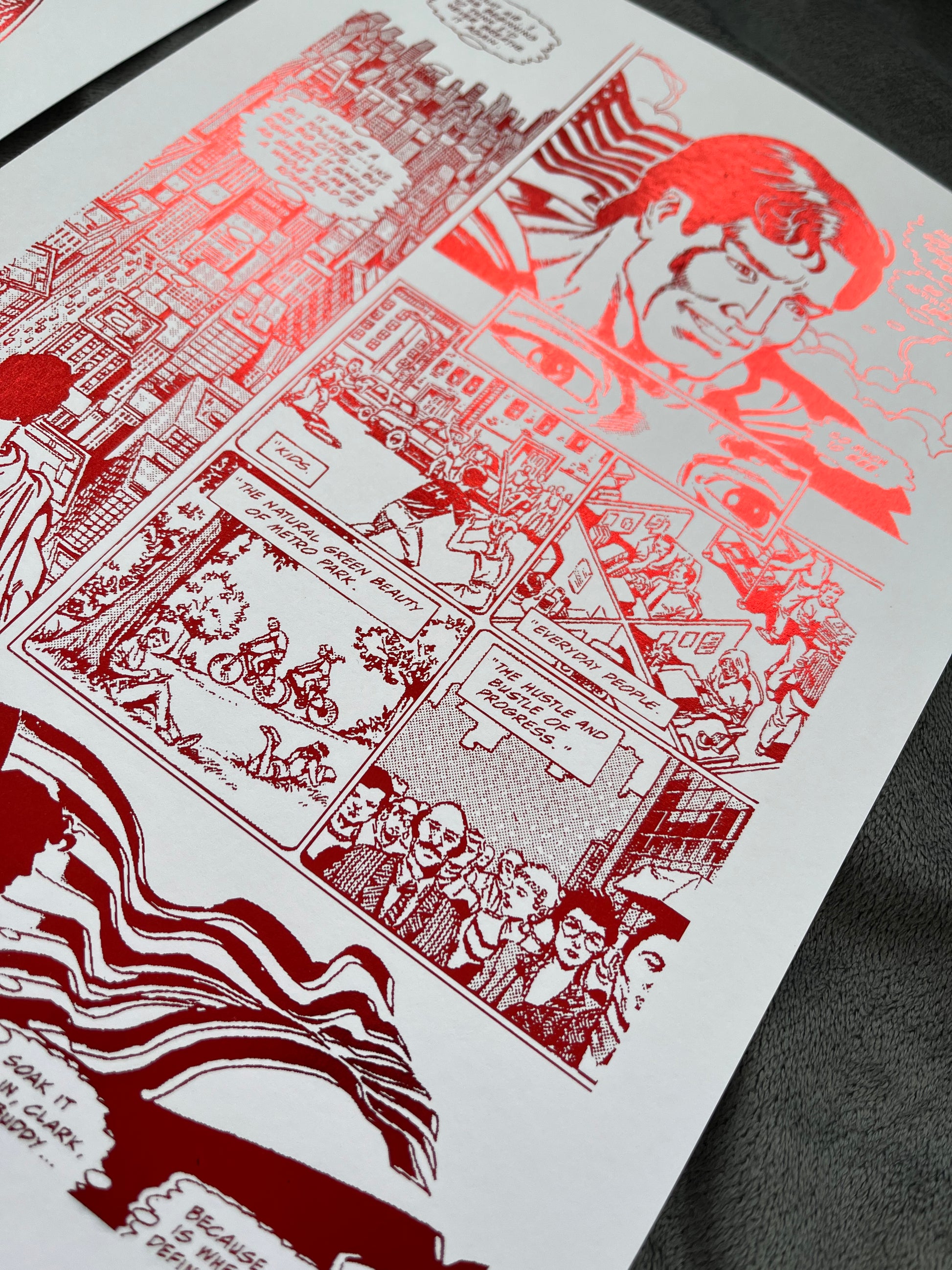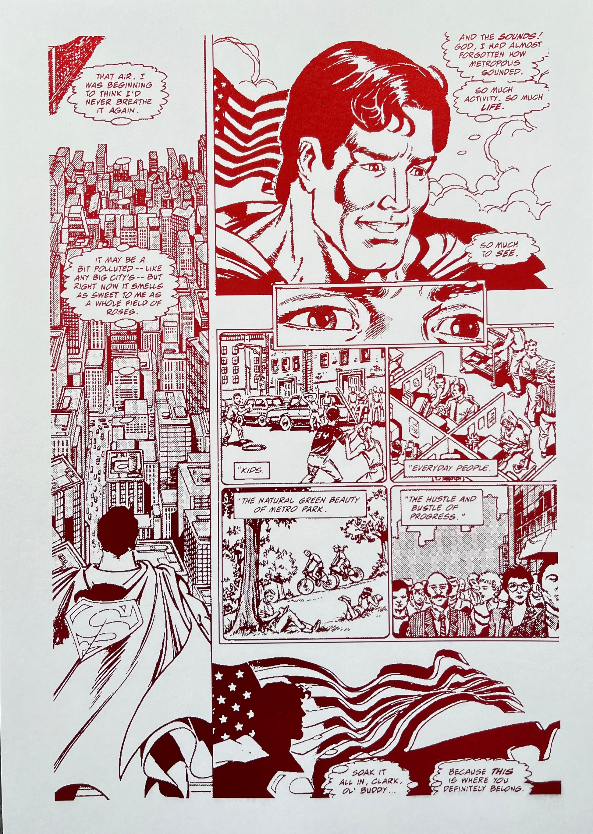 A dynamic set of two prints that pay homage to the legendary man of steel himself. This exclusive collection features a powerful Superman comic cover and an action-packed comic strip, both beautifully adorned with red foil accents.
