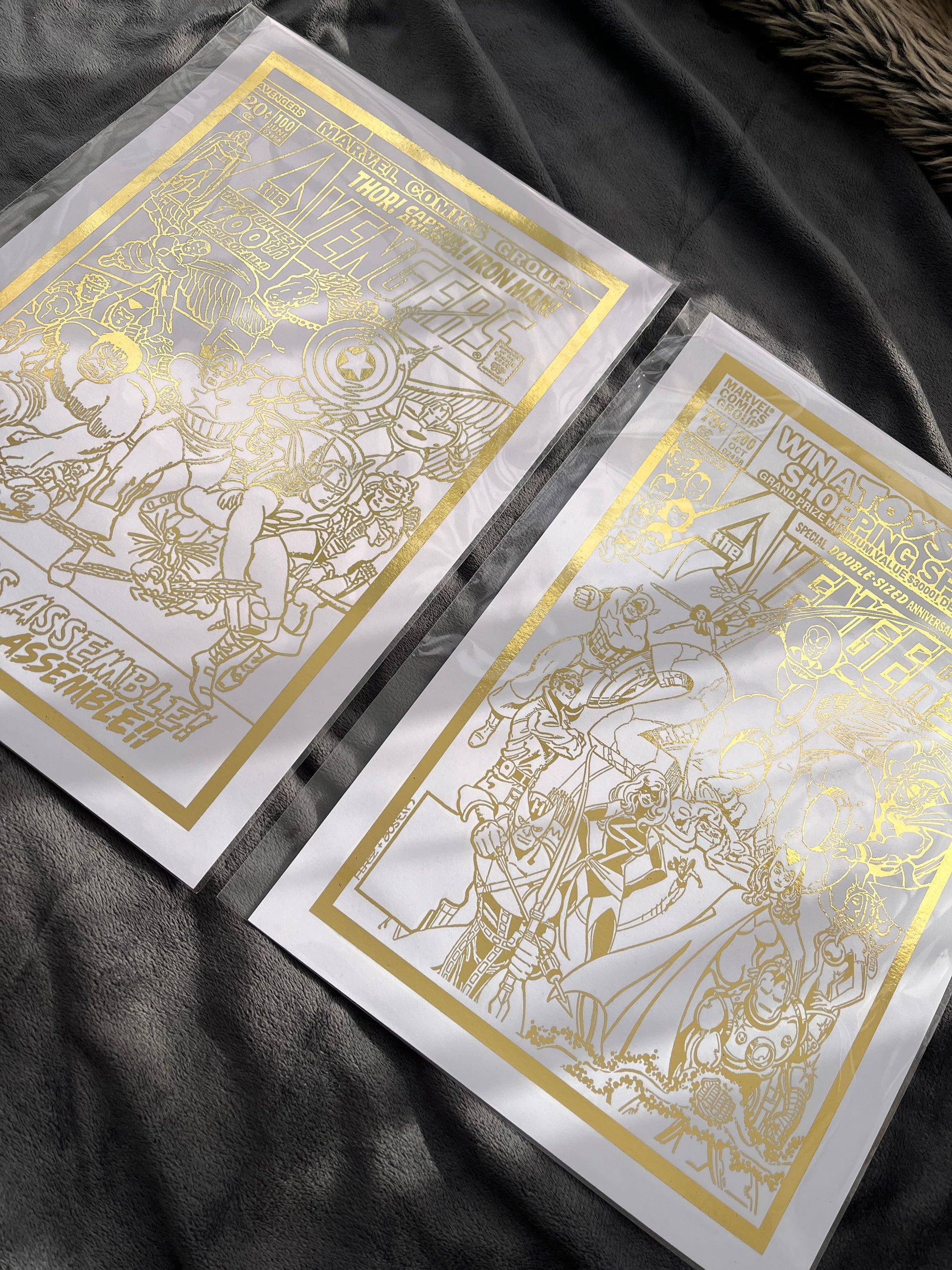 Set of 2 The Avengers Special Edition Comic Cover Foil Prints