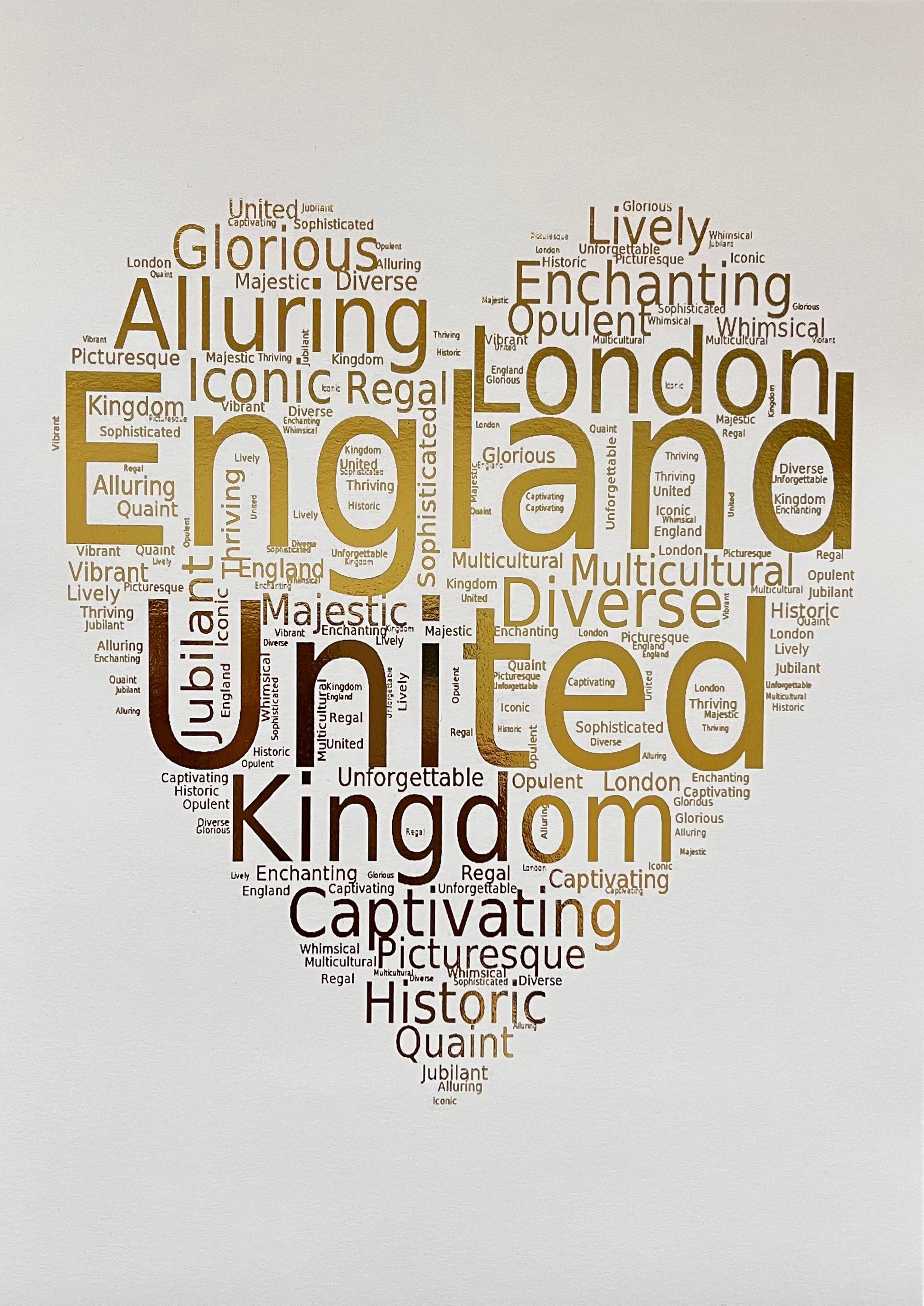 We have captured the spirit of London through a heart-shaped word cloud. This intricate design is a symphony of words and phrases that evoke the essence of this iconic city to show London's culture and history.