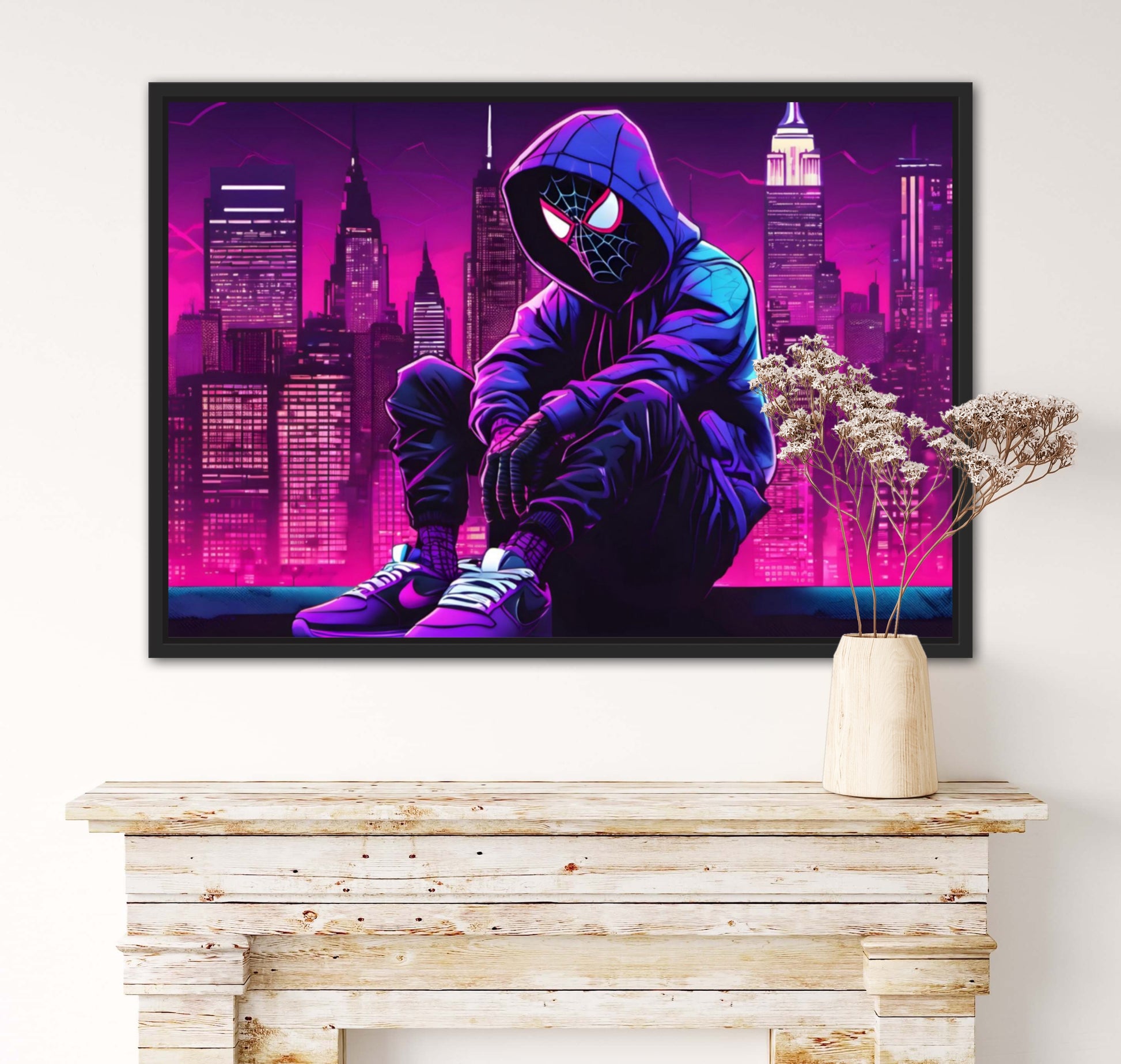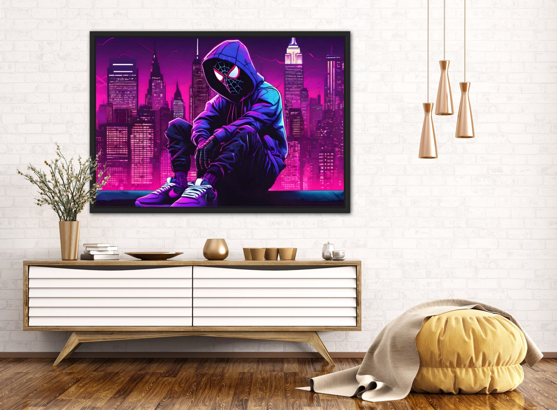 Unleash the wall-crawling, web-slinging, and crime-fighting excitement of Spider-Man! Based in the city, we have produced a 'purple hue' style print for people that want something a little different and not been made before.