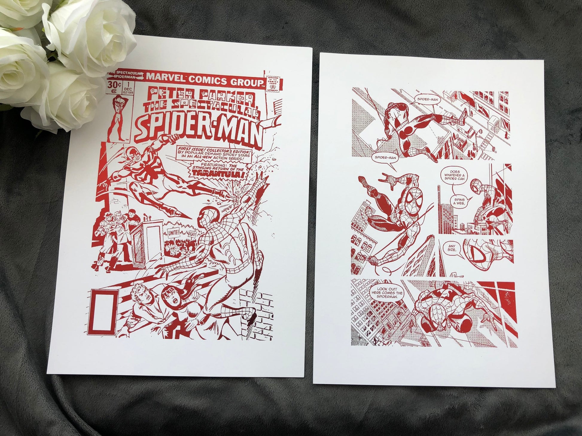Set of 2 Spider Man Comic Cover & Comic Strip Foil Prints