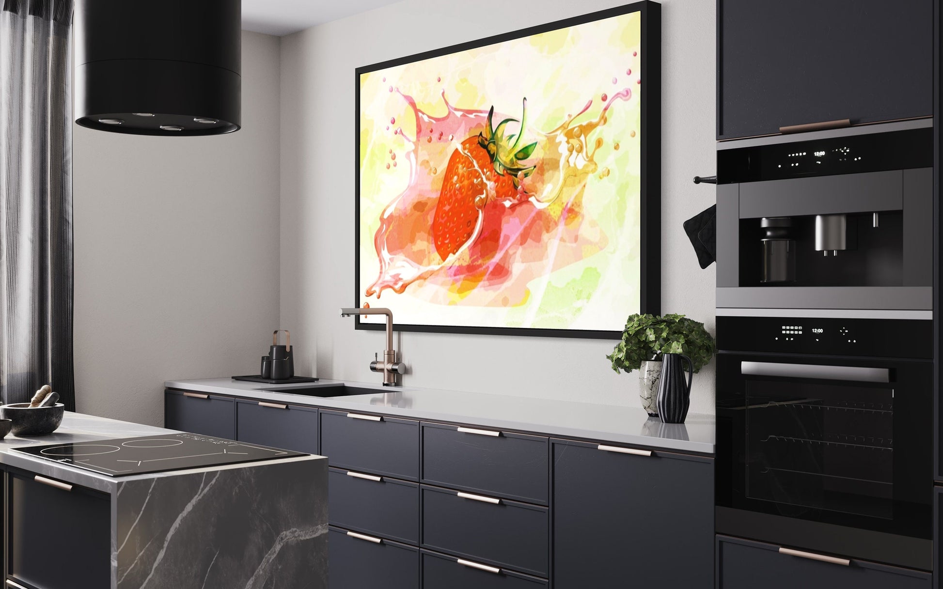 Immerse yourself in a burst of fruity freshness and vibrant colours with this captivating artwork that combines the beauty of a ripe strawberry with the dynamic energy of a playful splash.