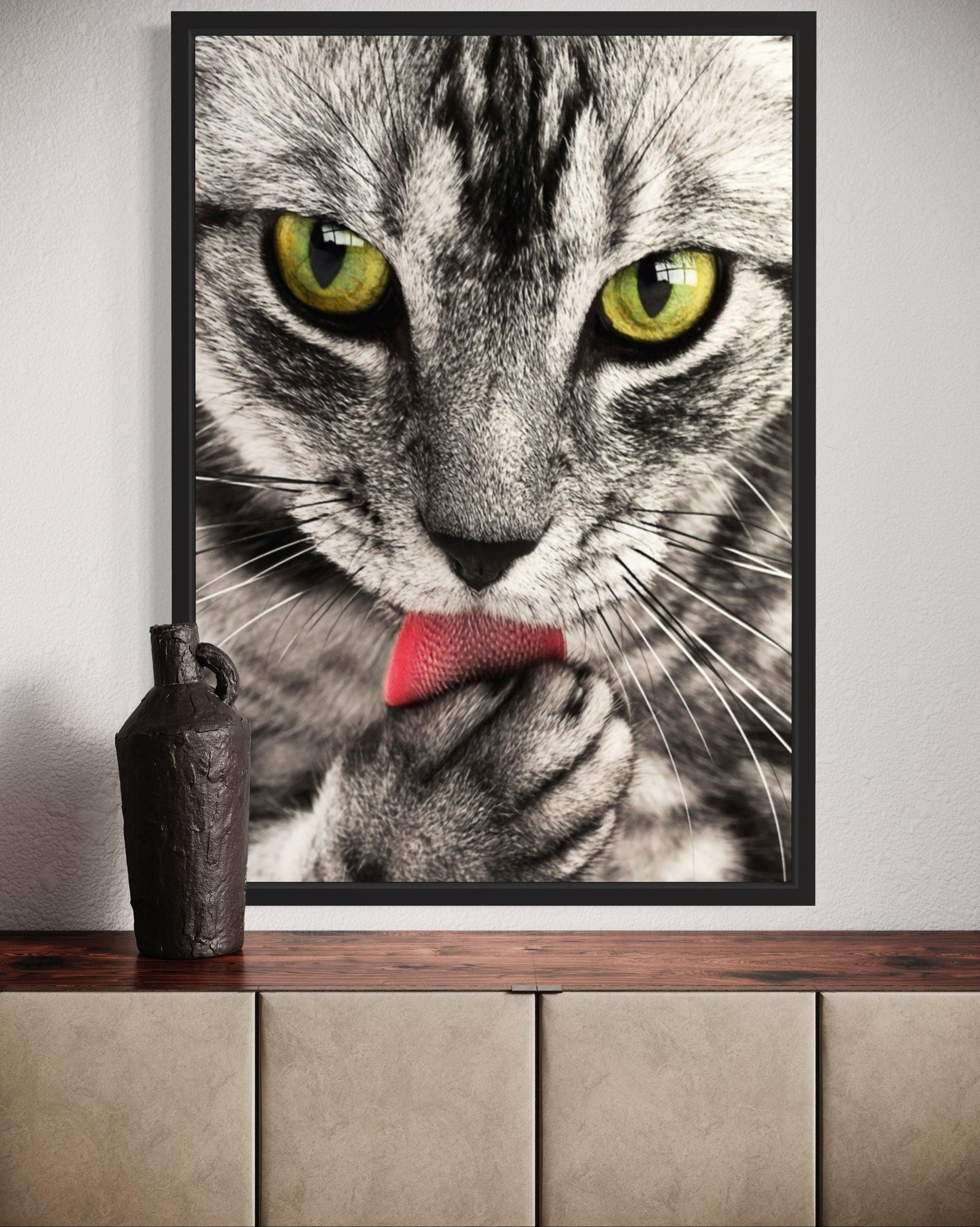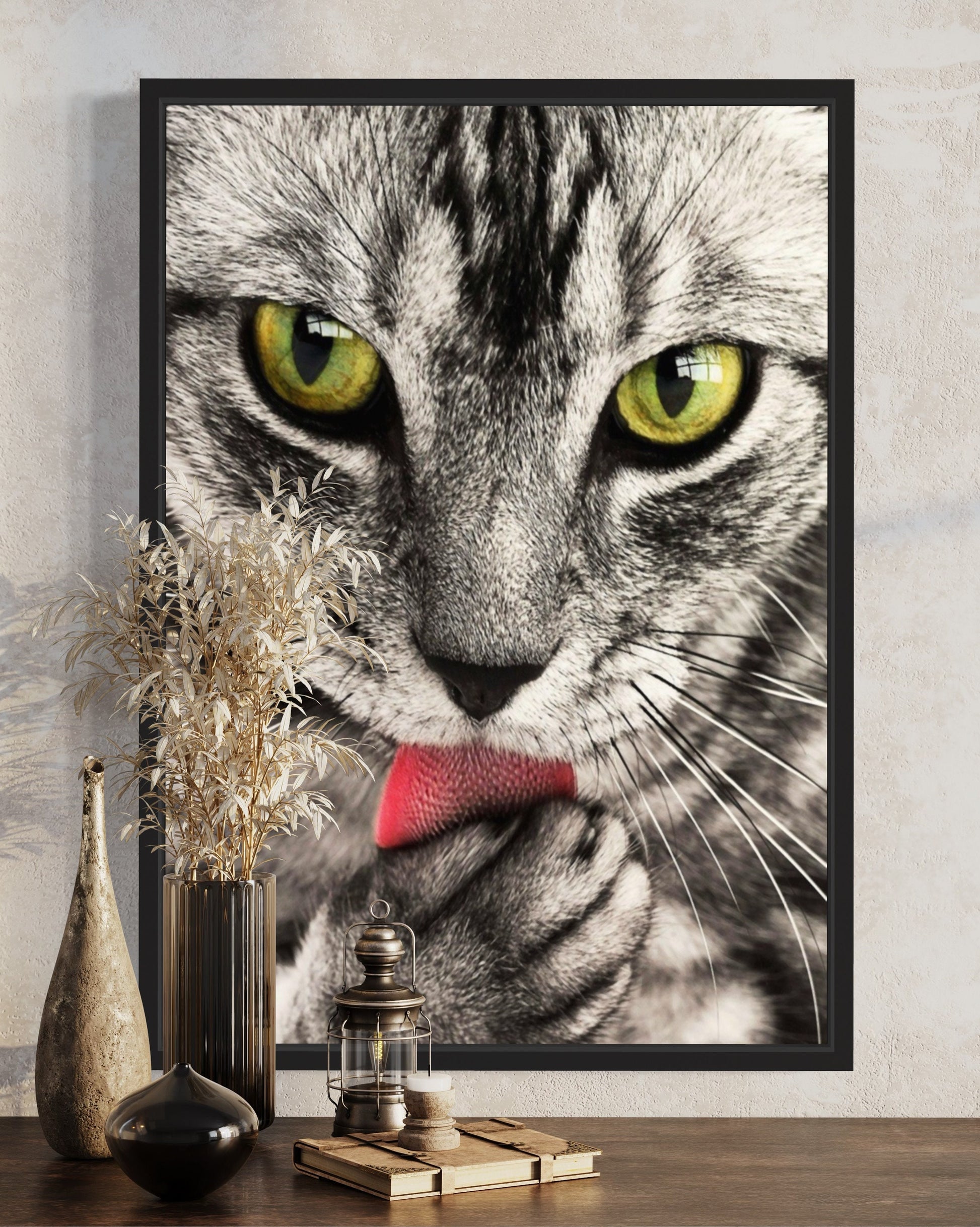 Experience the captivating world of feline grace and elegance with our tabby cat print.