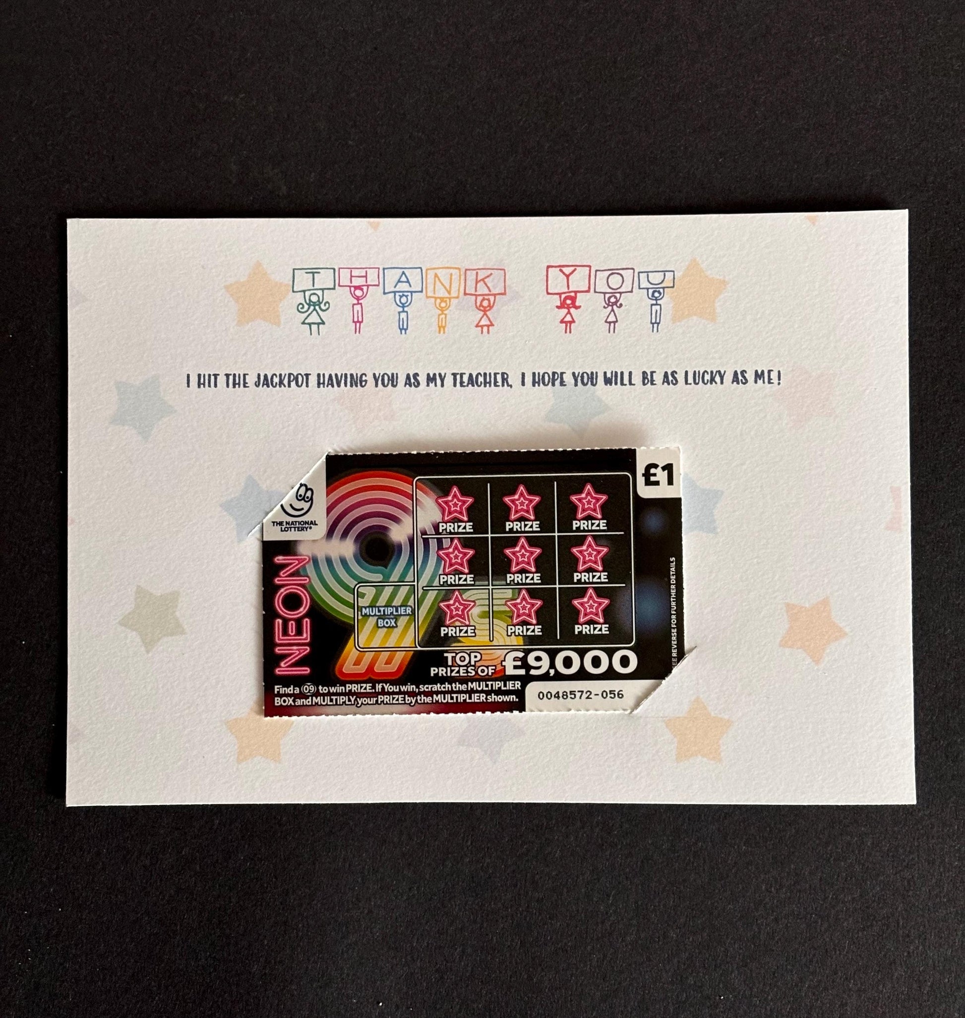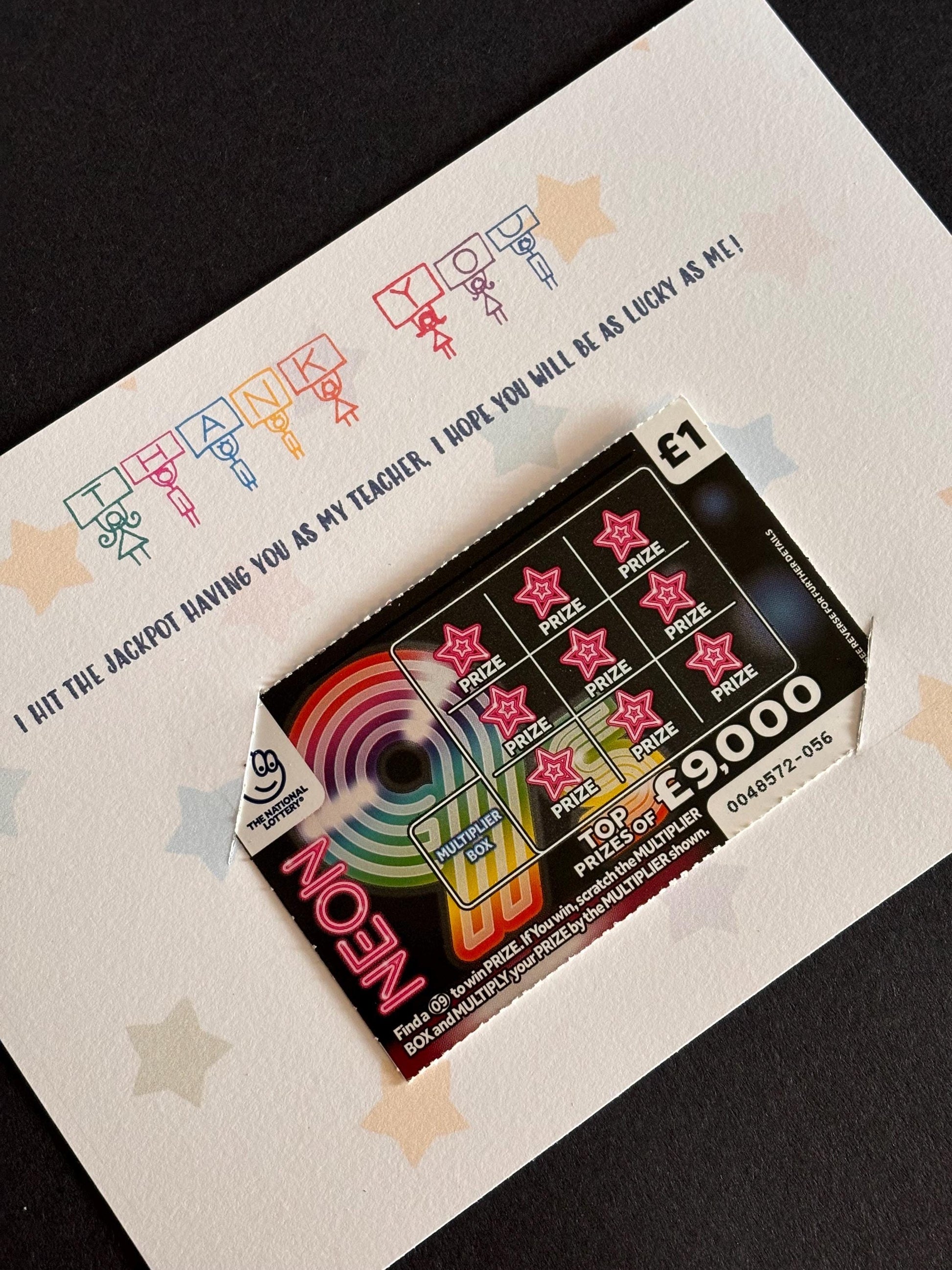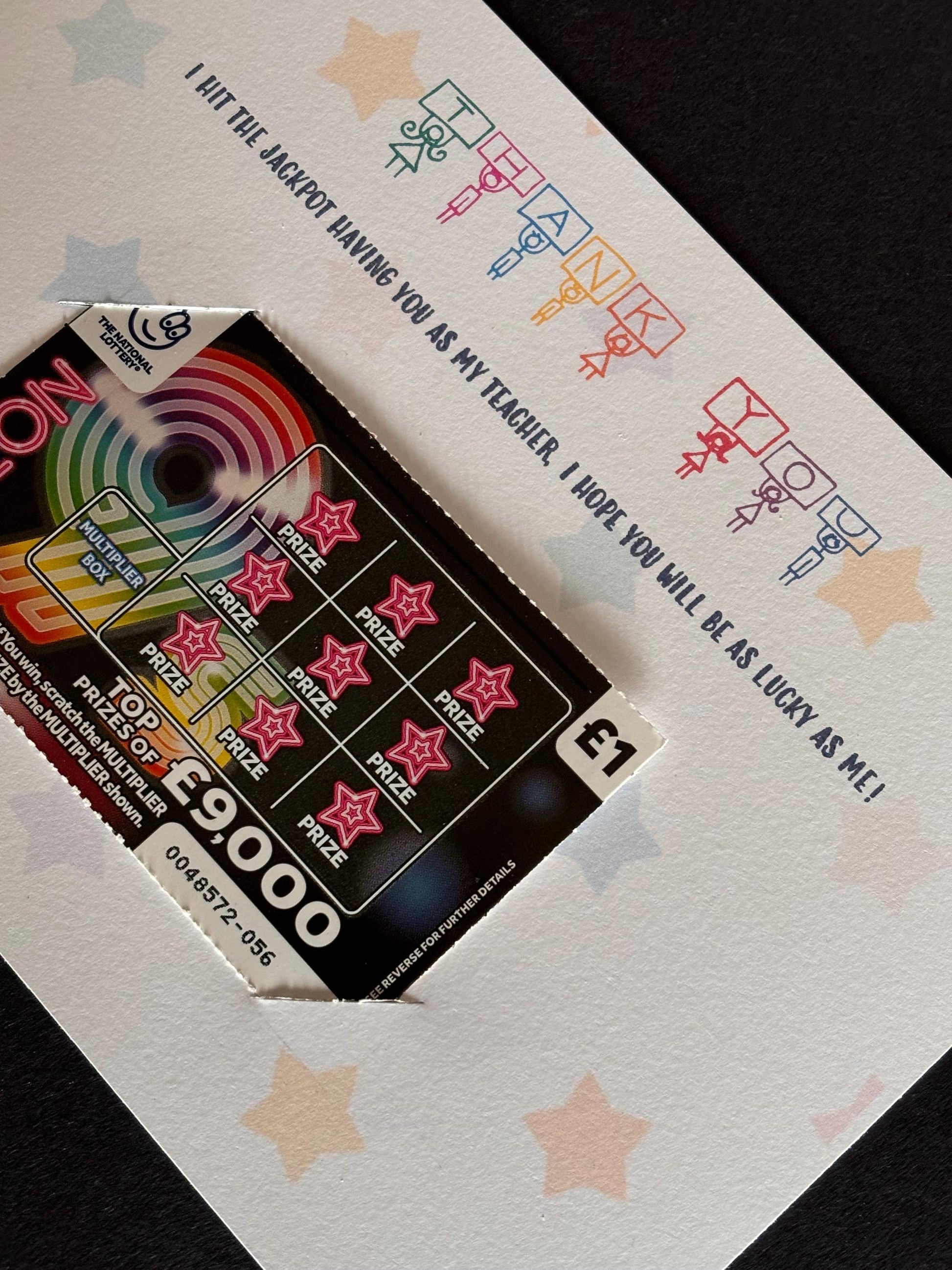 Each card comes with a £1 scratchcard attached, adding a playful touch that could bring even more luck their way. It's a perfect way to express gratitude, whether for an end-of-term thank you or any other occasion.