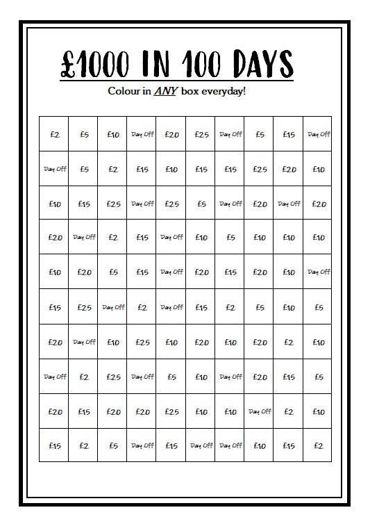 We have created a realistic saving chart for you to save £1000 in 100 days!